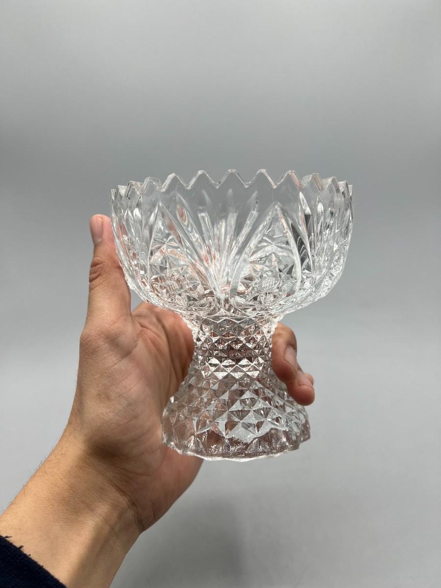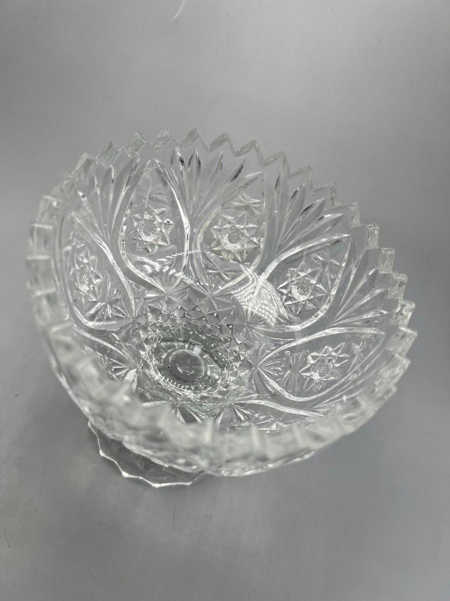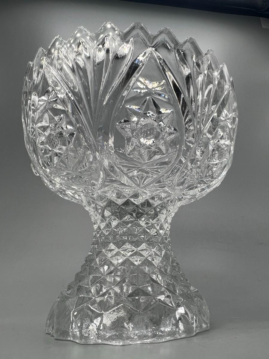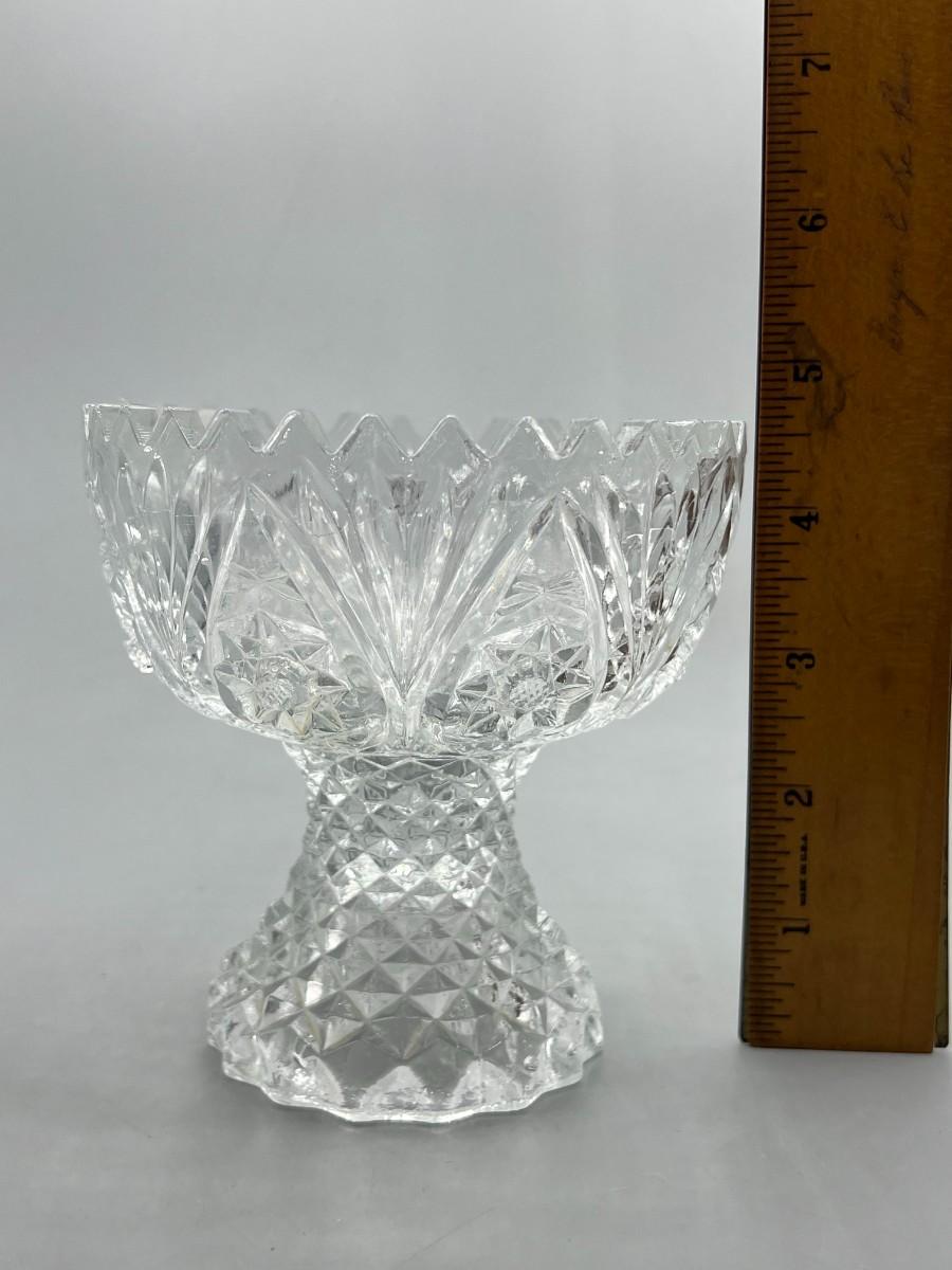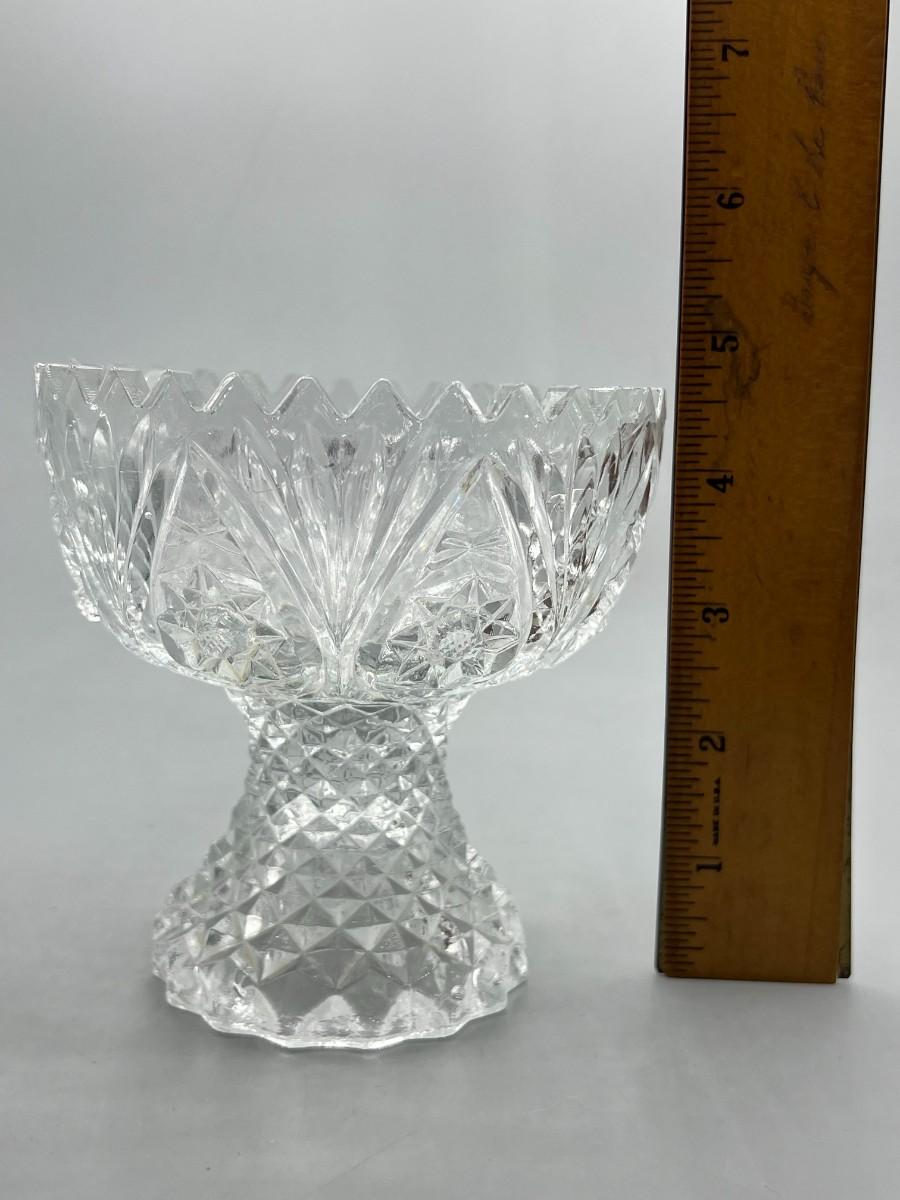 Vintage Mid-Century Crystal Glass Ruffled Edge Displayable Goblet Compote Sawtooth Rim