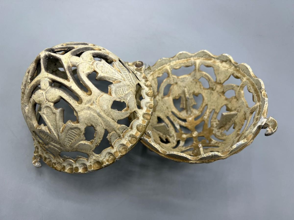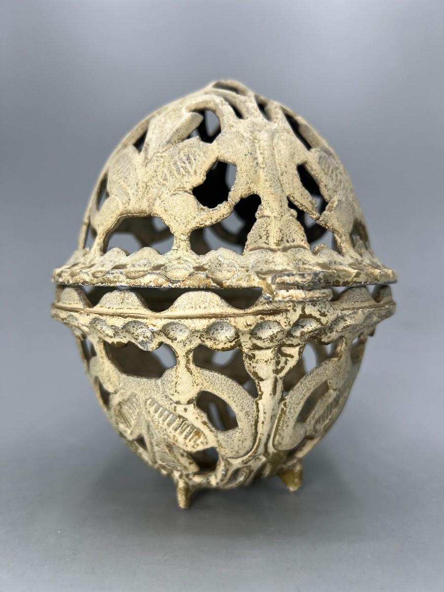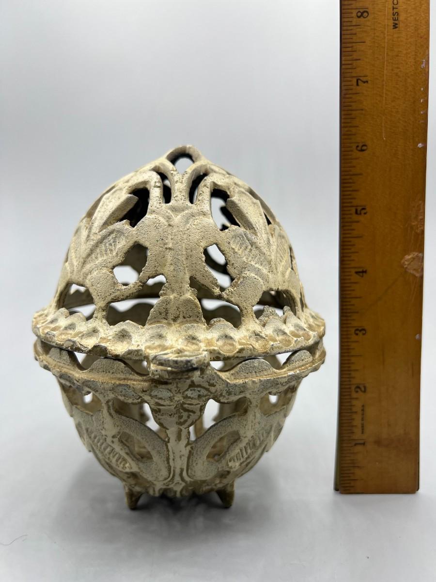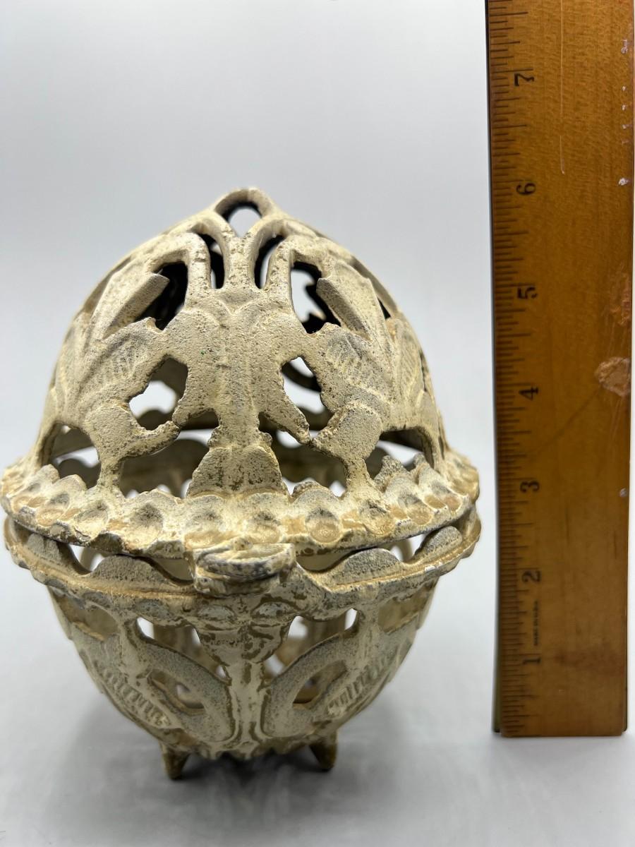 VIntage Art Nouveau Cast Iron Metal Rustic Ornate String Candle Holder Egg