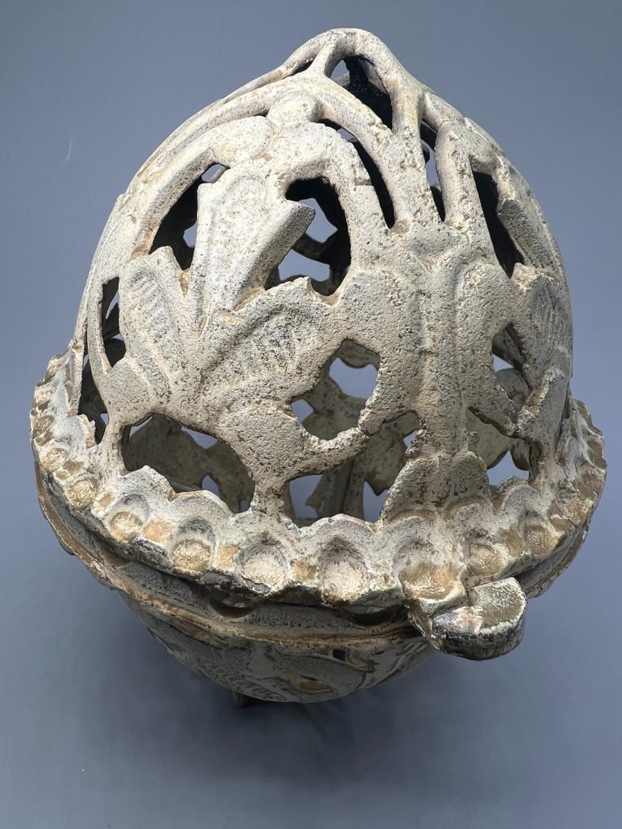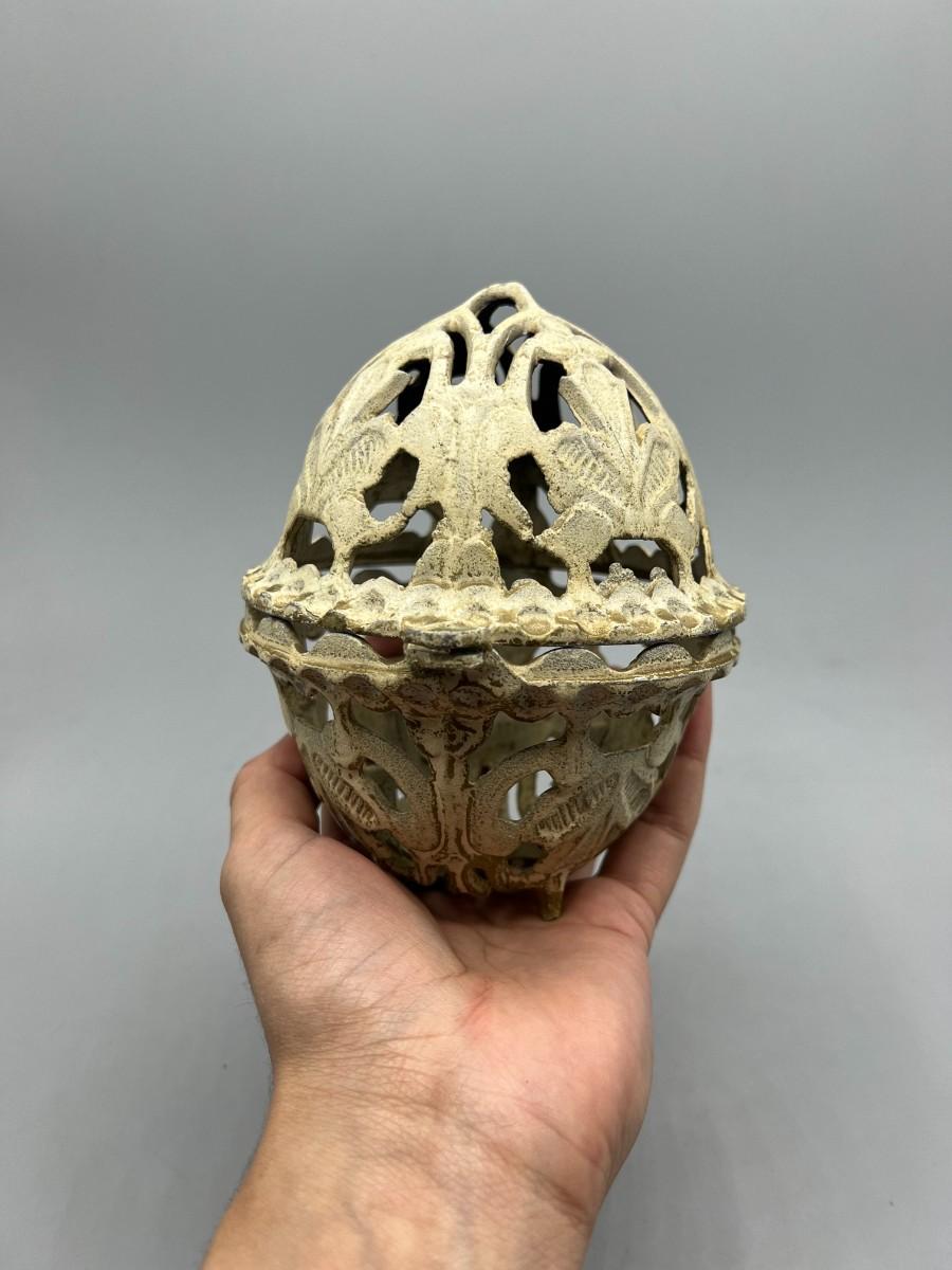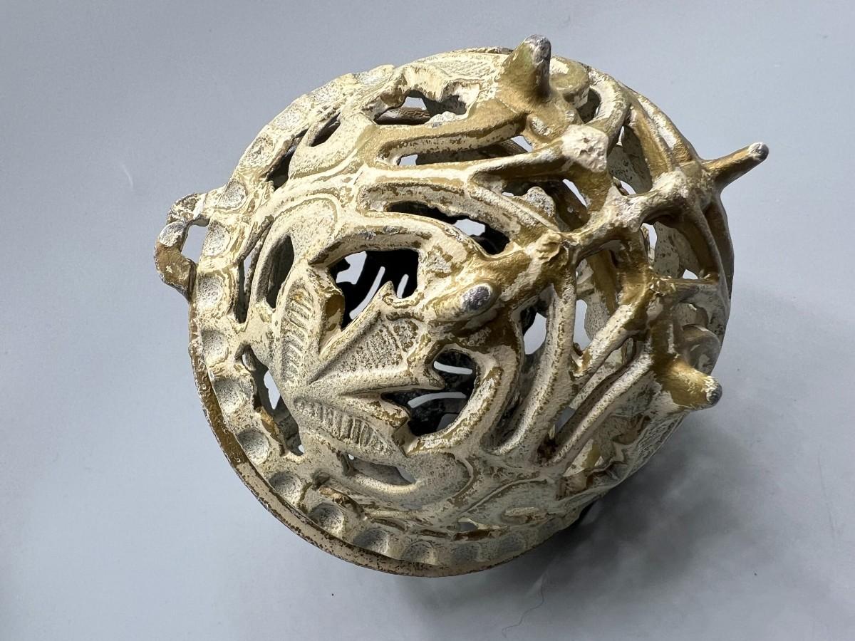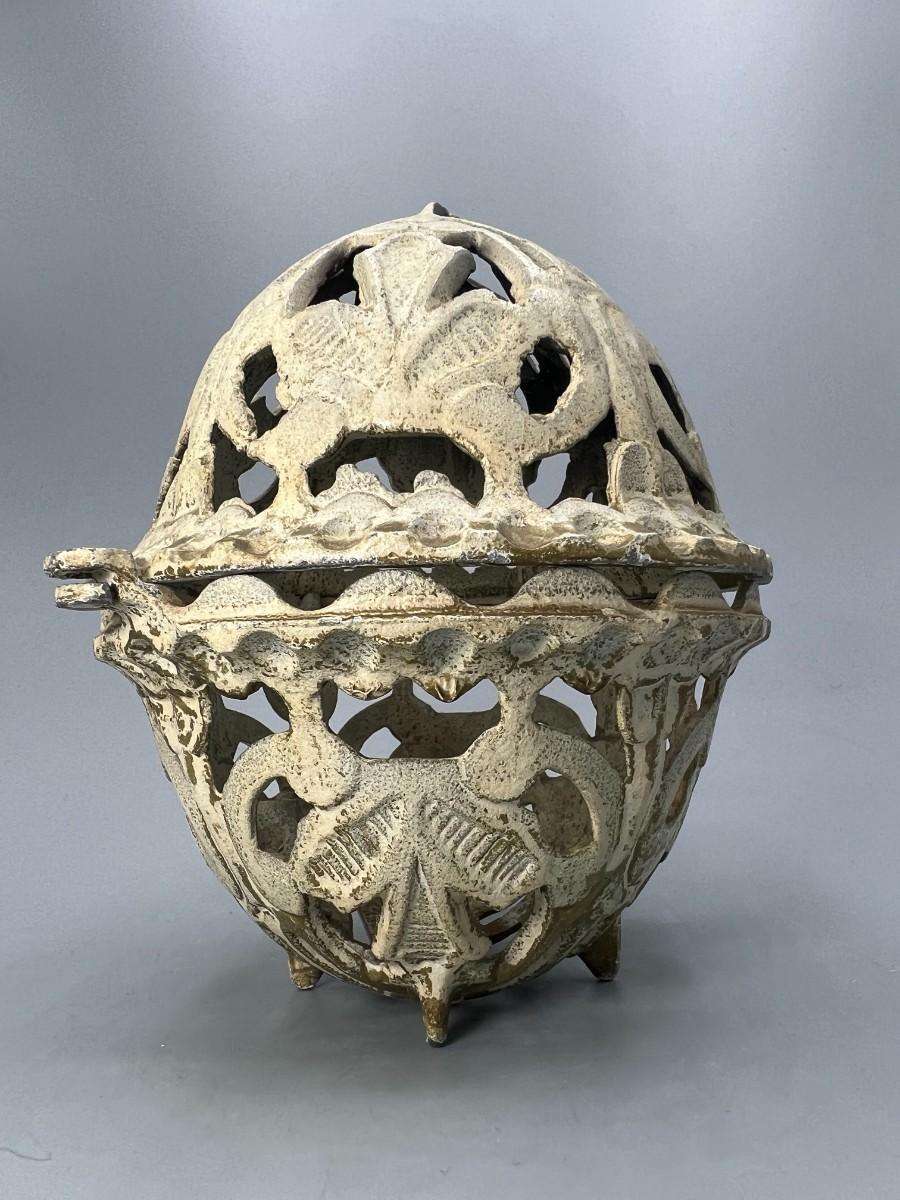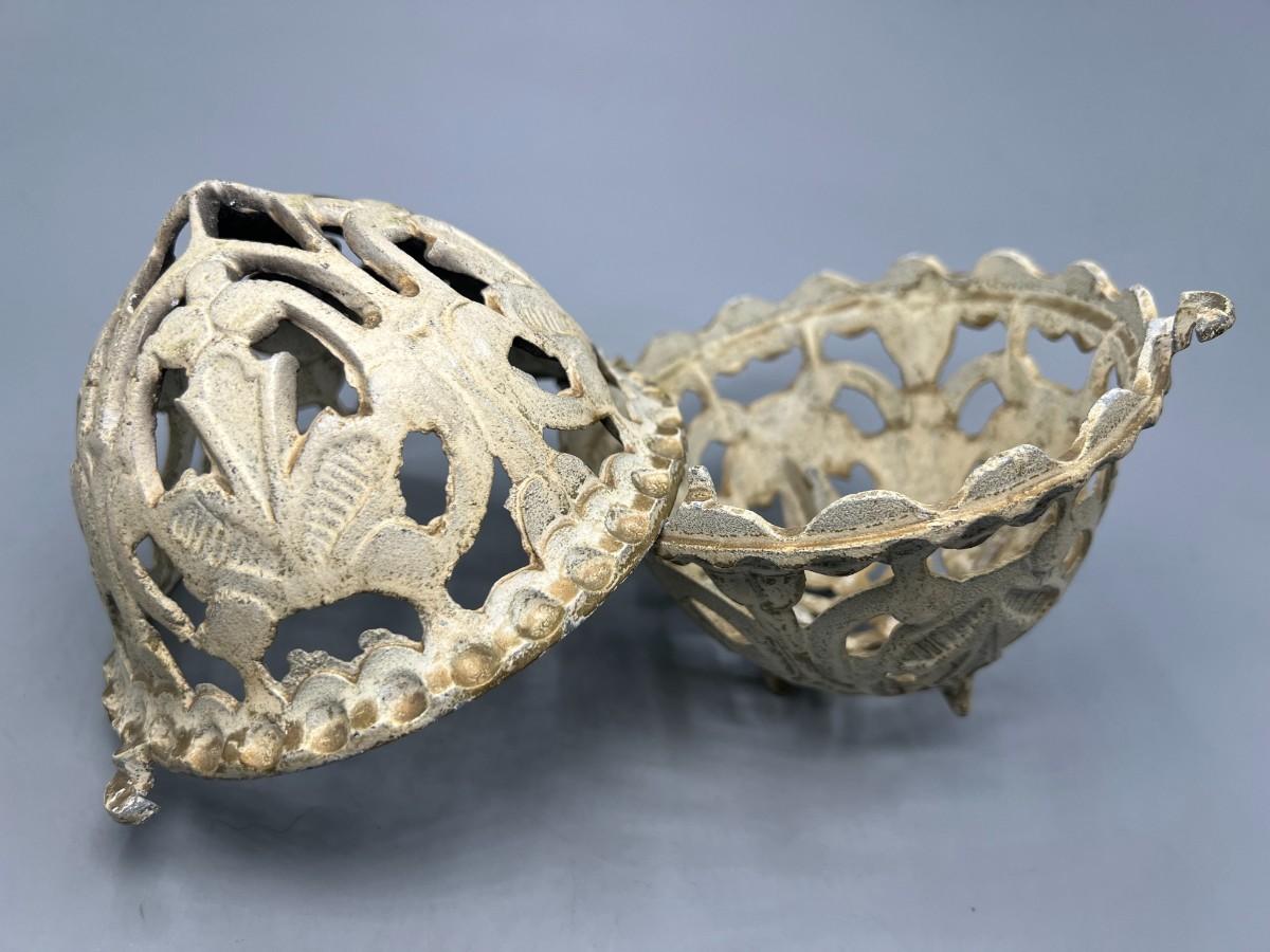 VIntage Art Nouveau Cast Iron Metal Rustic Ornate String Candle Holder Egg