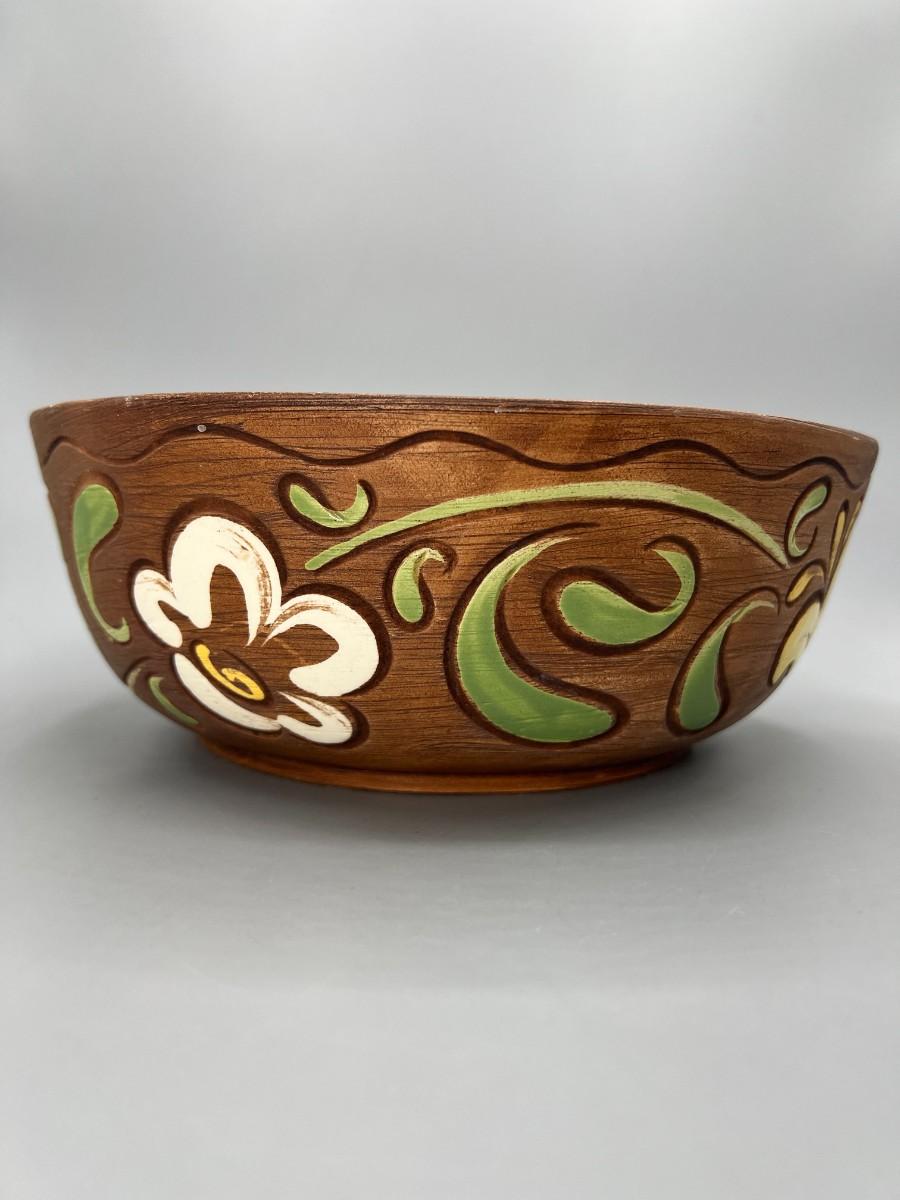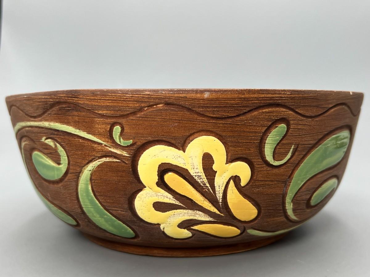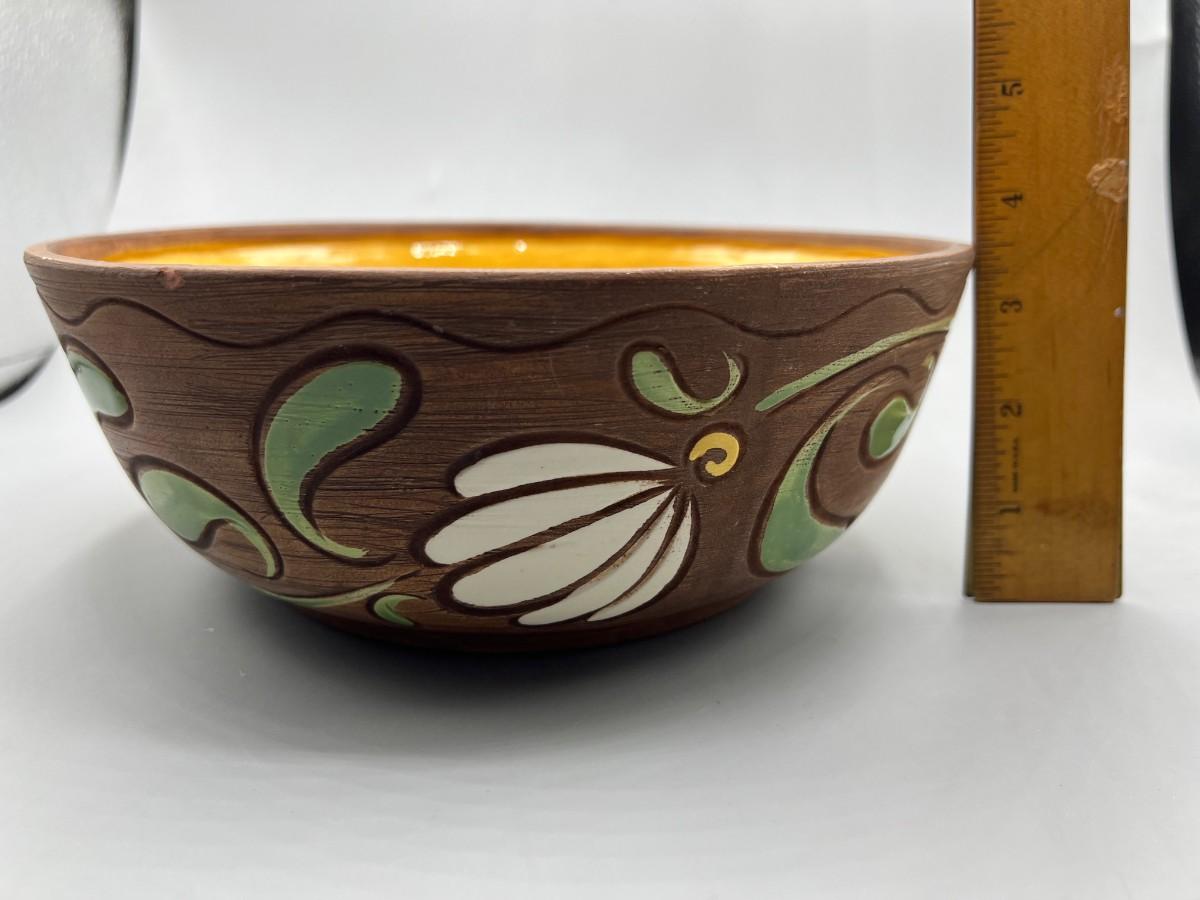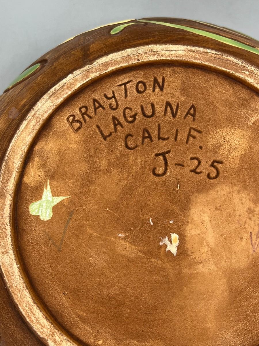 Vintage Brayton Laguna California Mid Century Handmade Pottery Art Flower Design Bowl