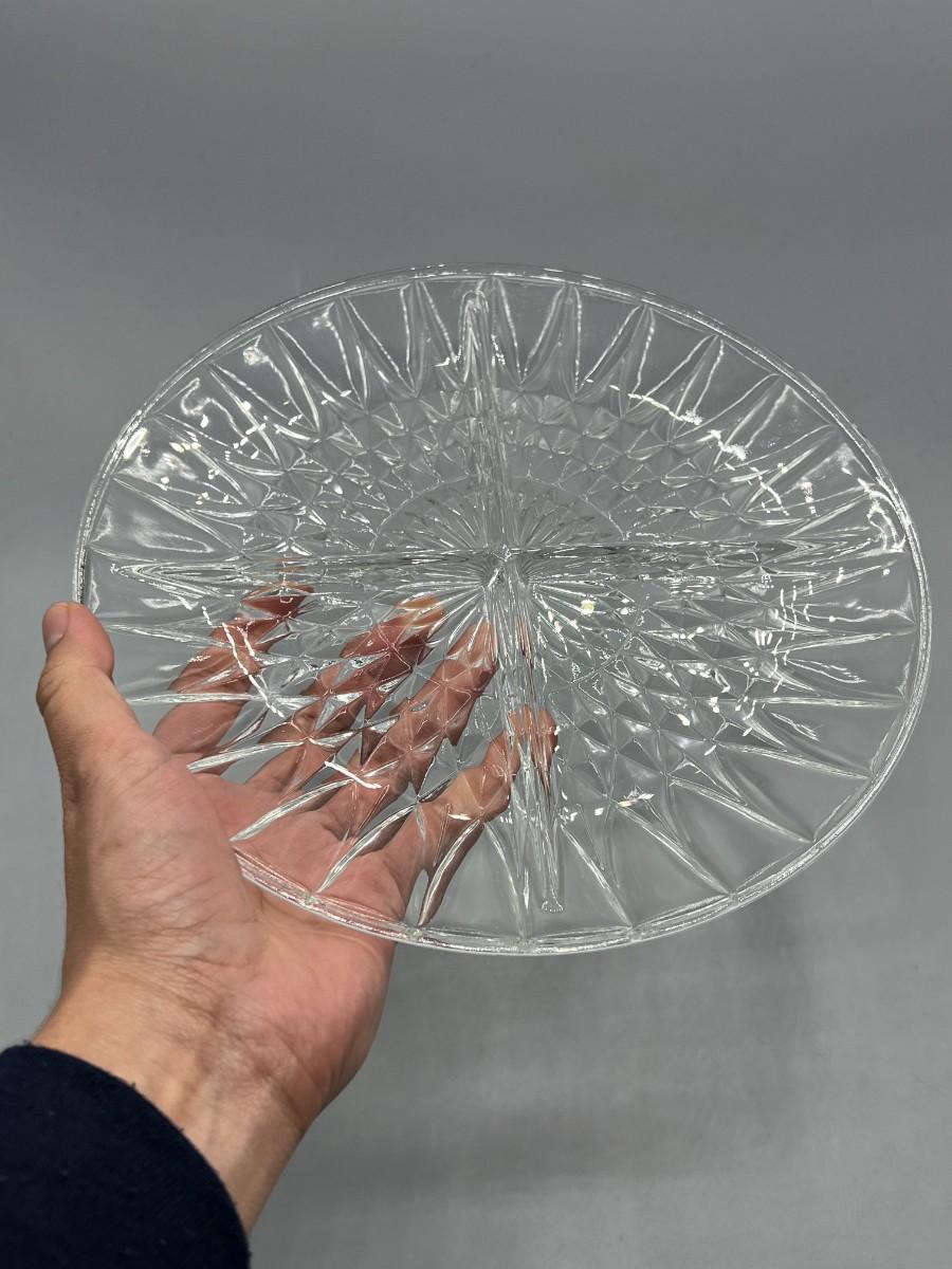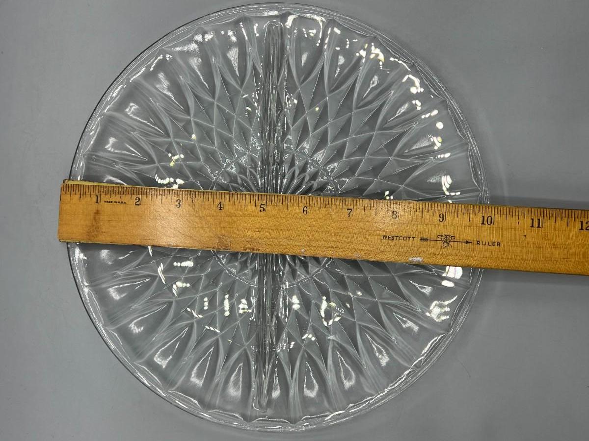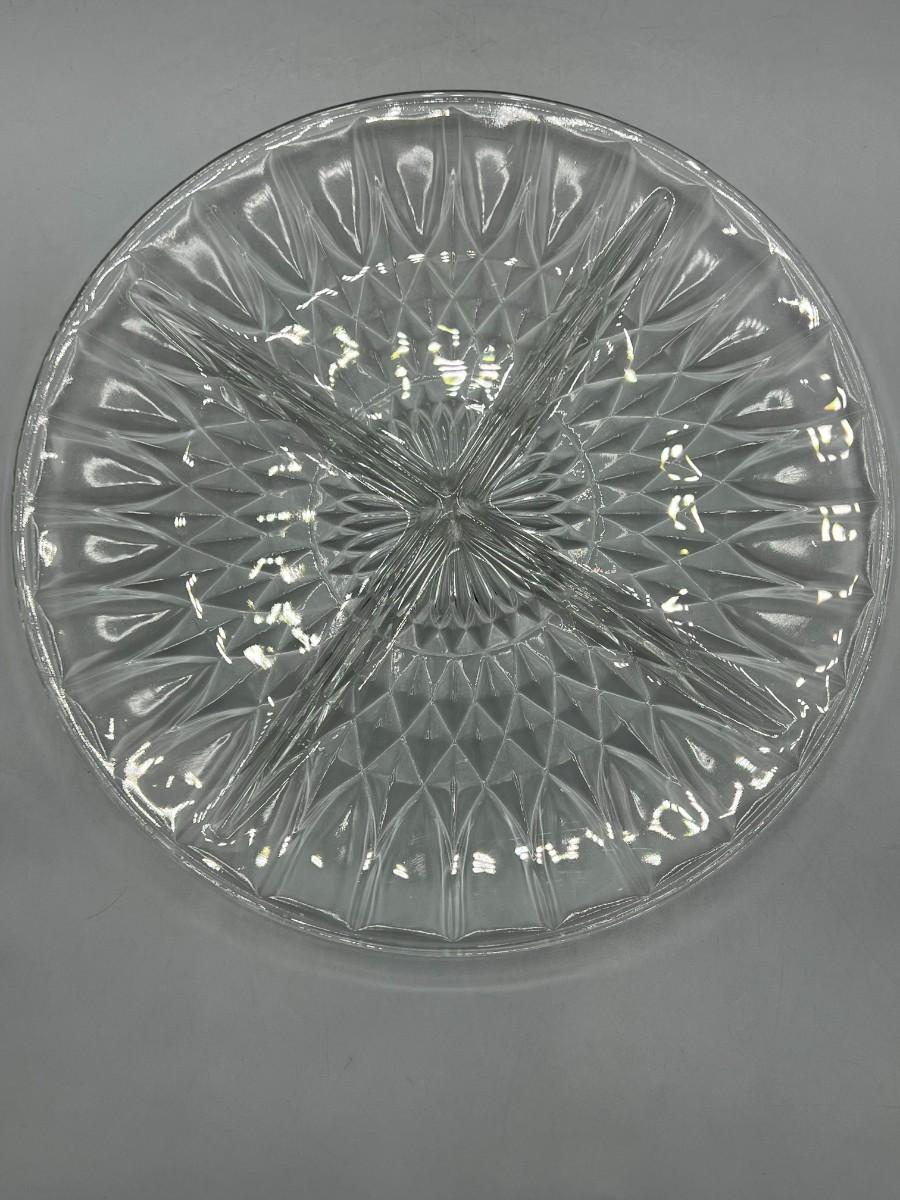 Vintage Crystal Glass Fancy Dinnerware Divider Serving Dish