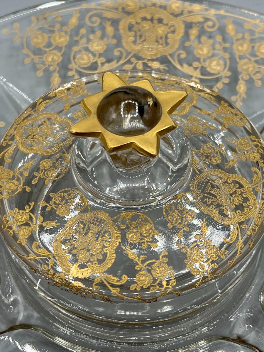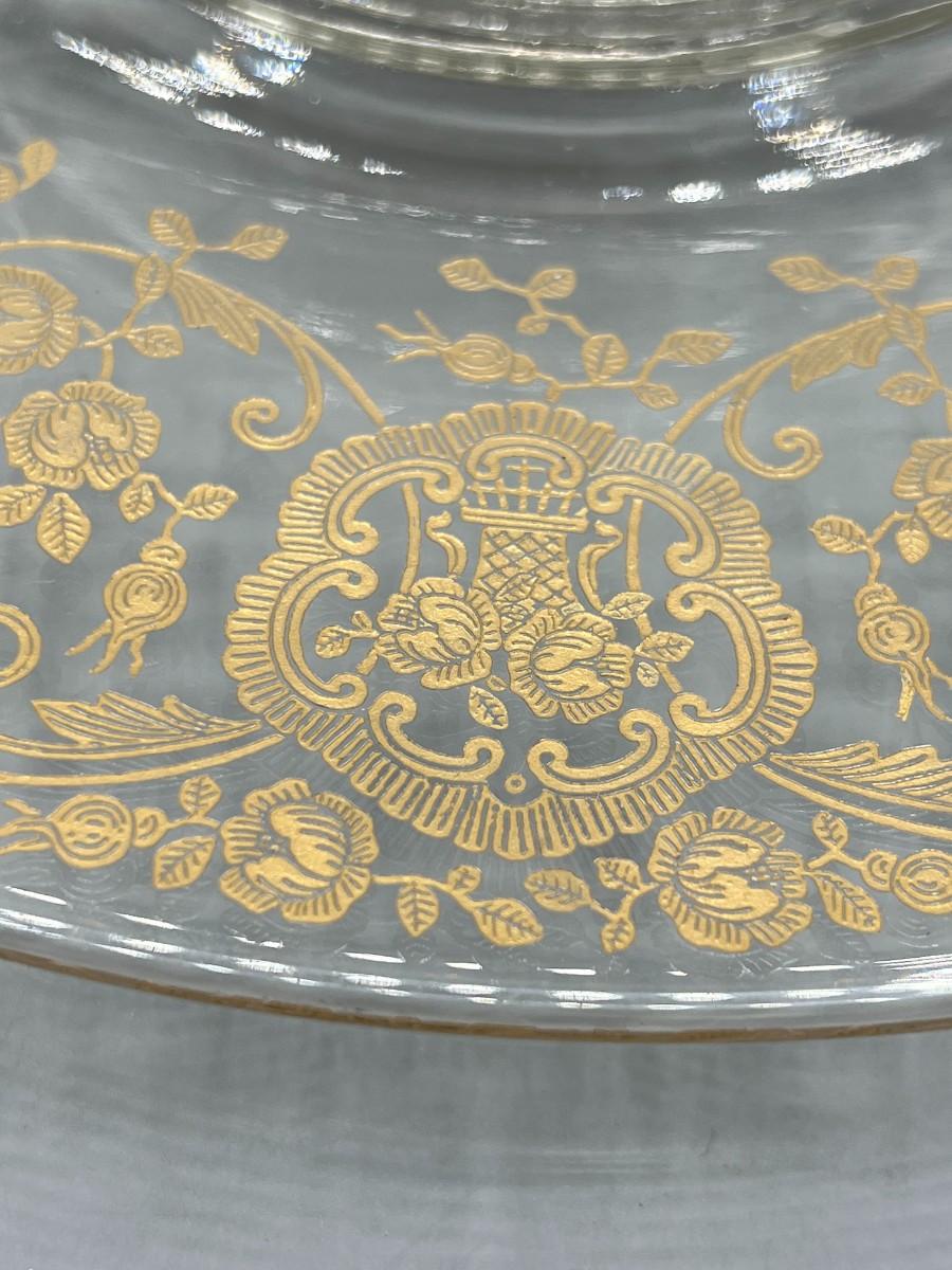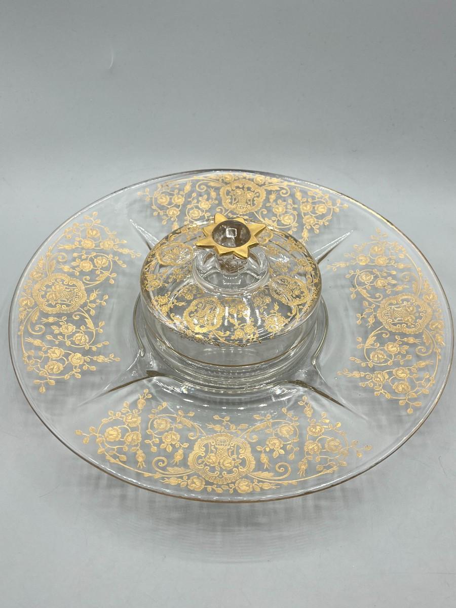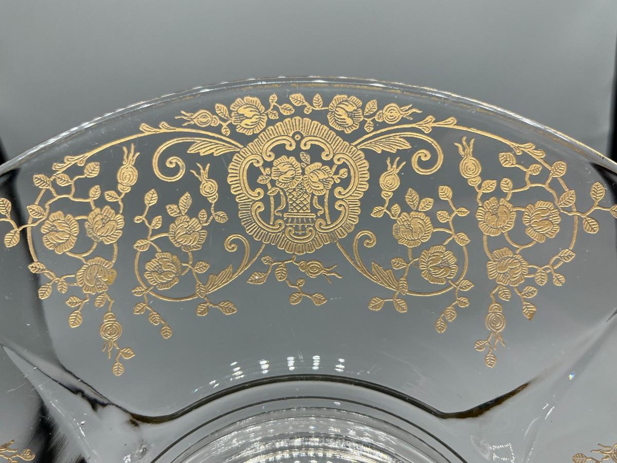 Vintage Clear Glass Gold Bridal Bouquet Pattern Art Nouveau Hollywood Regency Serving Presentation Dish