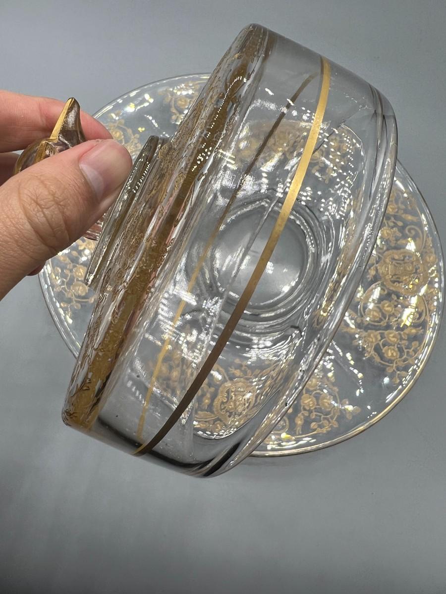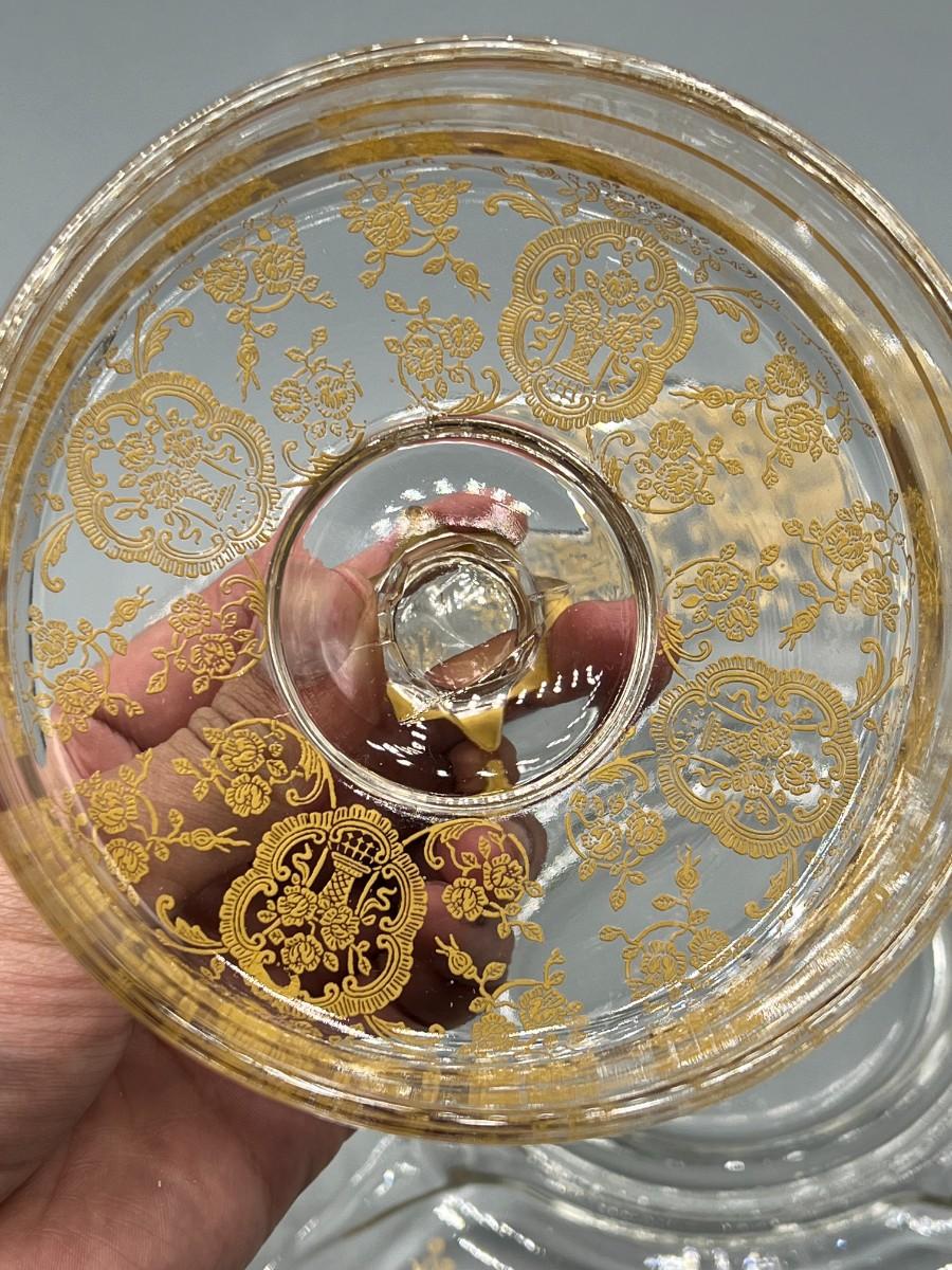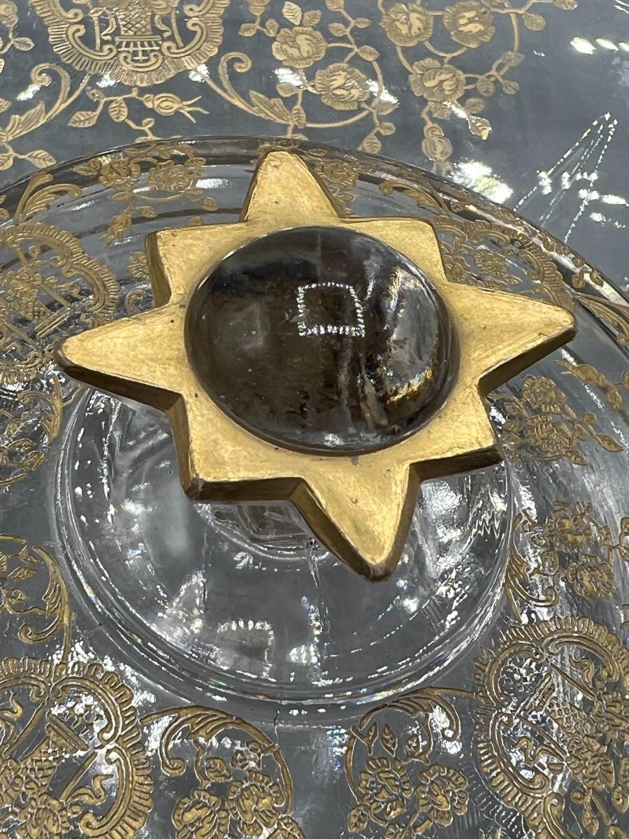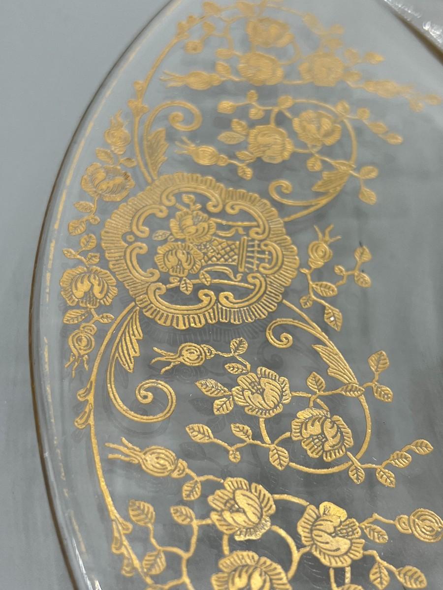 Vintage Clear Glass Gold Bridal Bouquet Pattern Art Nouveau Hollywood Regency Serving Presentation Dish