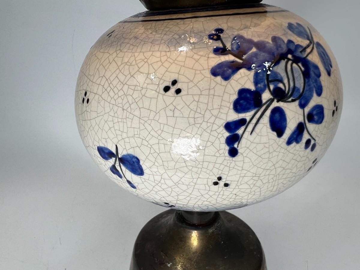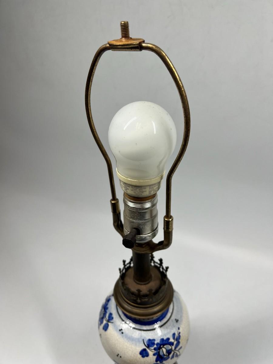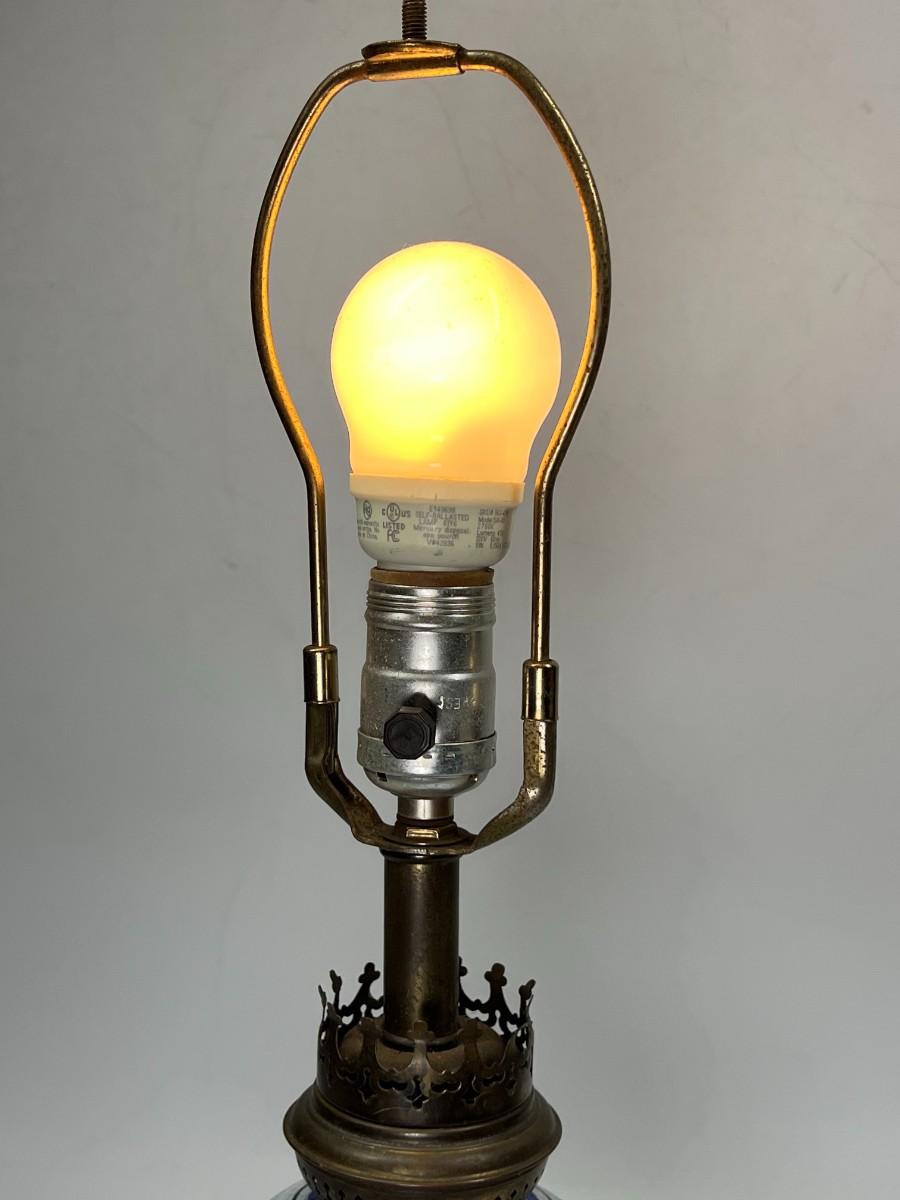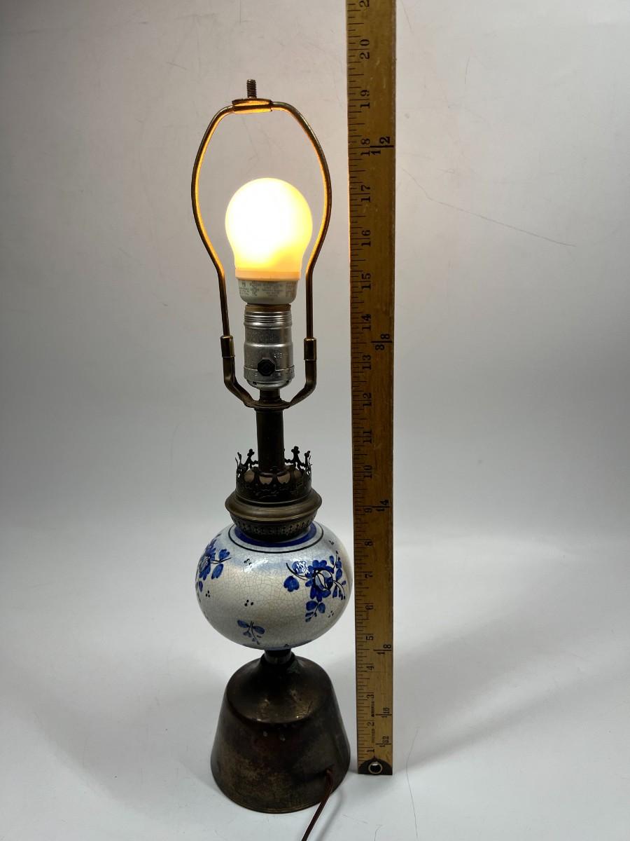 Vintage Blue & White Ceramic Delft & Brass Base Tableside Lamp