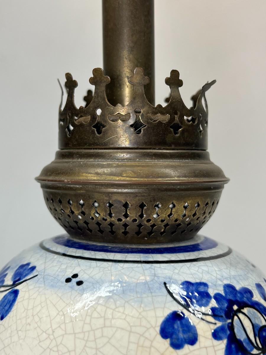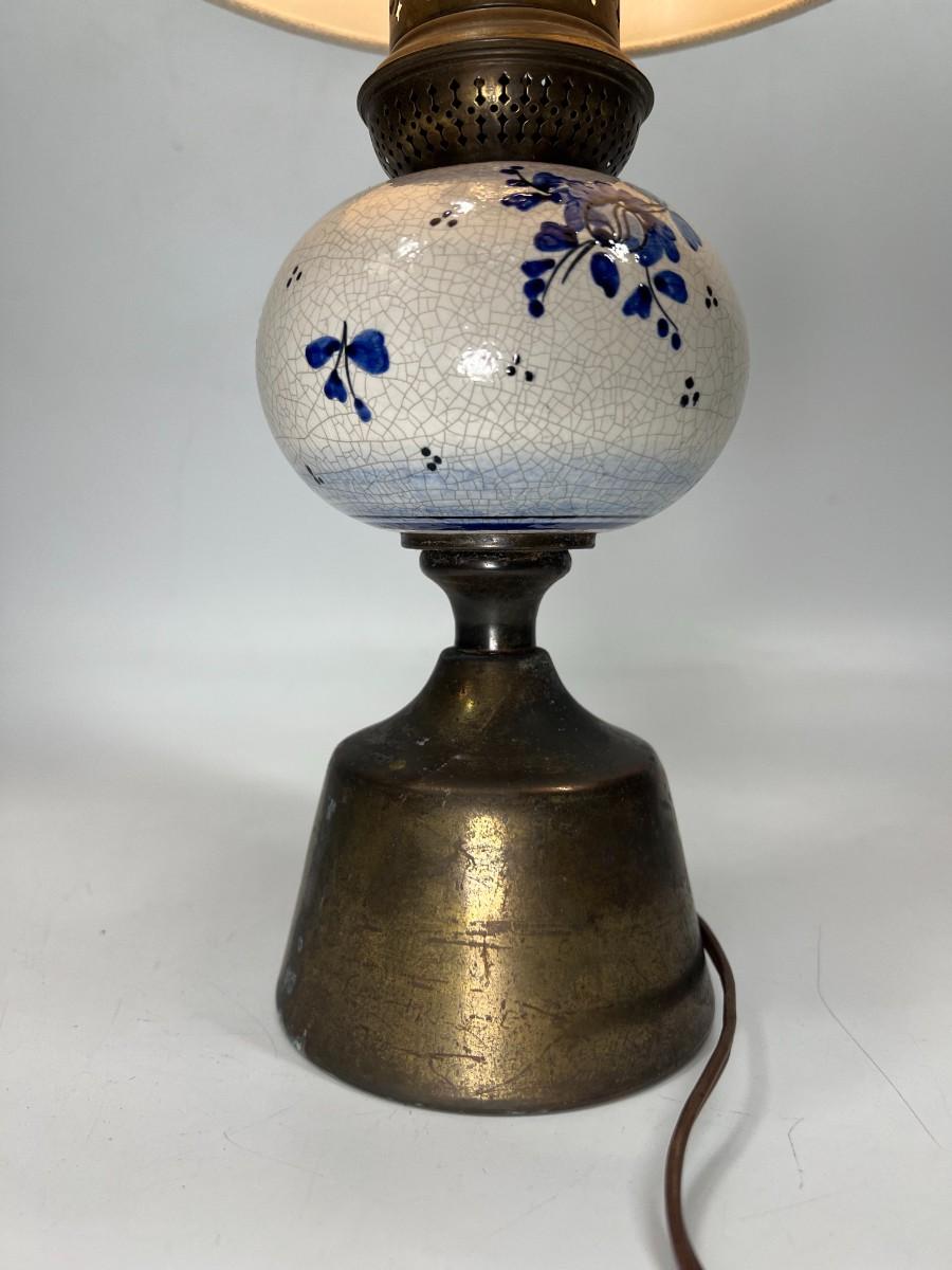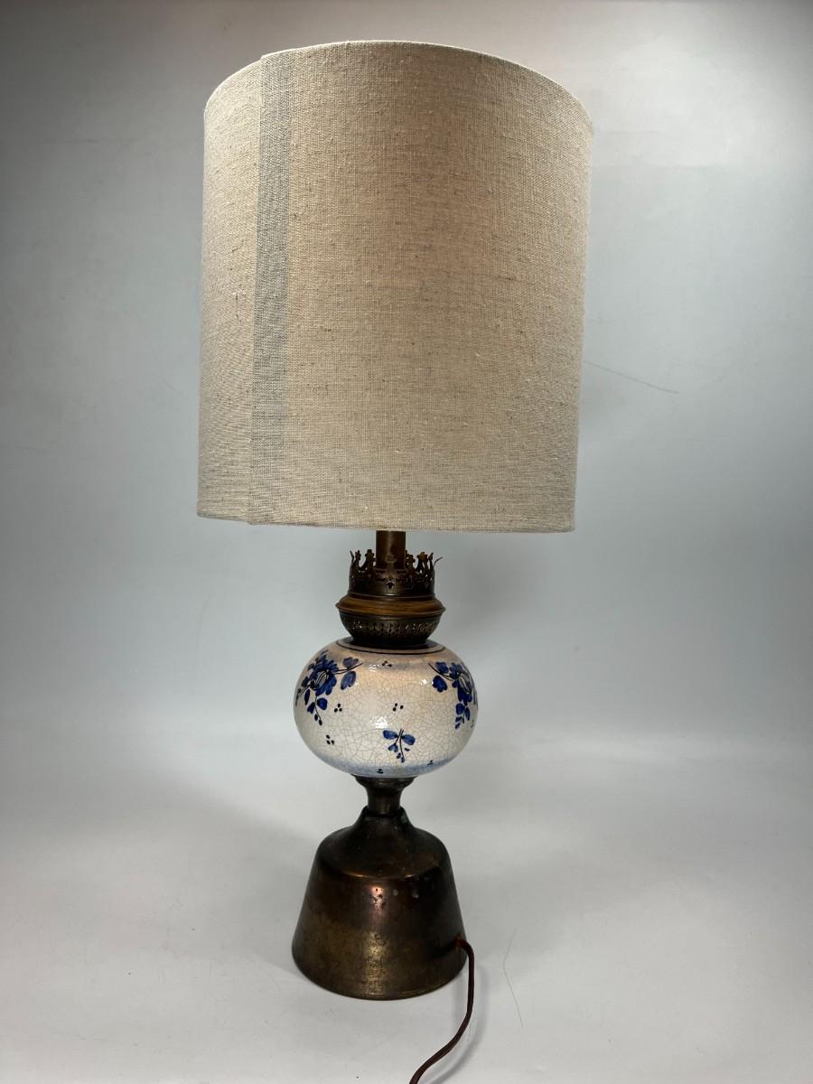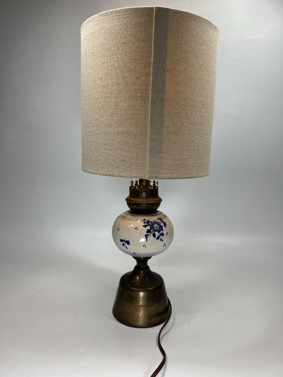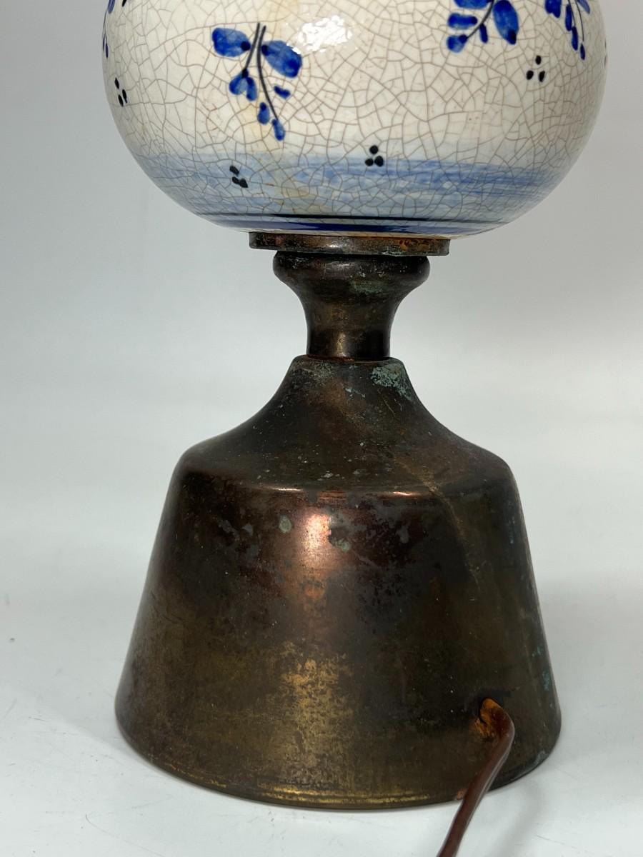 Vintage Blue & White Ceramic Delft & Brass Base Tableside Lamp