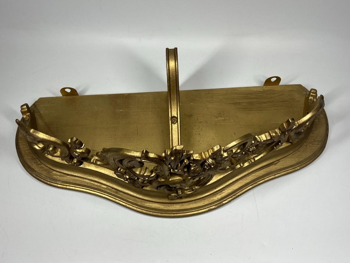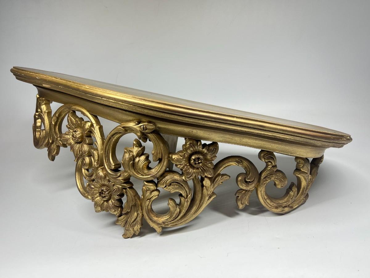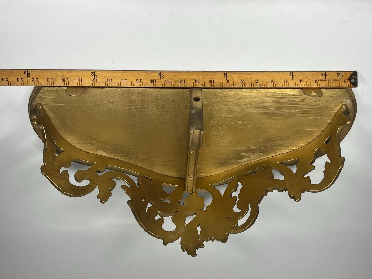 Vintage Hollywood Regency Gold Filigree Floral Floating Wall Shelf. In good vintage condition. Almost 24" size.