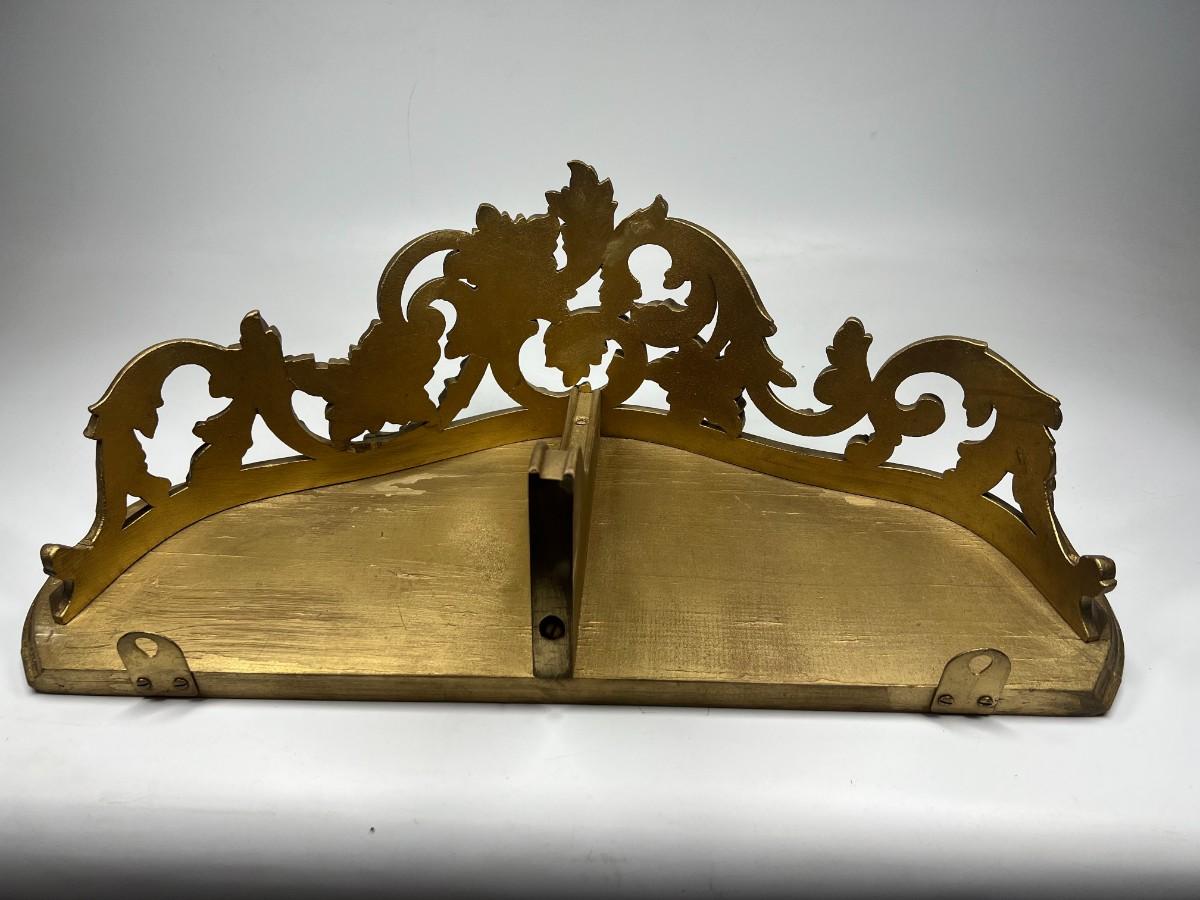 Vintage Hollywood Regency Gold Filigree Floral Floating Wall Shelf