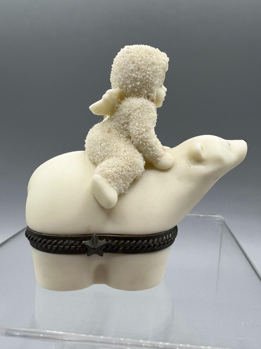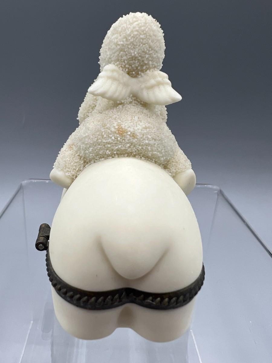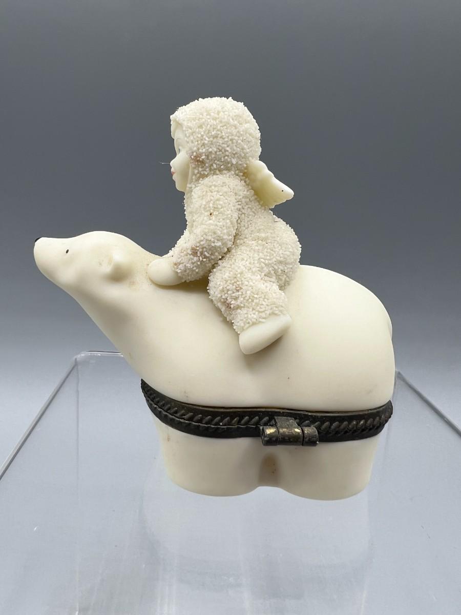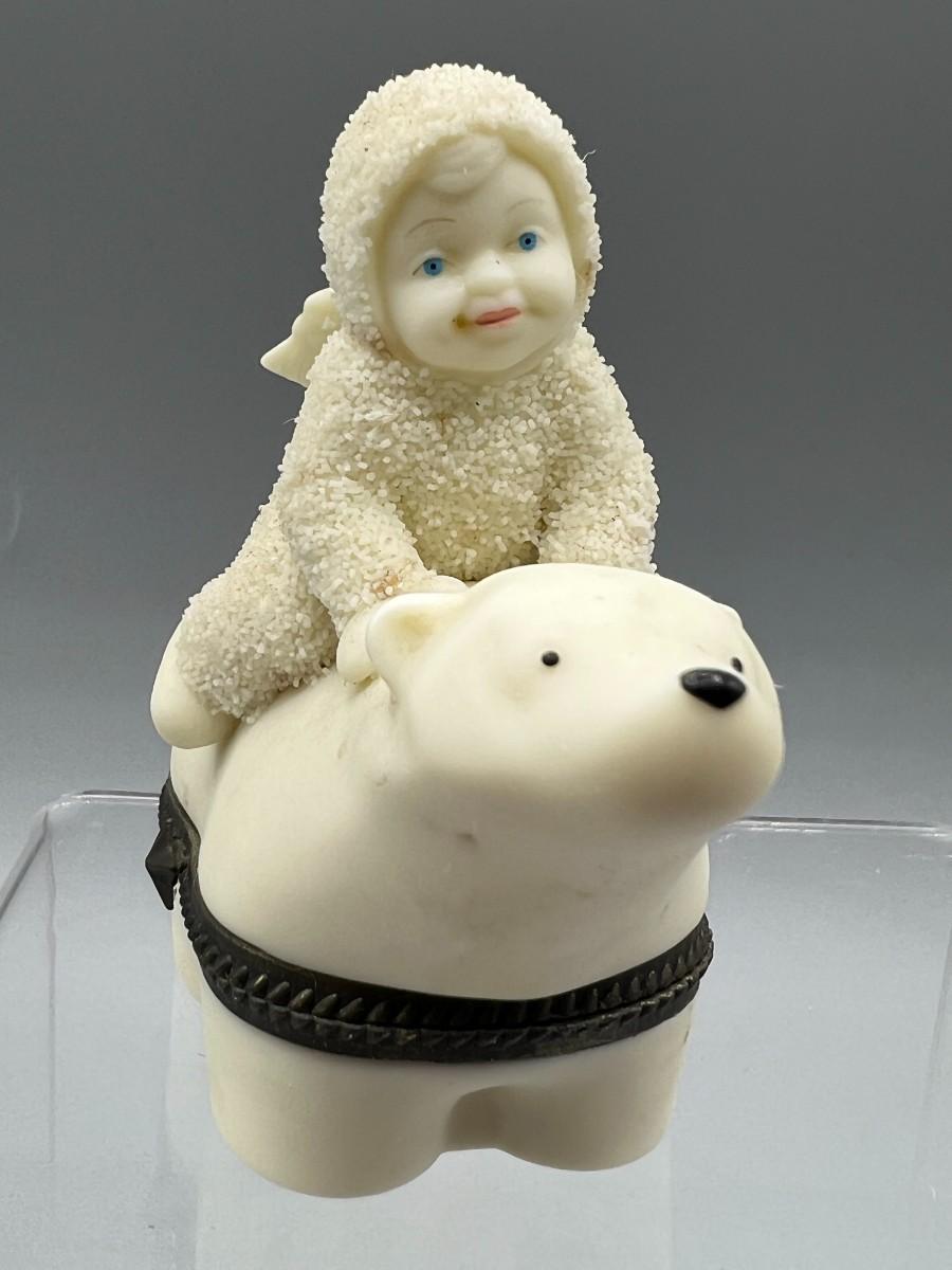 Dept 56 Snow Babies Small Trinket Box Angel on Polar Bear. In good condition. About 3" size.