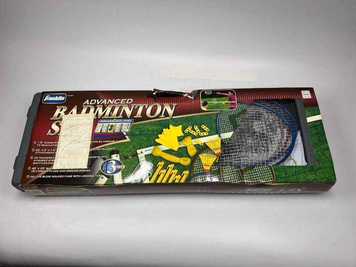 Franklin Badminton Set in Carry Case Like New. In good condition, some parts still in plastic. Comes in plastic case for easy storage and use.