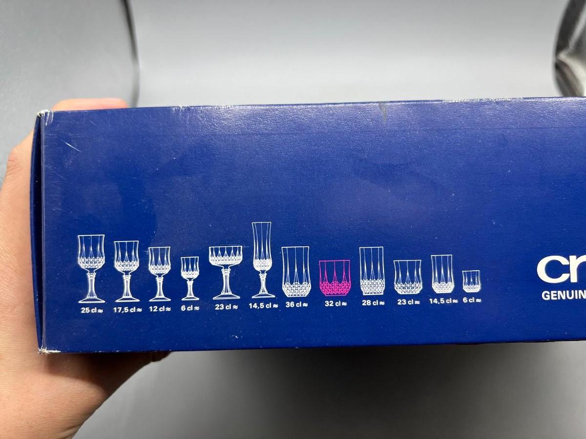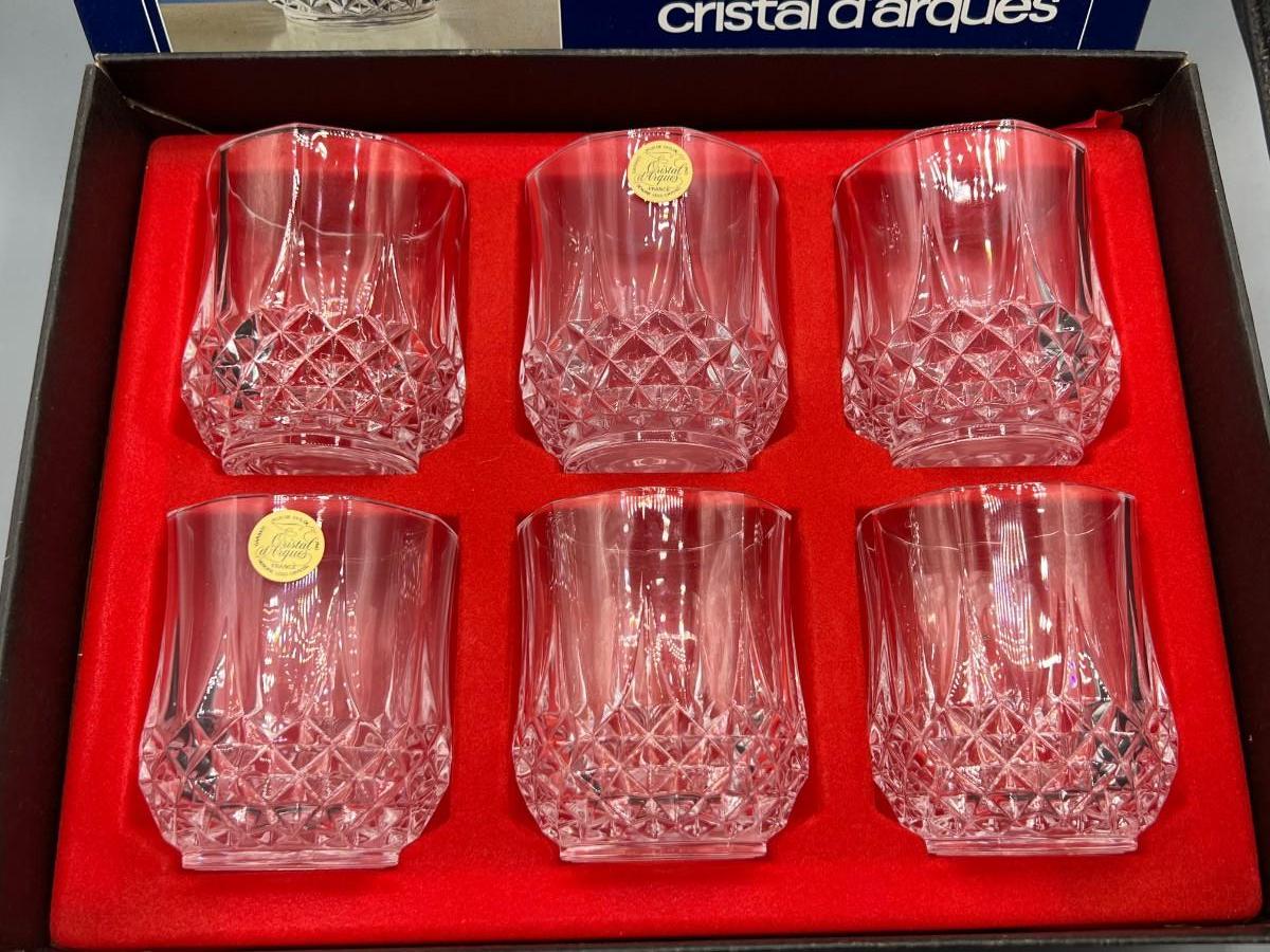 Set of 6 Cristal D’Arques Lead Crystal Rocks Drink Glasses New in Box. Glasses still have original stickers attached. Box has some light wear from storage.