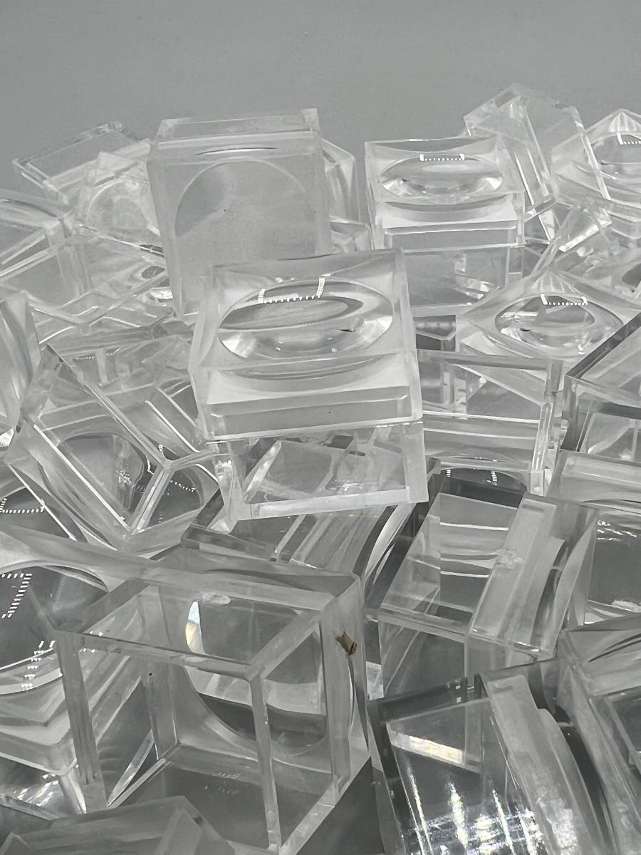 Small Plastic Magnified Lid Display Boxes for Gems Miniatures Crafts. Large lot, box they are in says 100 but actual count unknown. See photos.