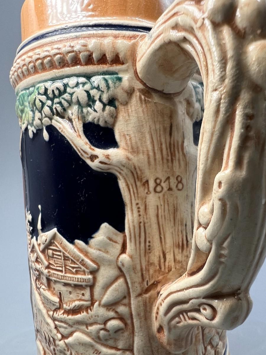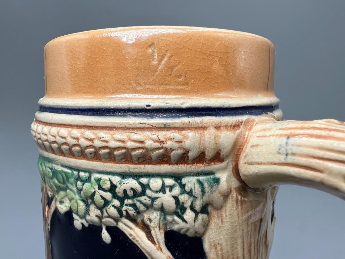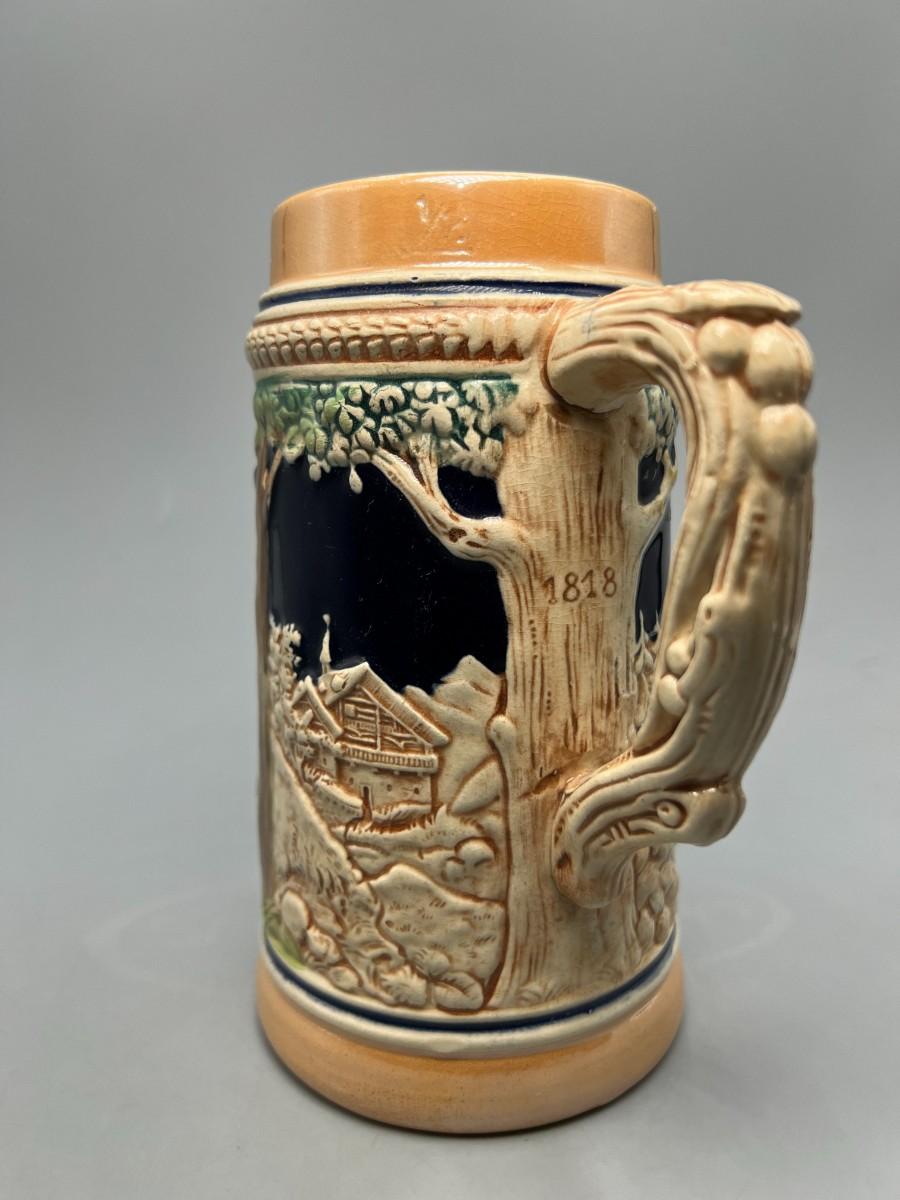 Vintage Made in Germany Beer Stein Colorful People Gathered Outside Under Tree Scene