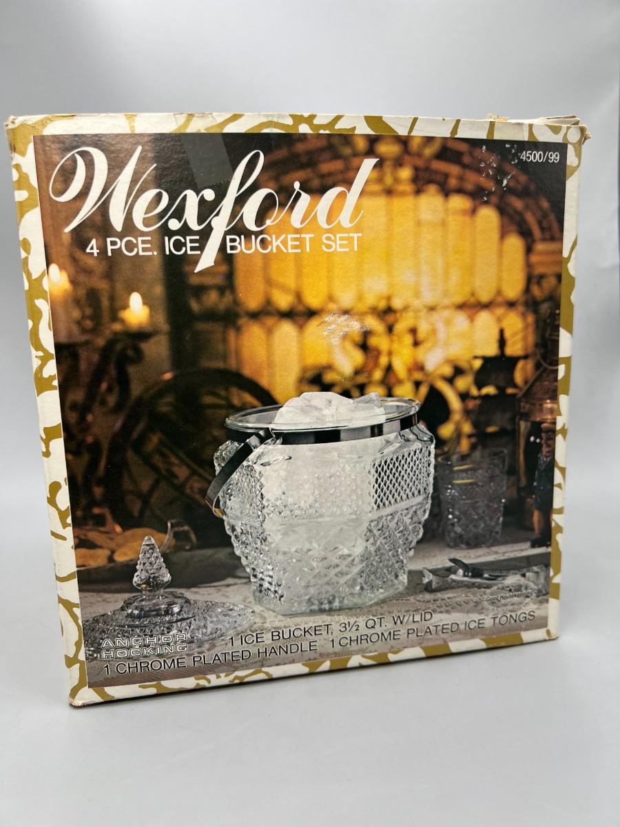 Vintage Wexford Lidded Ice Bucket with Tongs in Original Box. In good vintage condition.