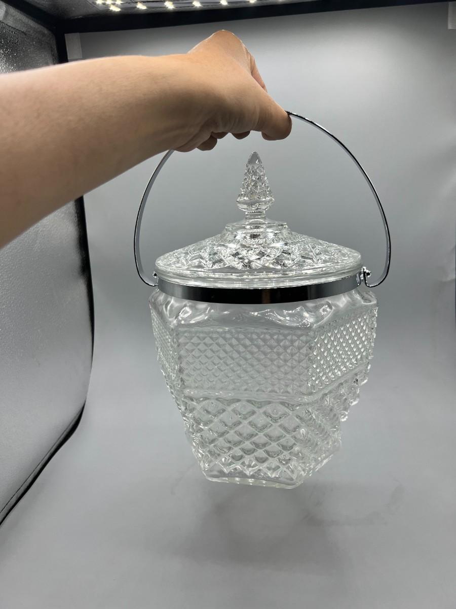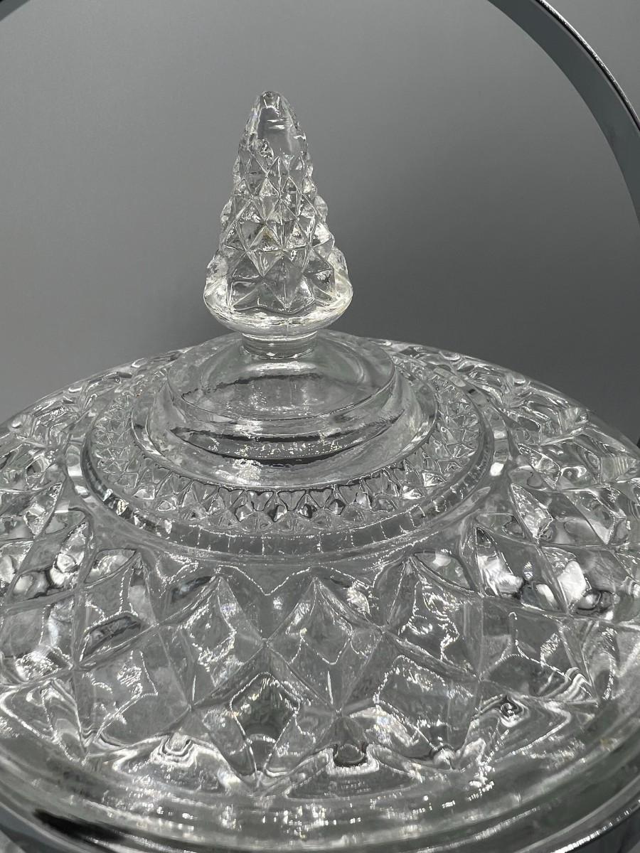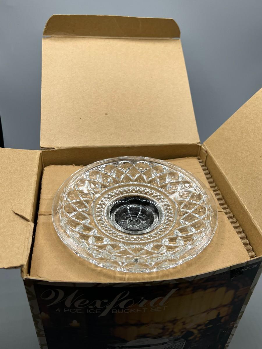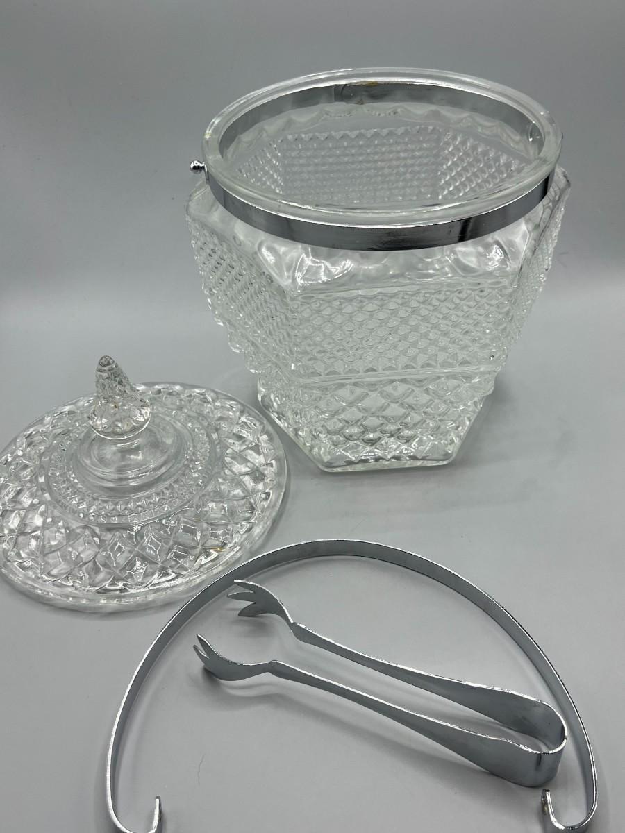 Vintage Wexford Pressed Glass Crystal Lidded Ice Bucket with Tongs in Original Box Anchor Hocking