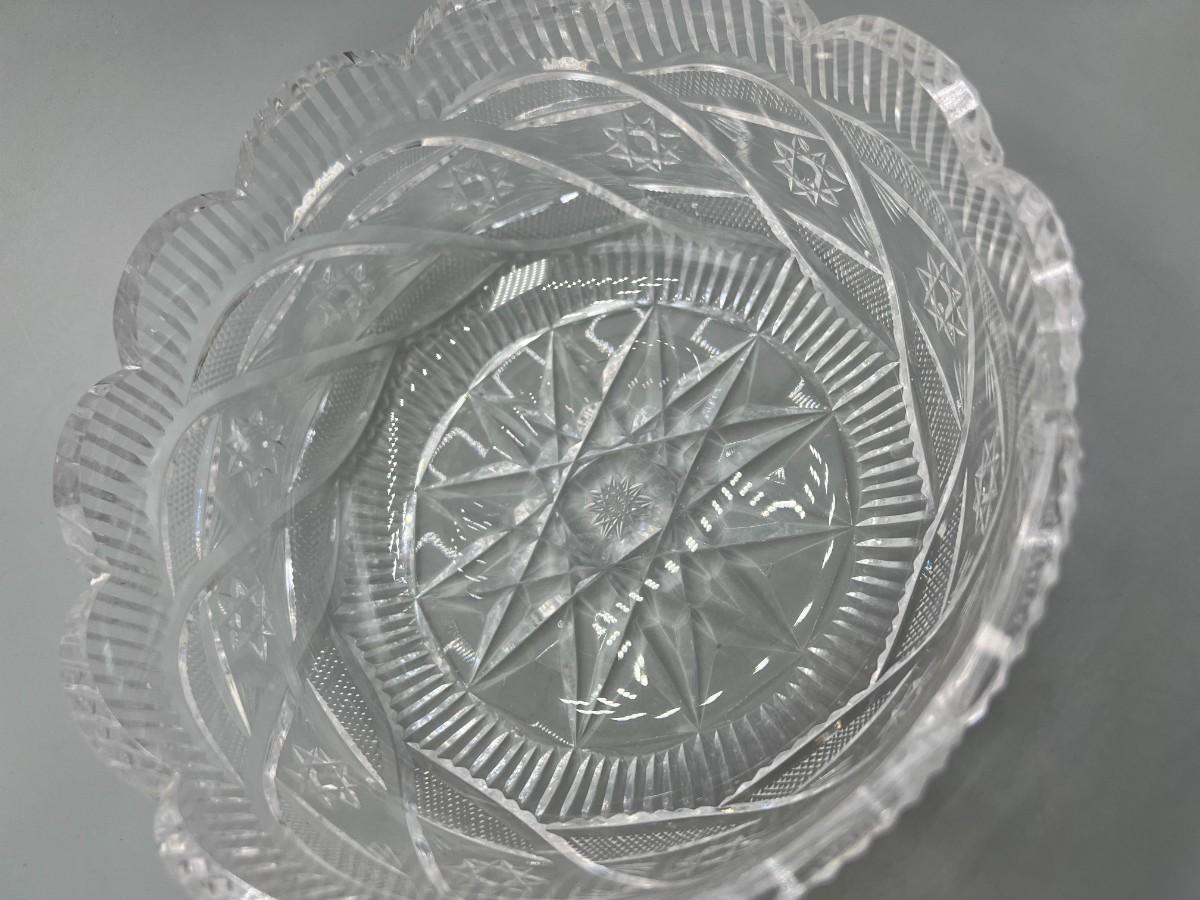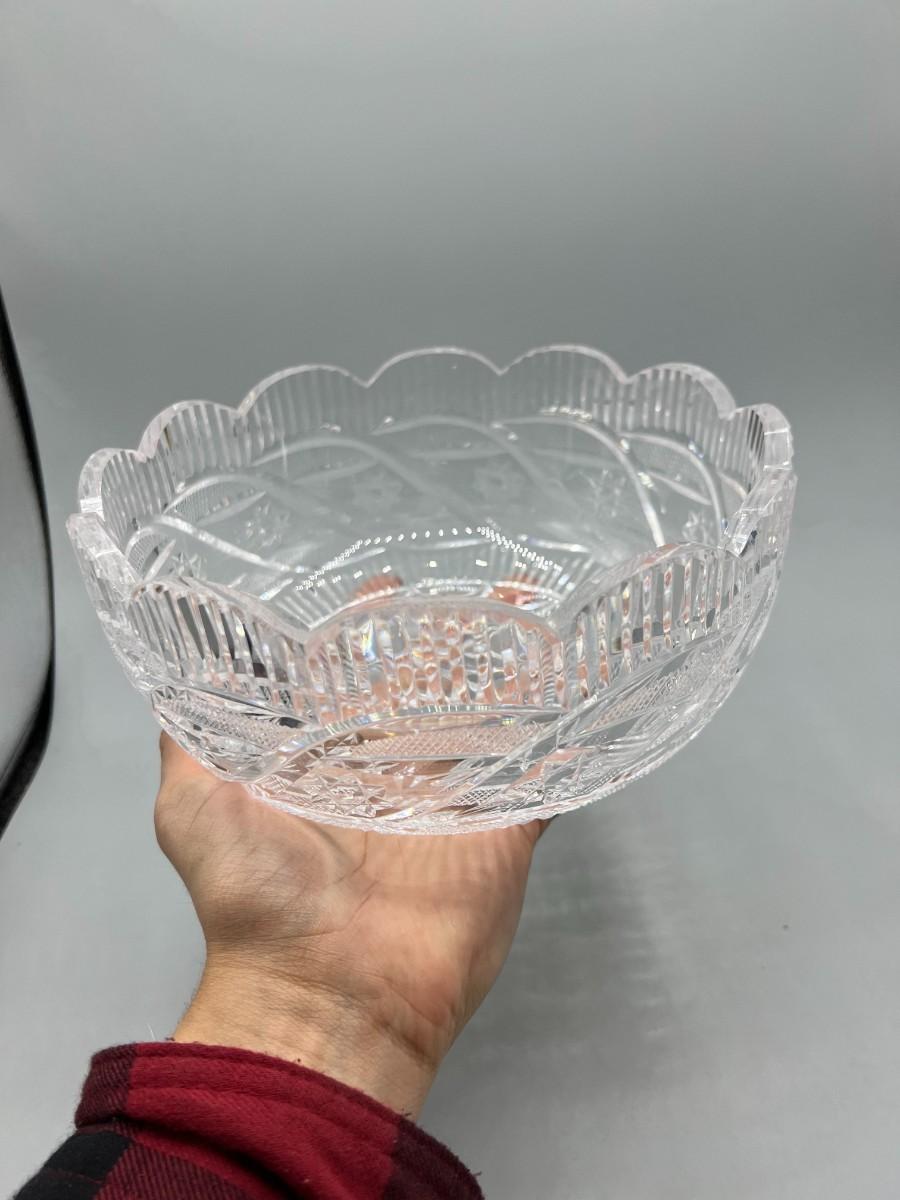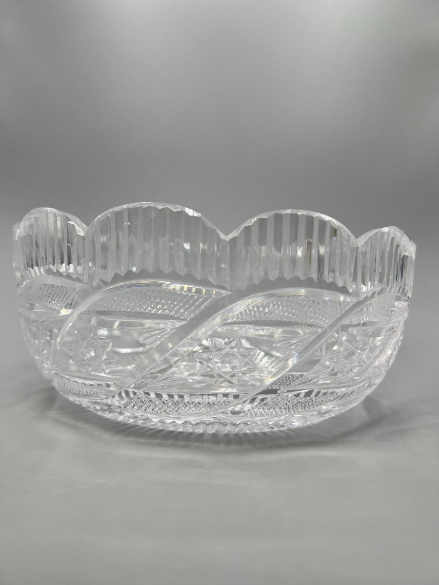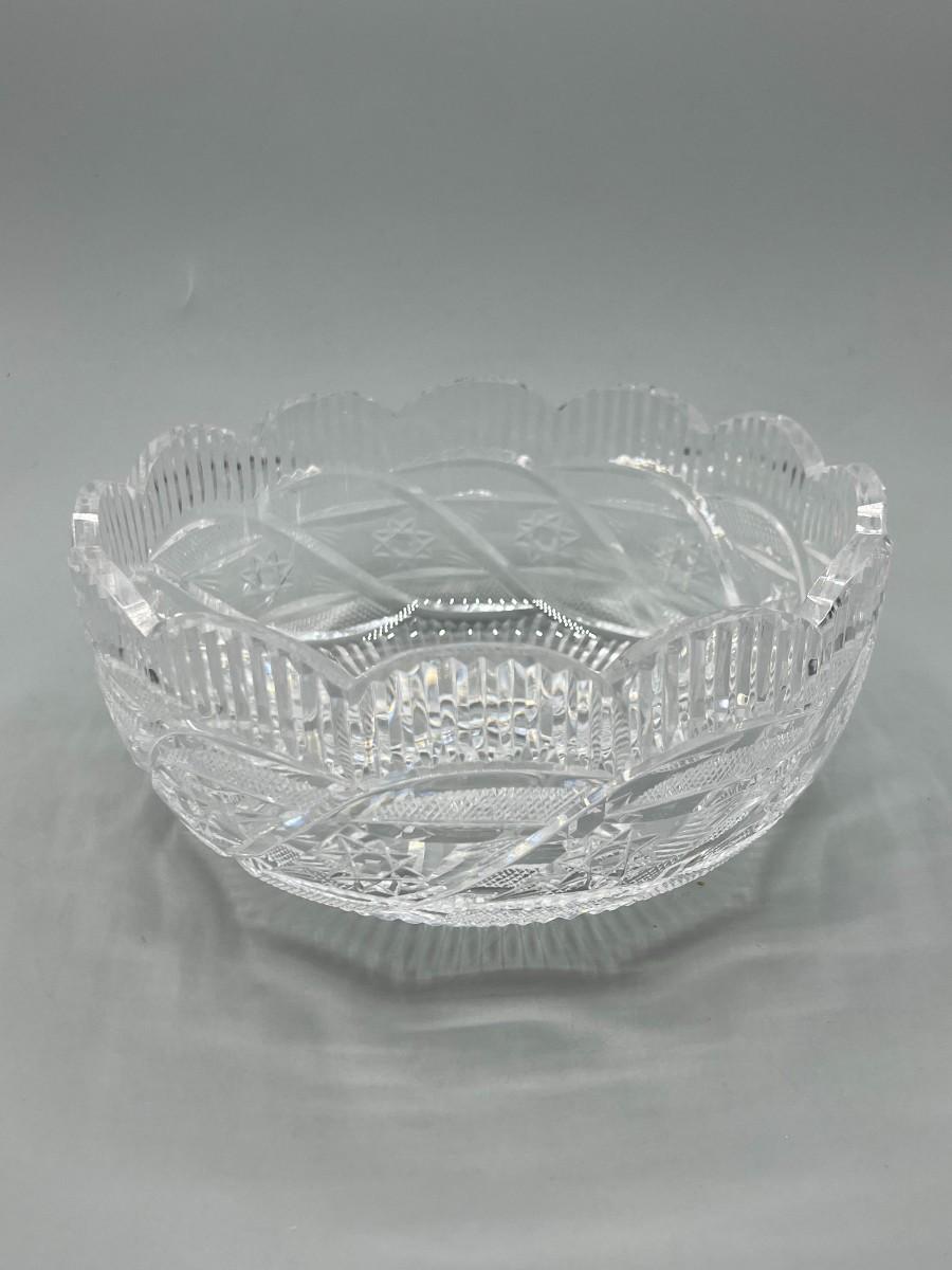 Vintage Scalloped Edge Cut Crystal Serving Bowl Dish