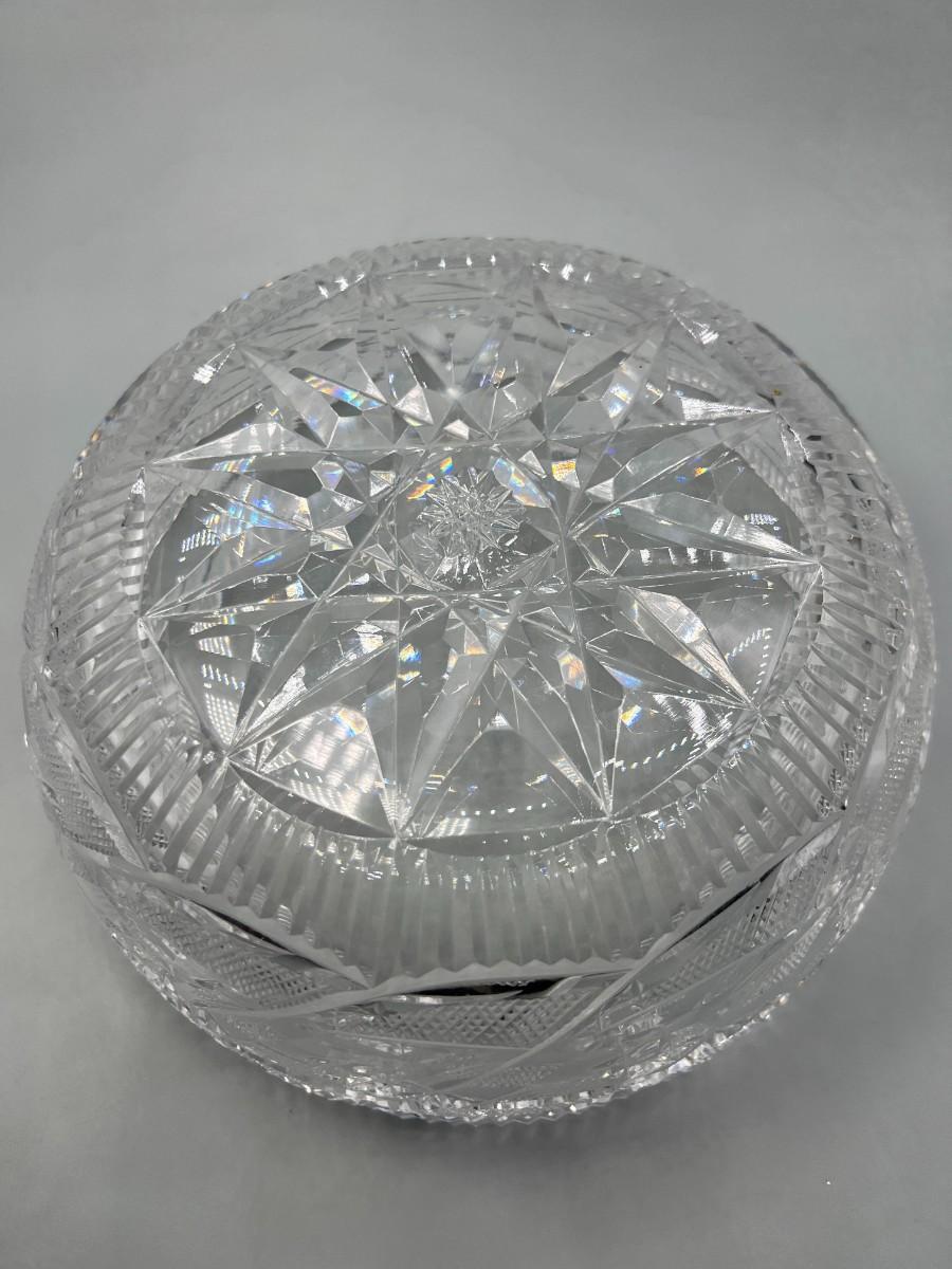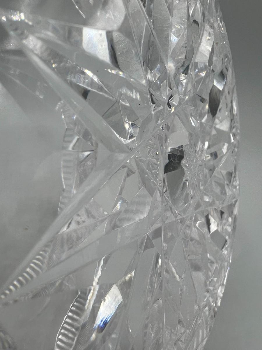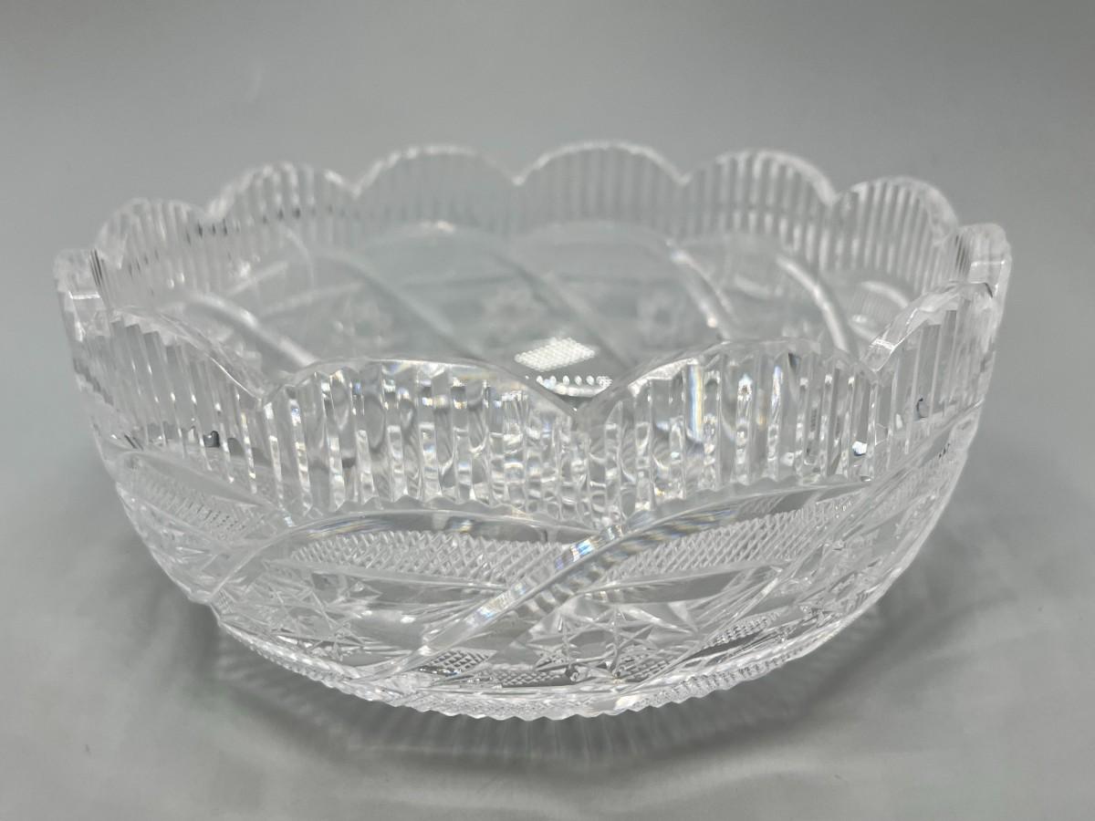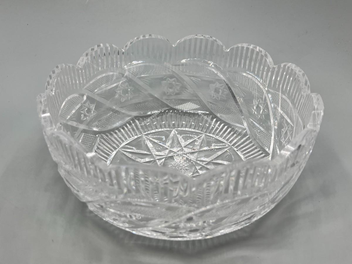 Vintage Scalloped Edge Cut Crystal Serving Bowl Dish. Nice details, displays well. About 8" diameter.