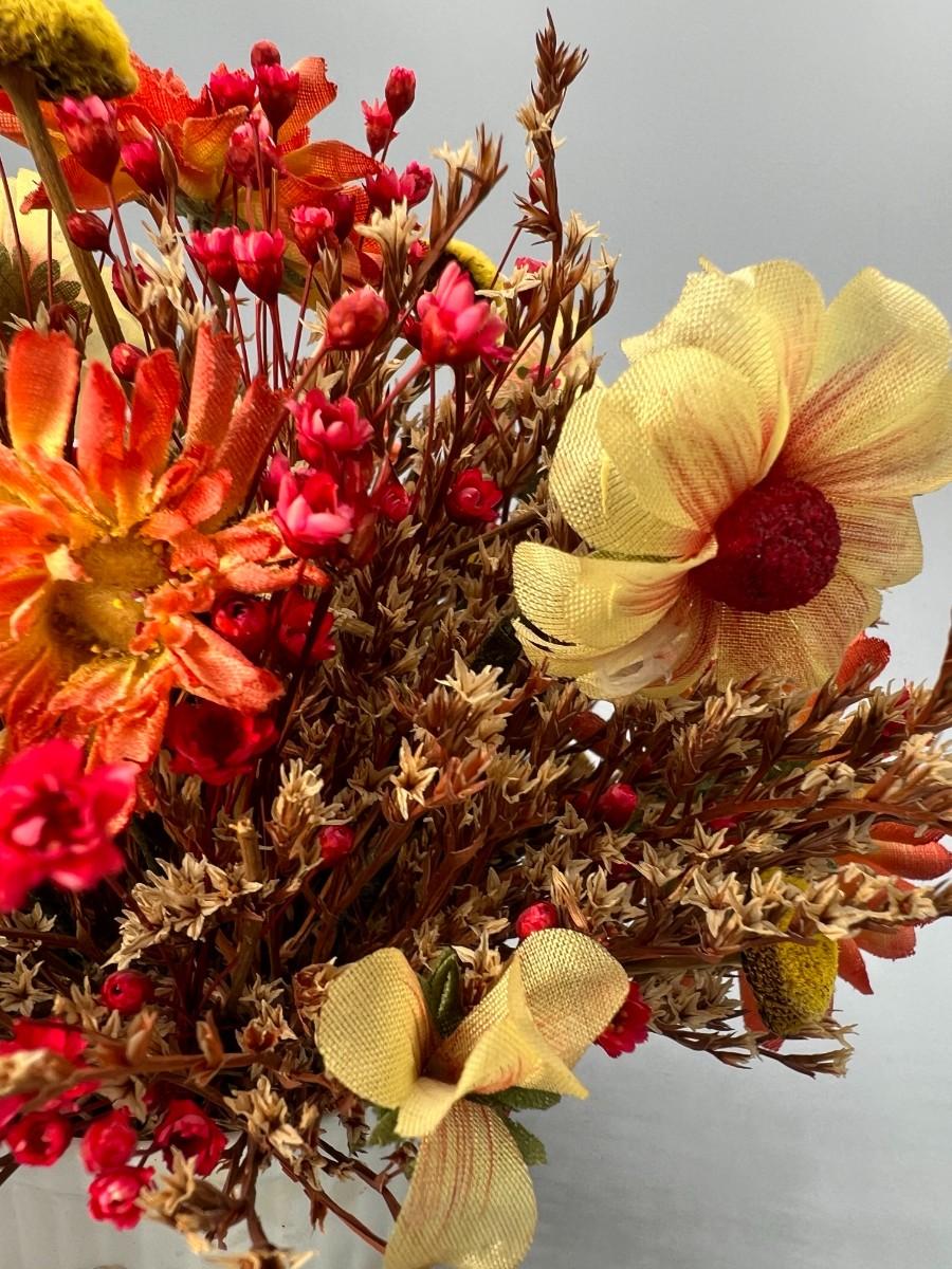 Vintage Retro Fall Autumn Warm Color Artificial Faux Flower Arrangement. In vintage condition.