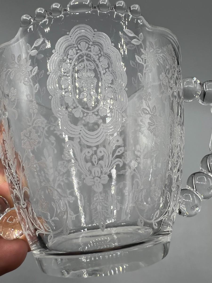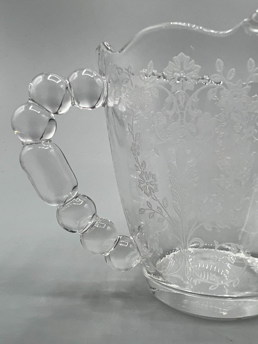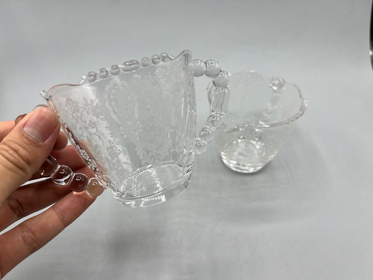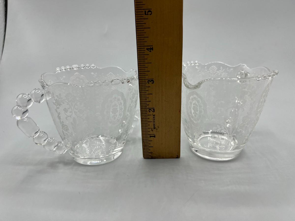Vintage Tiffin-Franciscan Etched Frosted Cream and Sugar Set. In good condition. Floral vine etched pattern.