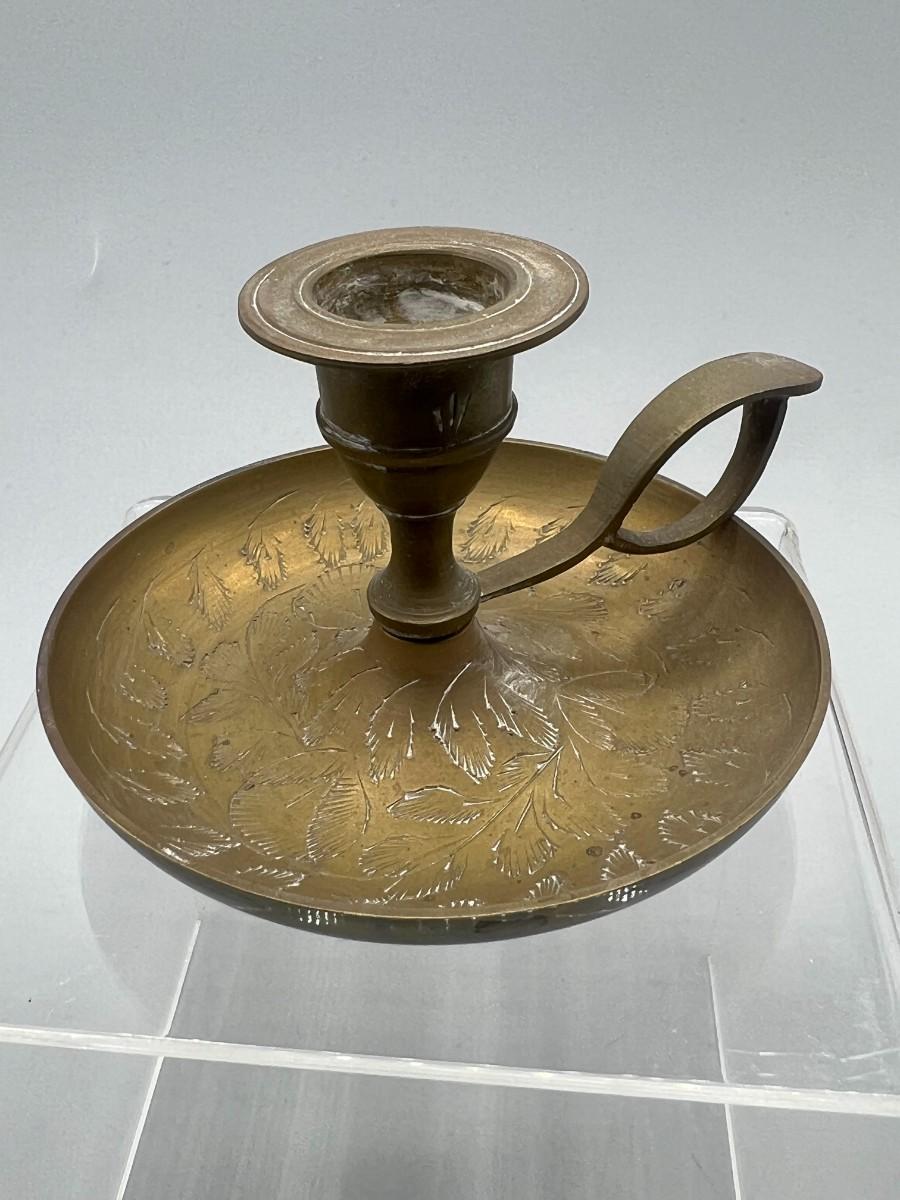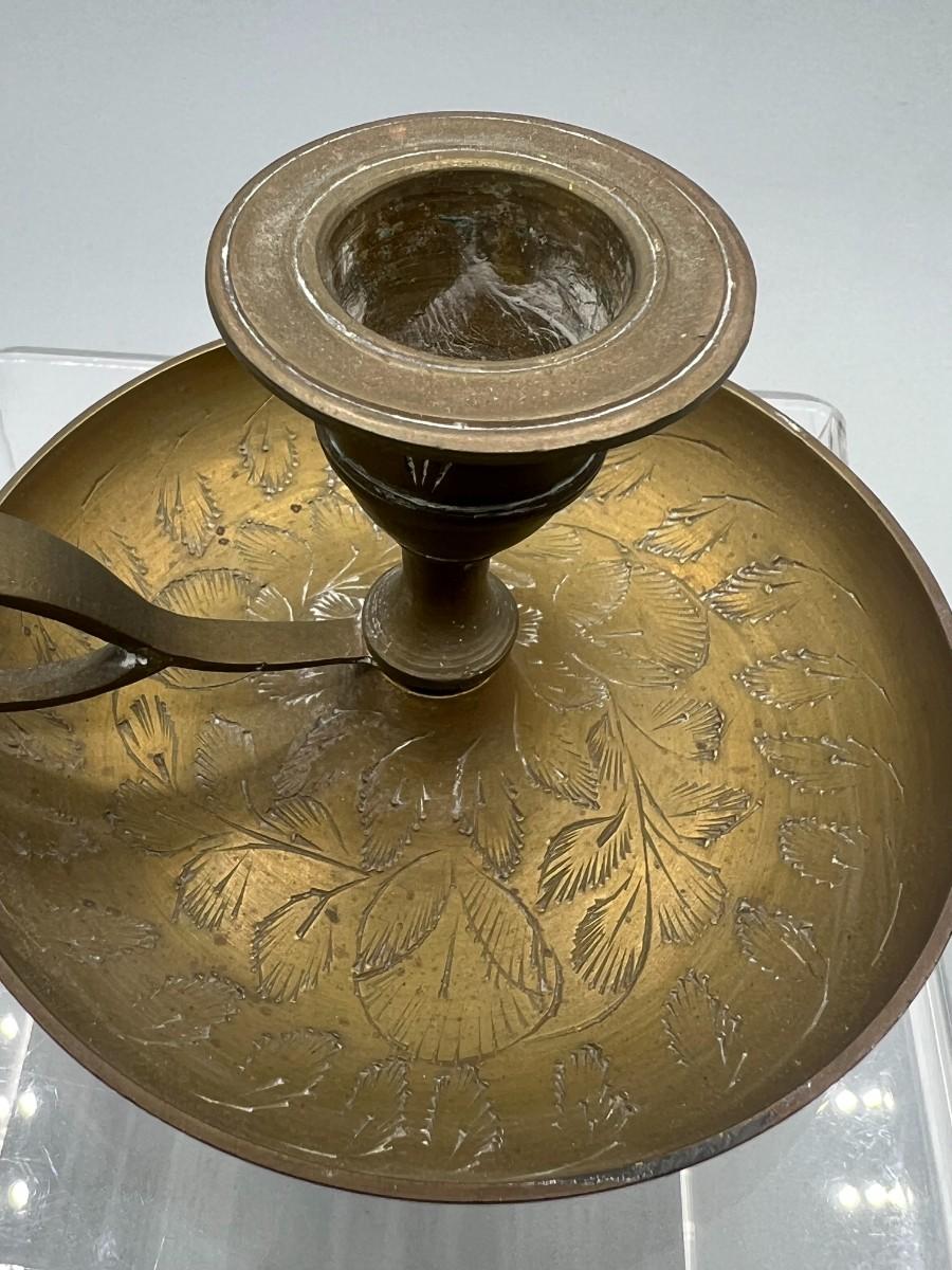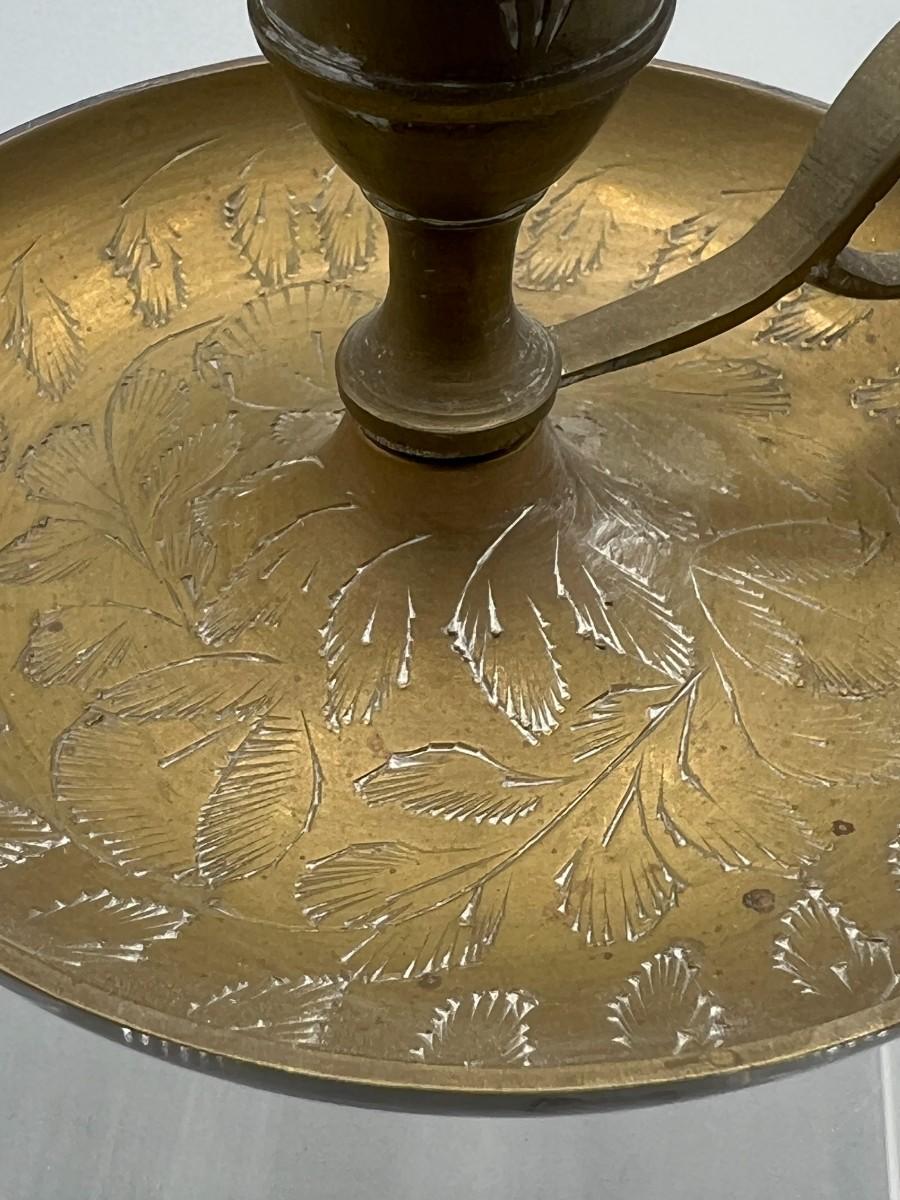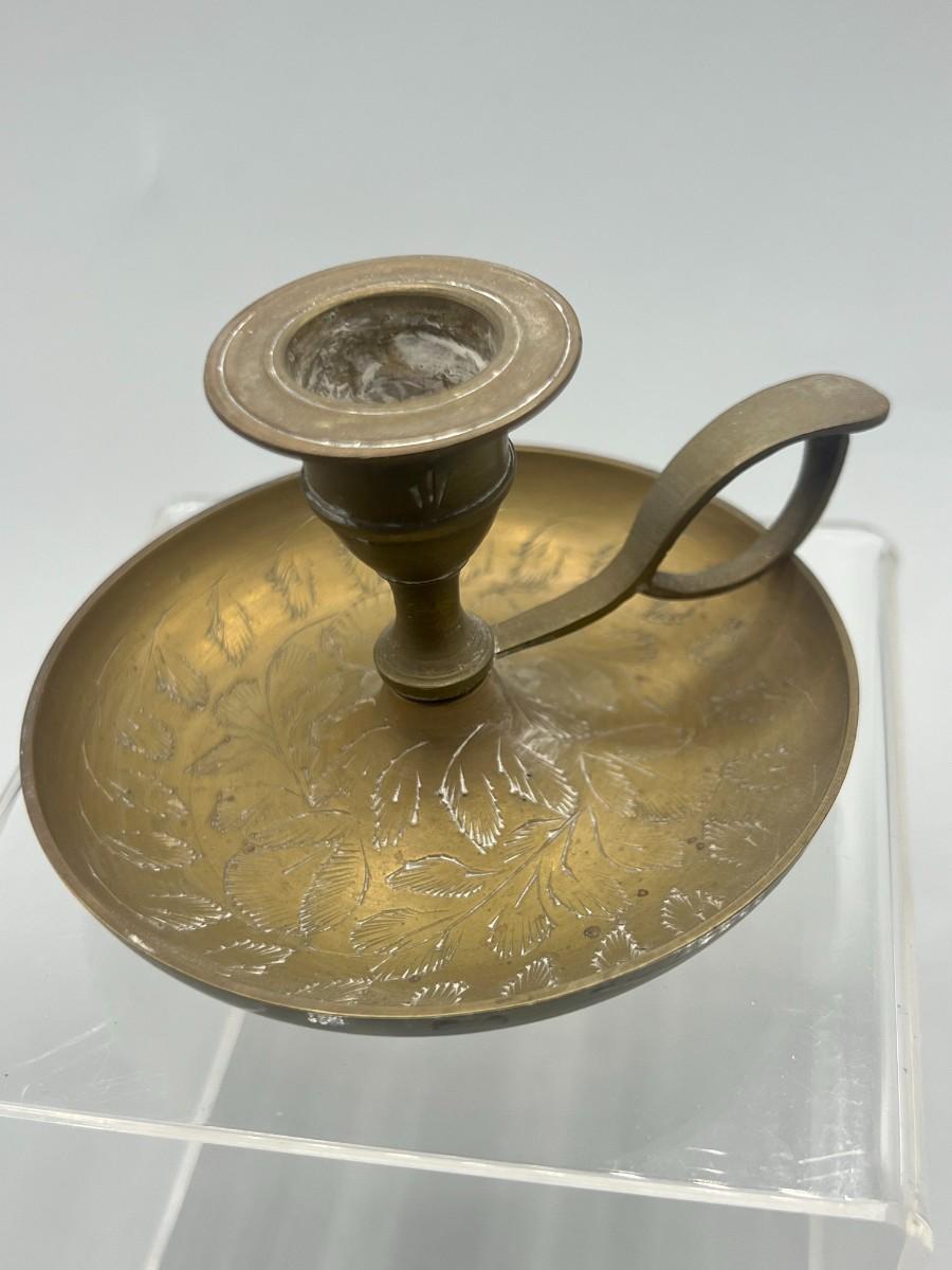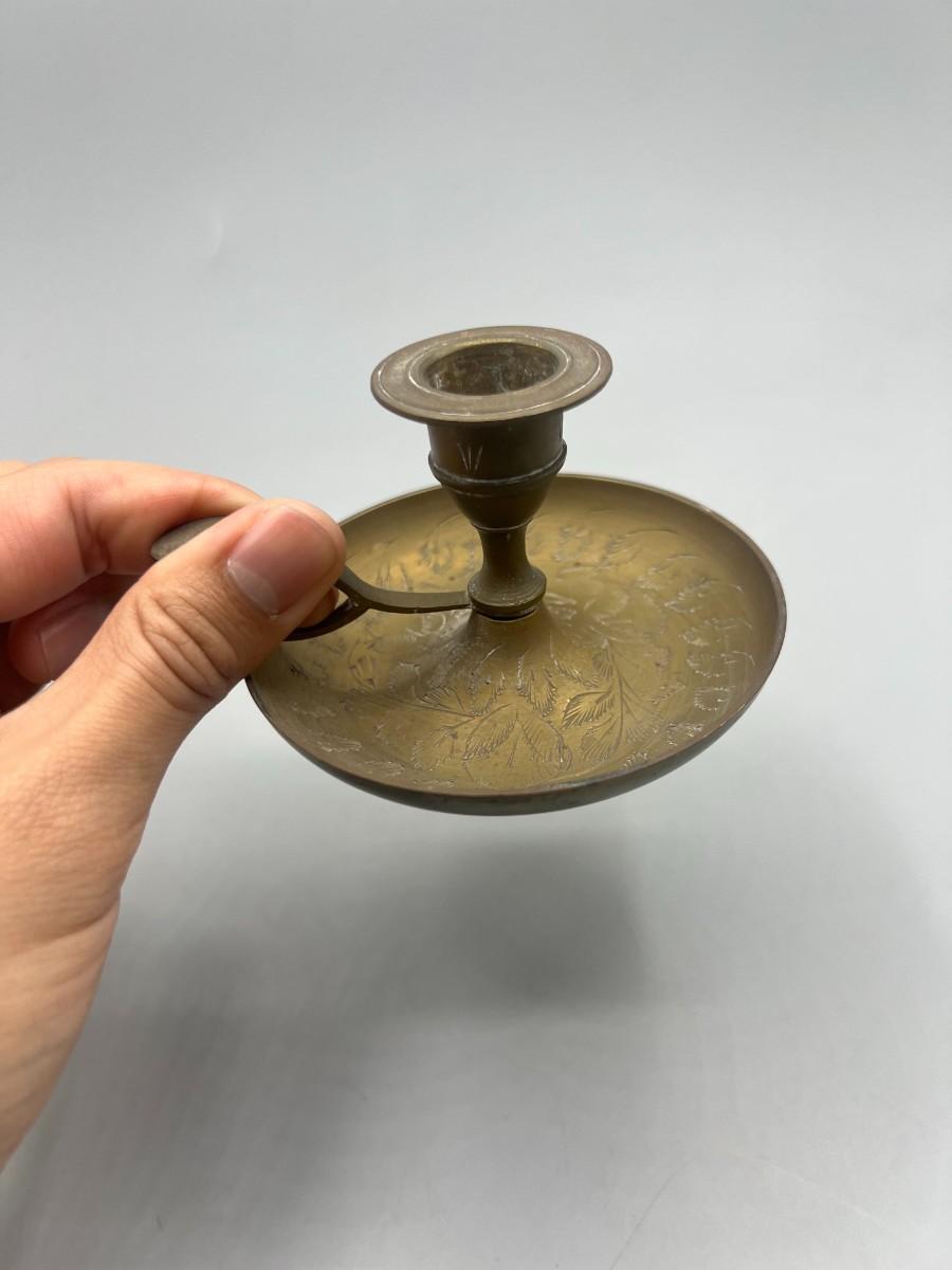 Vintage Solid Brass Candlestick Chamberstick Holder Finger Loop Handle Candle Drip Tray India