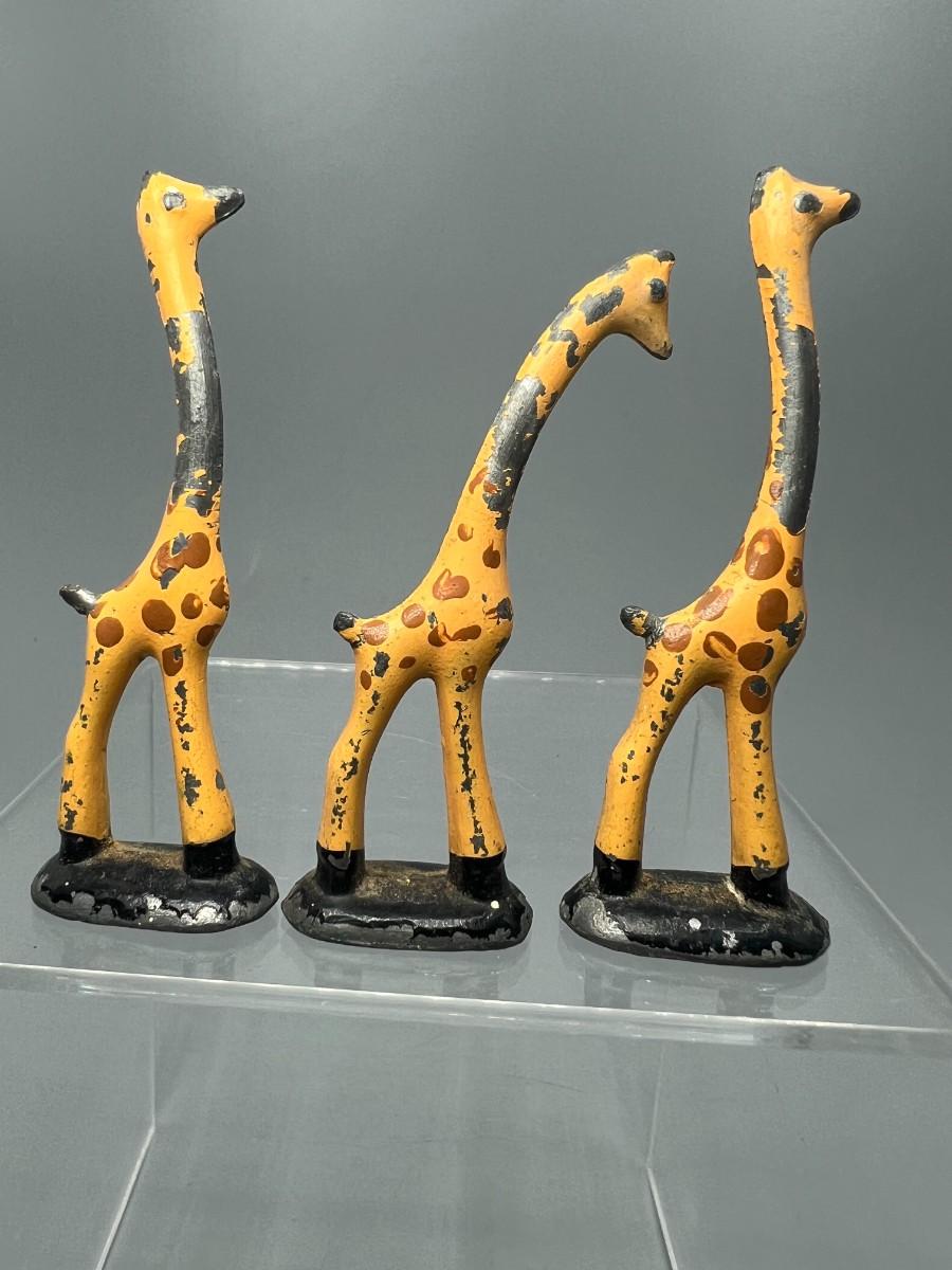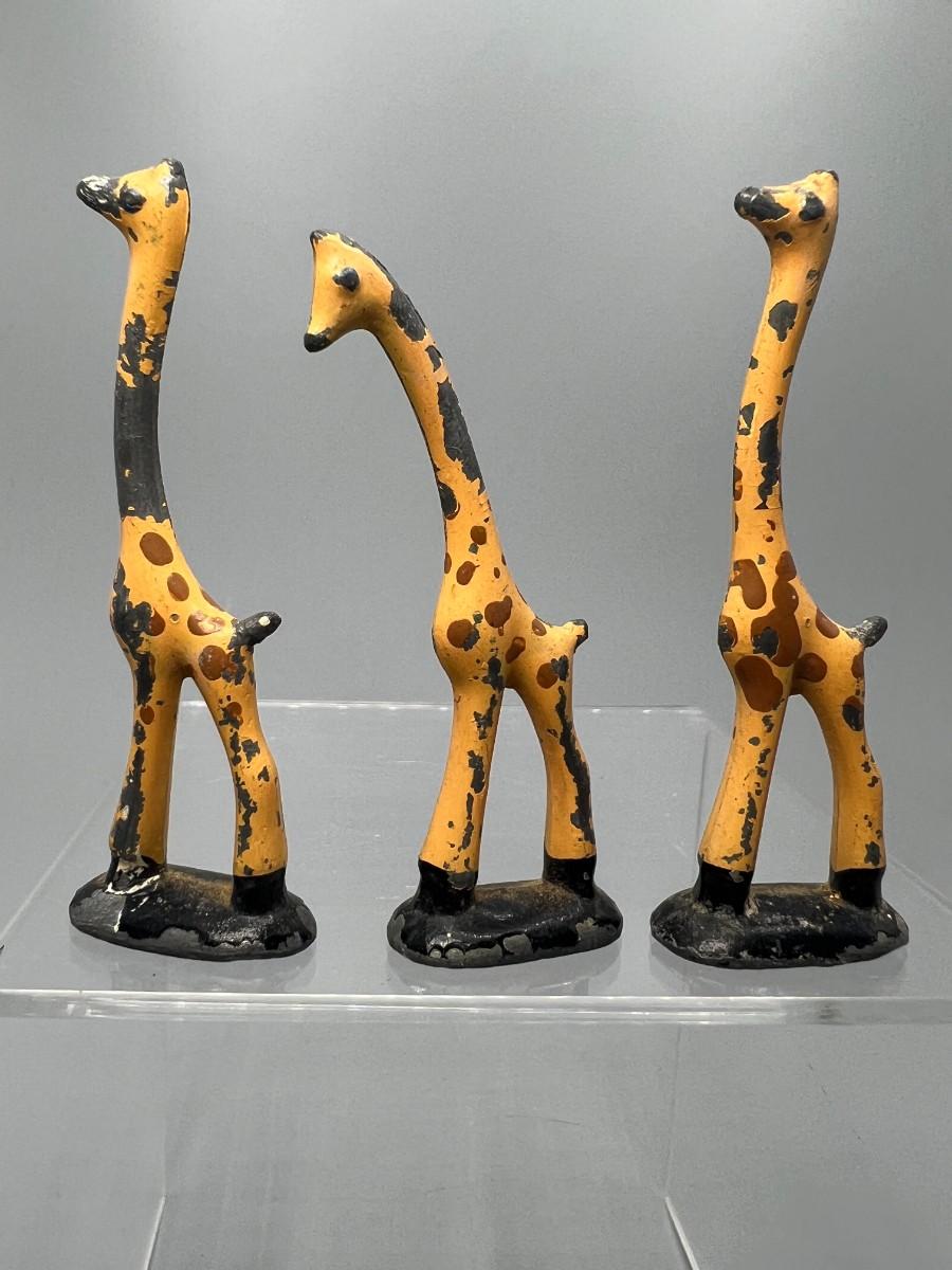 Small Hand Painted South African Metal Figurines Jungle Giraffe Animal Decor