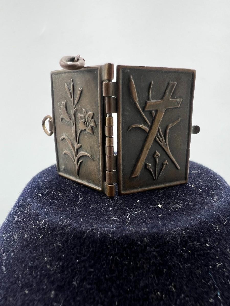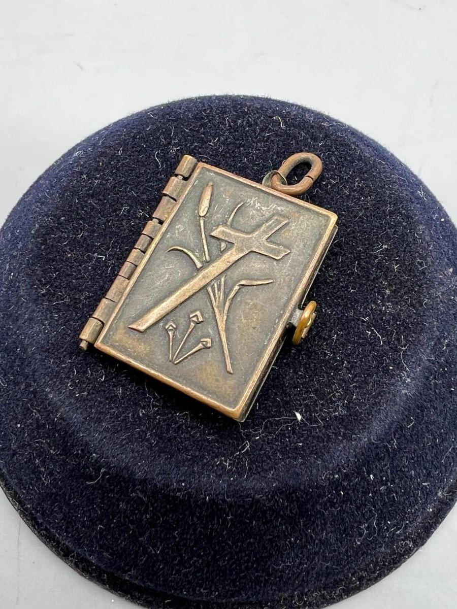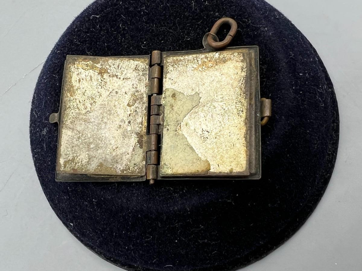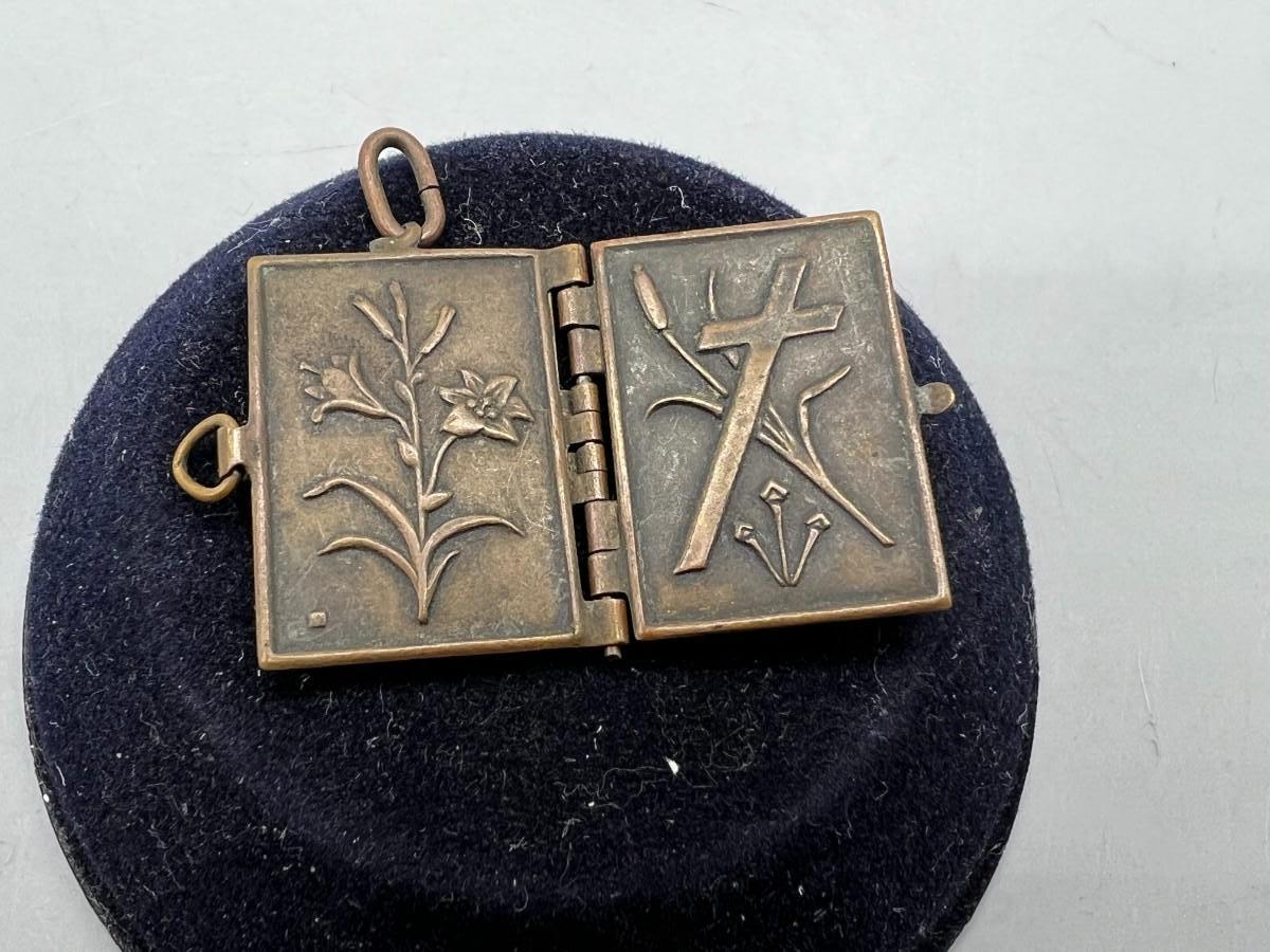 Antique French Metal Vermeil Medal Religious Book Locket Photo Album
