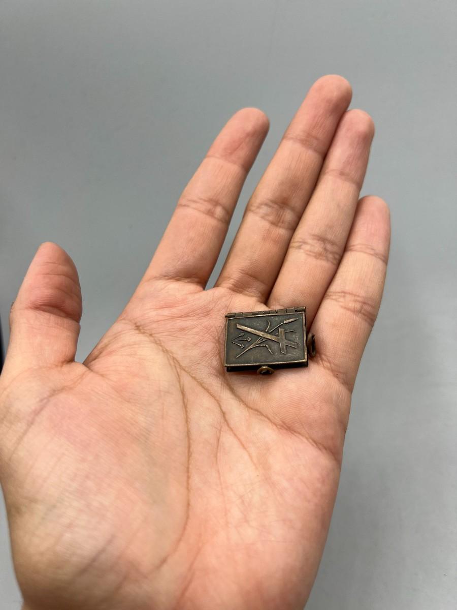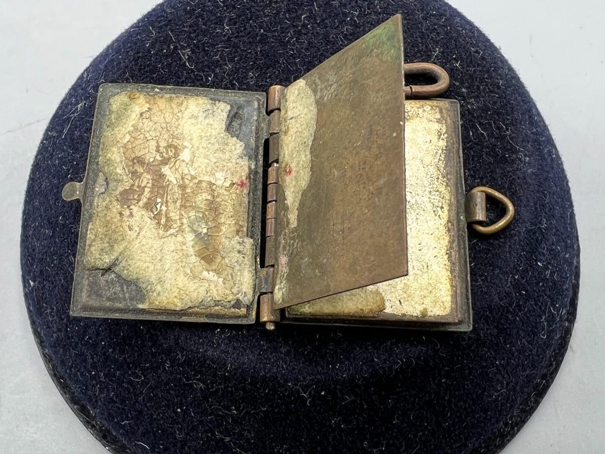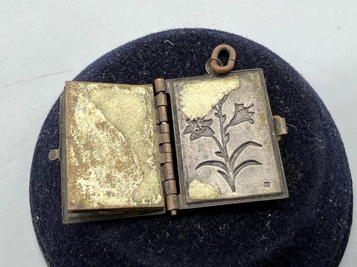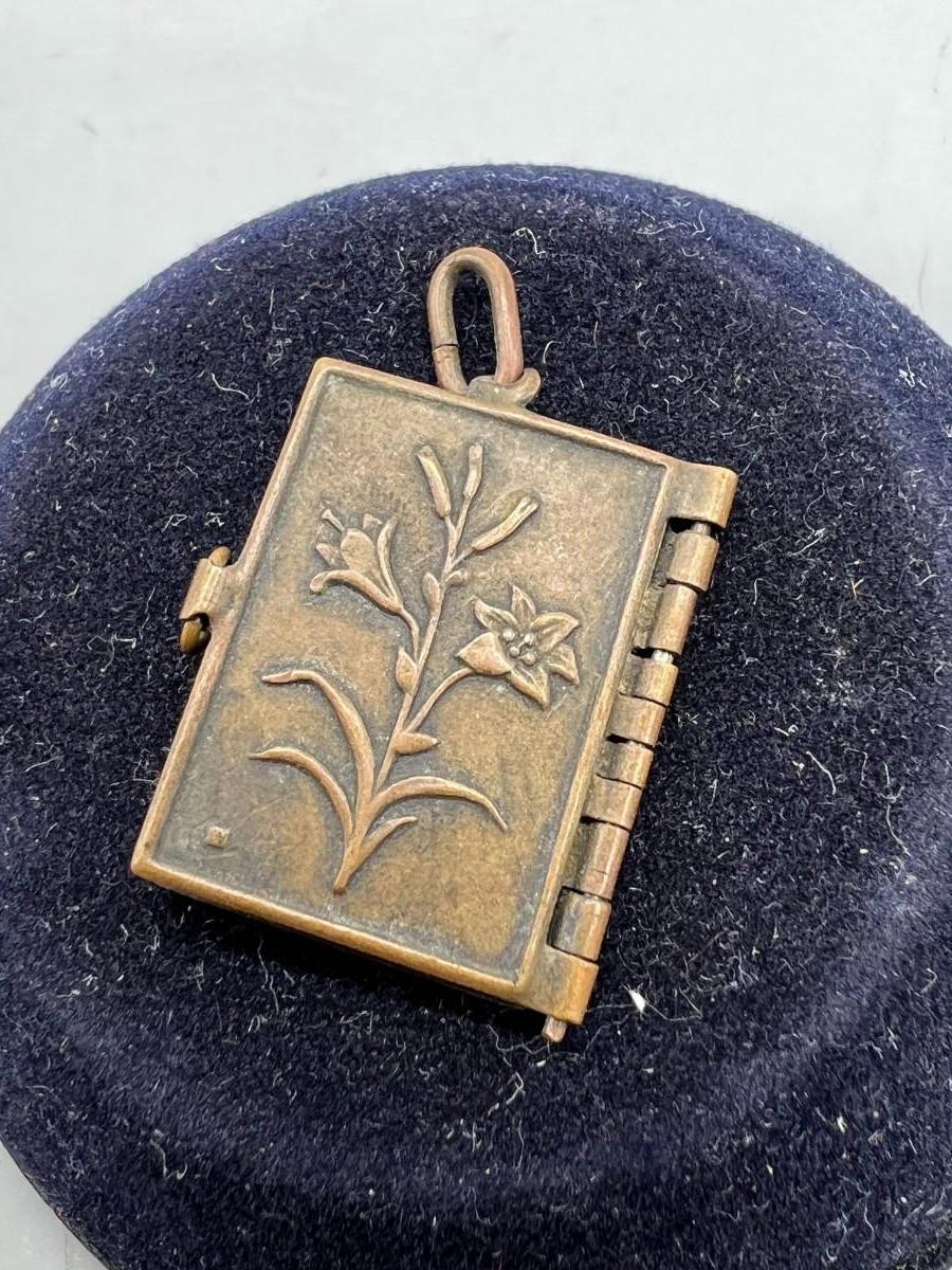 Antique French Metal Vermeil Medal Religious Book Locket Photo Album