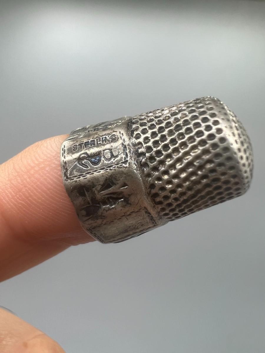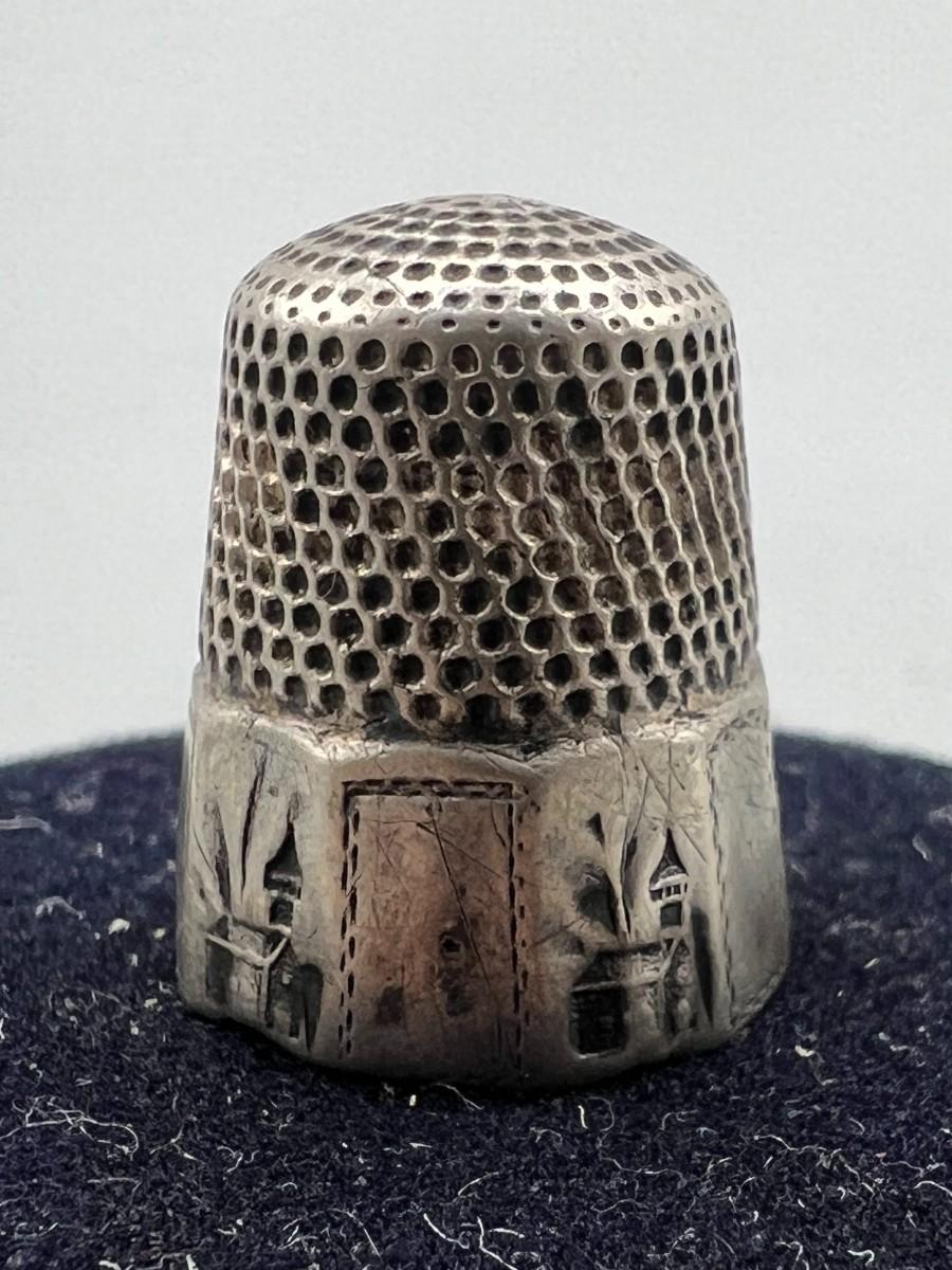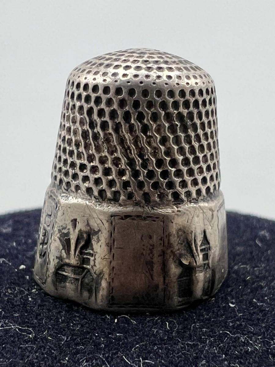 Antique Stern Brothers Sterling Silver Gothic Church Motif Stamped Diagonal Thimble