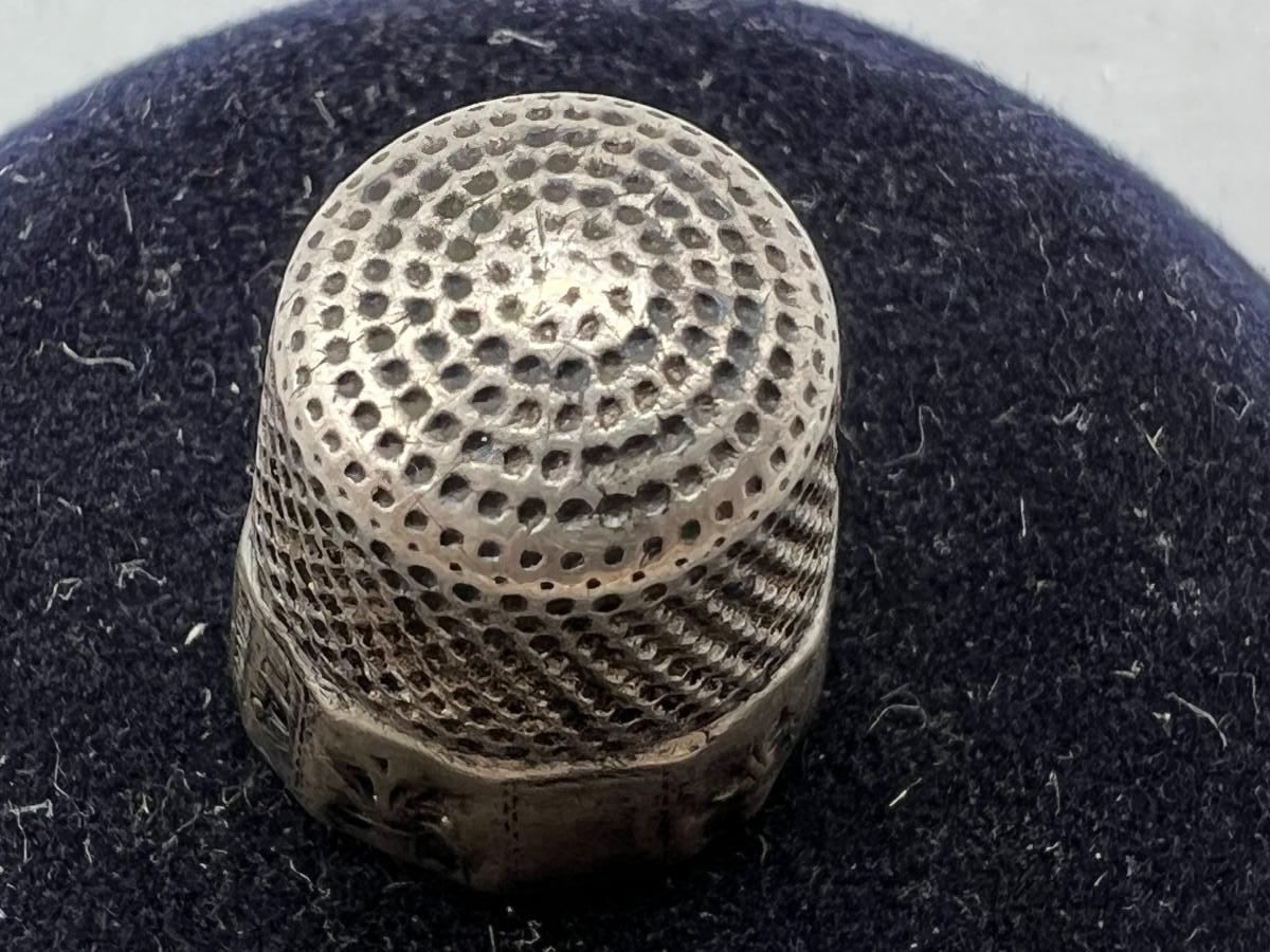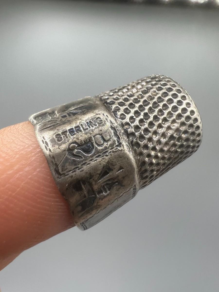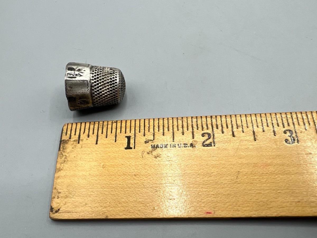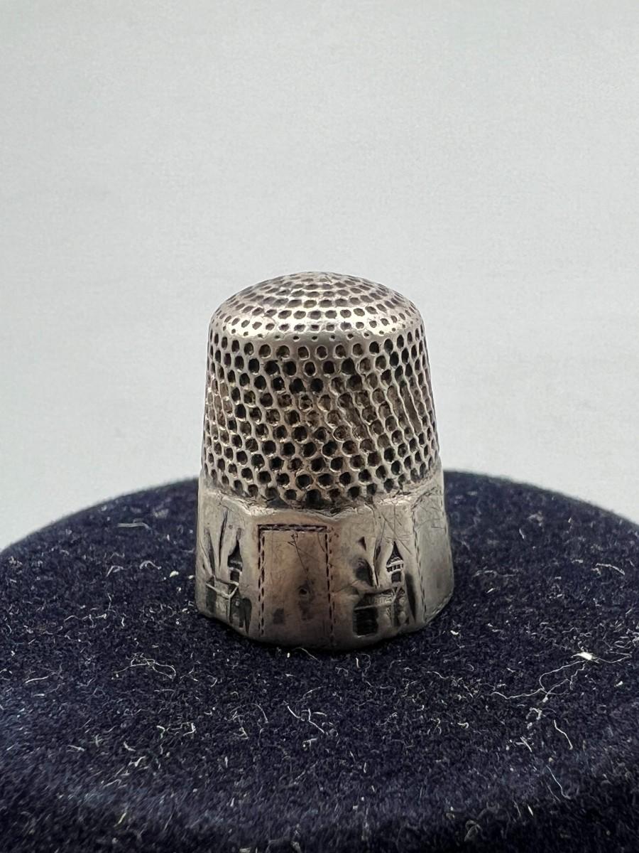 Antique Stern Brothers Sterling Silver Gothic Church Motif Stamped Diagonal Thimble