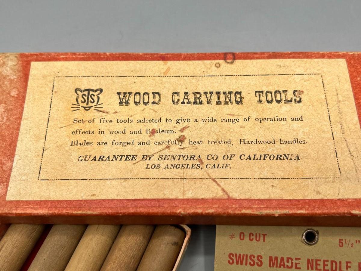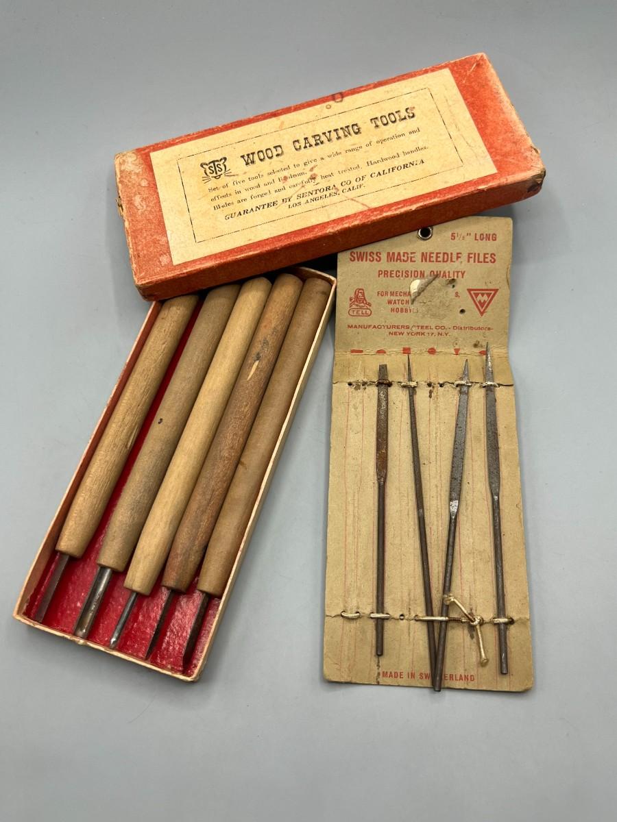 Vintage Wood Carving Tools Sentora Co of California & Swiss Made Needle Files Hobby Tools