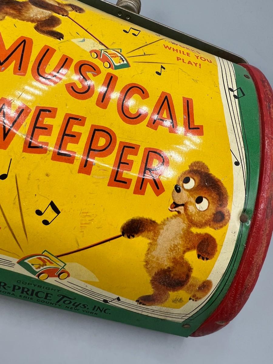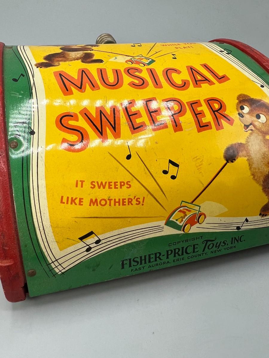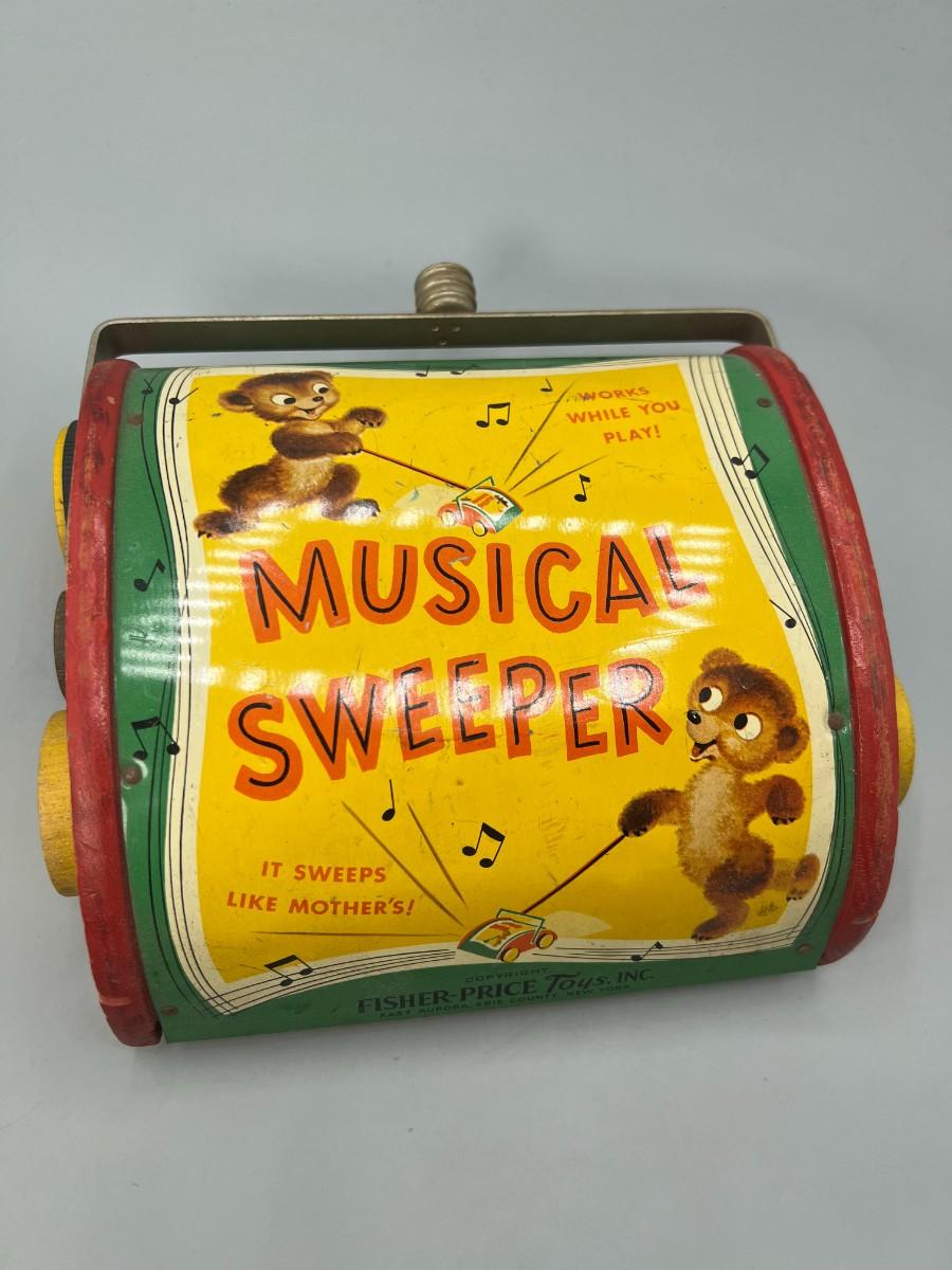 Vintage Musical Sweeper Fisher Price Little Bear Push Toy Music Box Sweeper