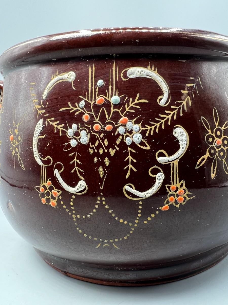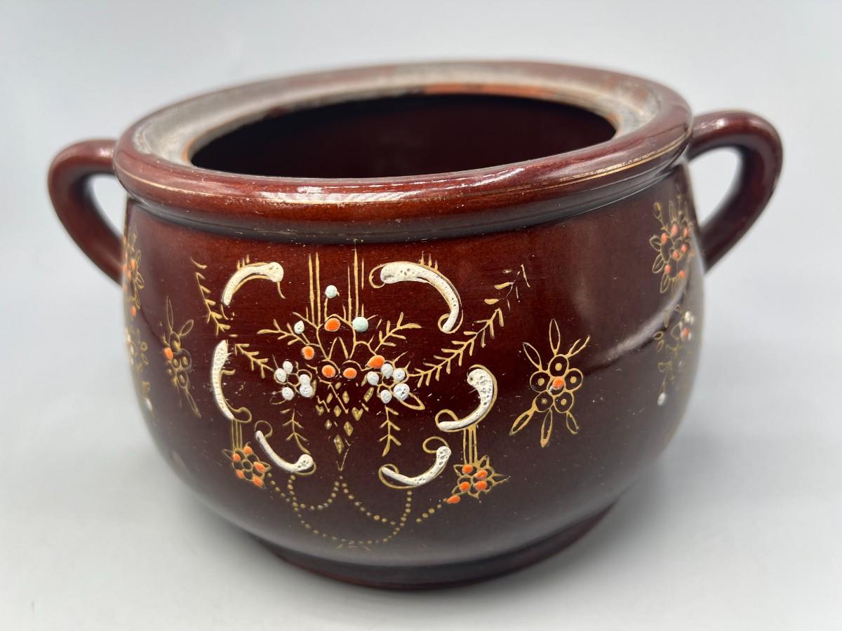 Moriage Style Rice Pot Ceramic Brown Glazed, no lid
