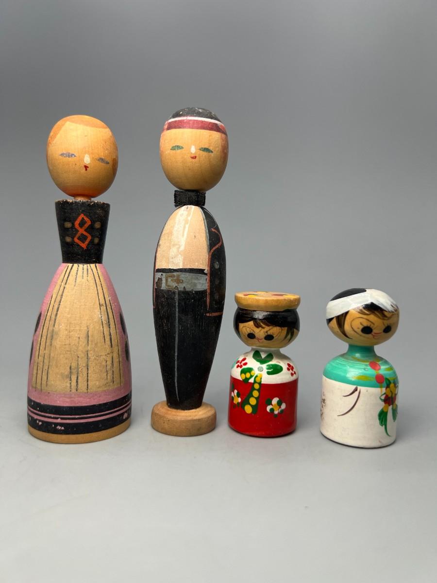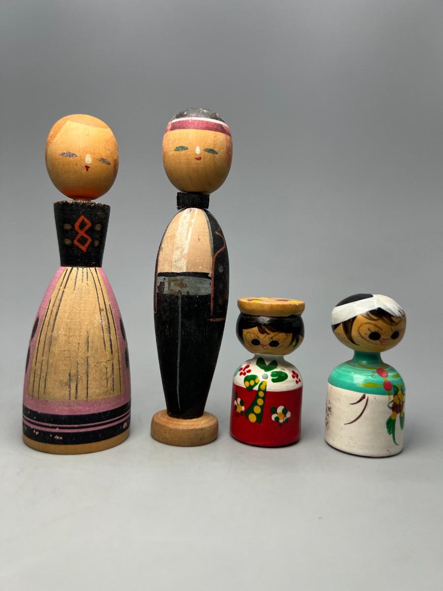 Vintage Kokeshi Dolls Made in Japan Bride & Groom Man & Woman Hand Painted