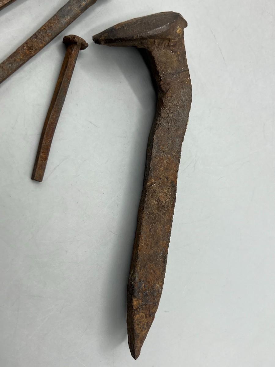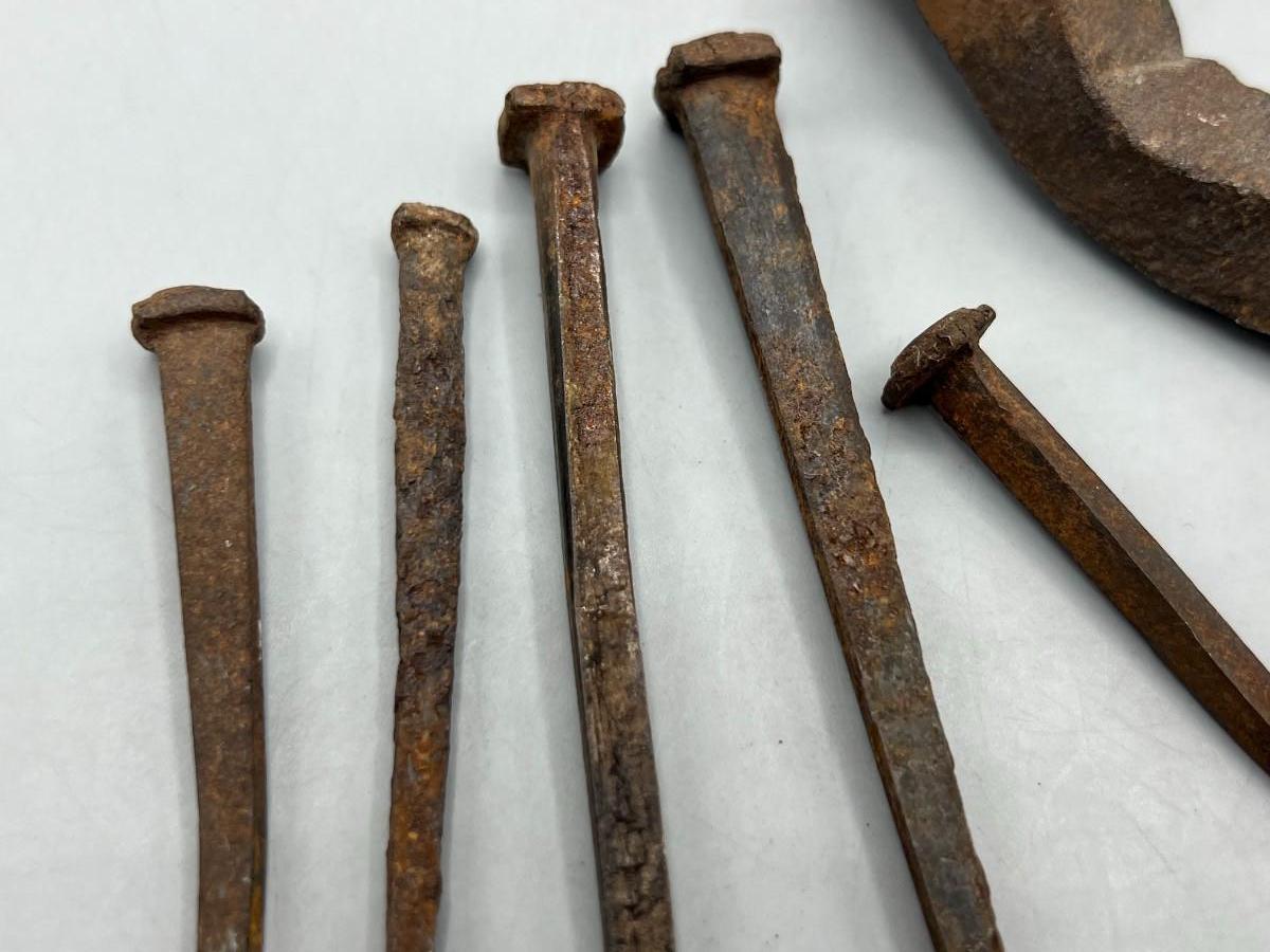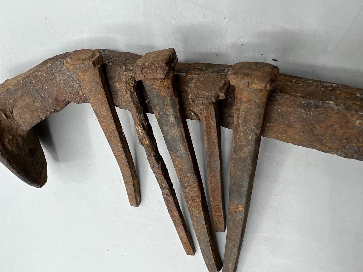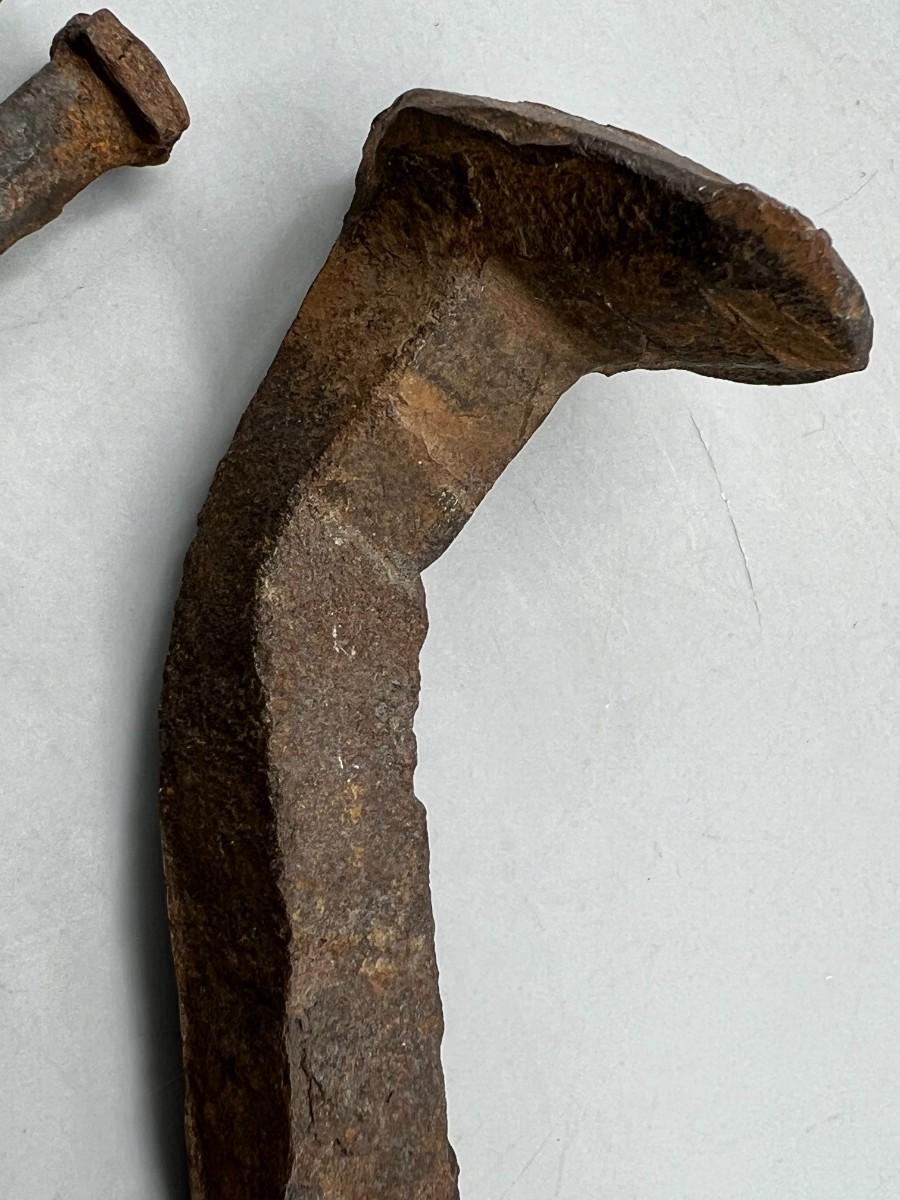 Antique Bent and Rusty Old Railroad Spike and Hand Cut Nails