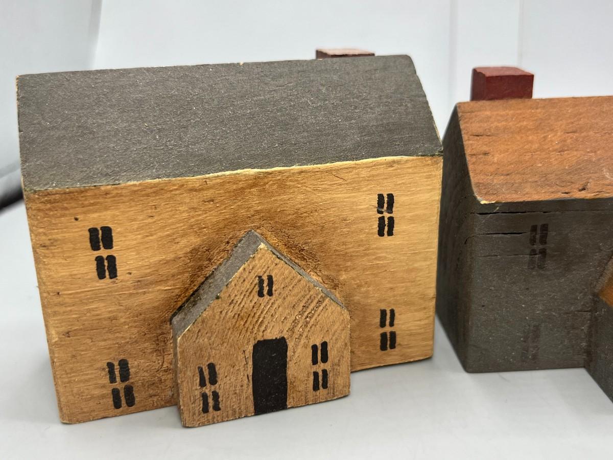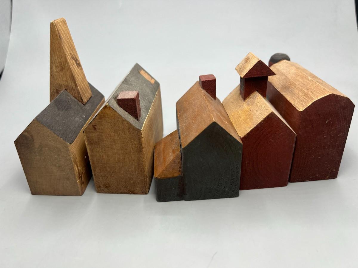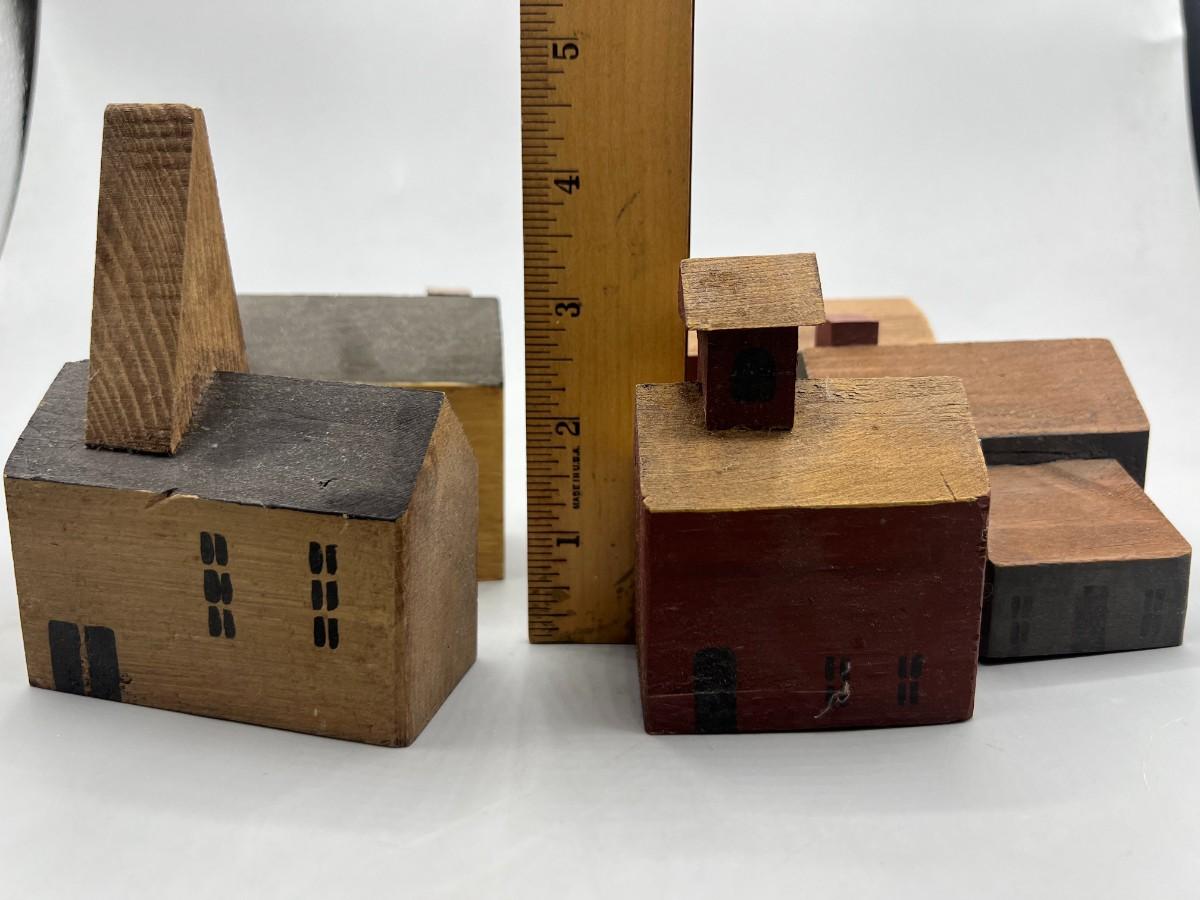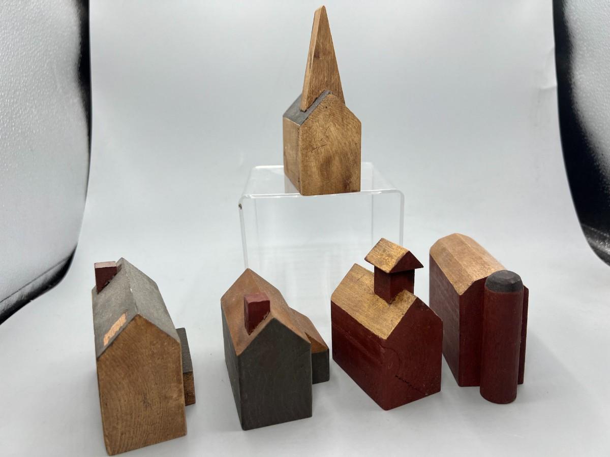 Vintage Wooden Houses Churches Buildings Scrap Block Wood Sculpture Figures