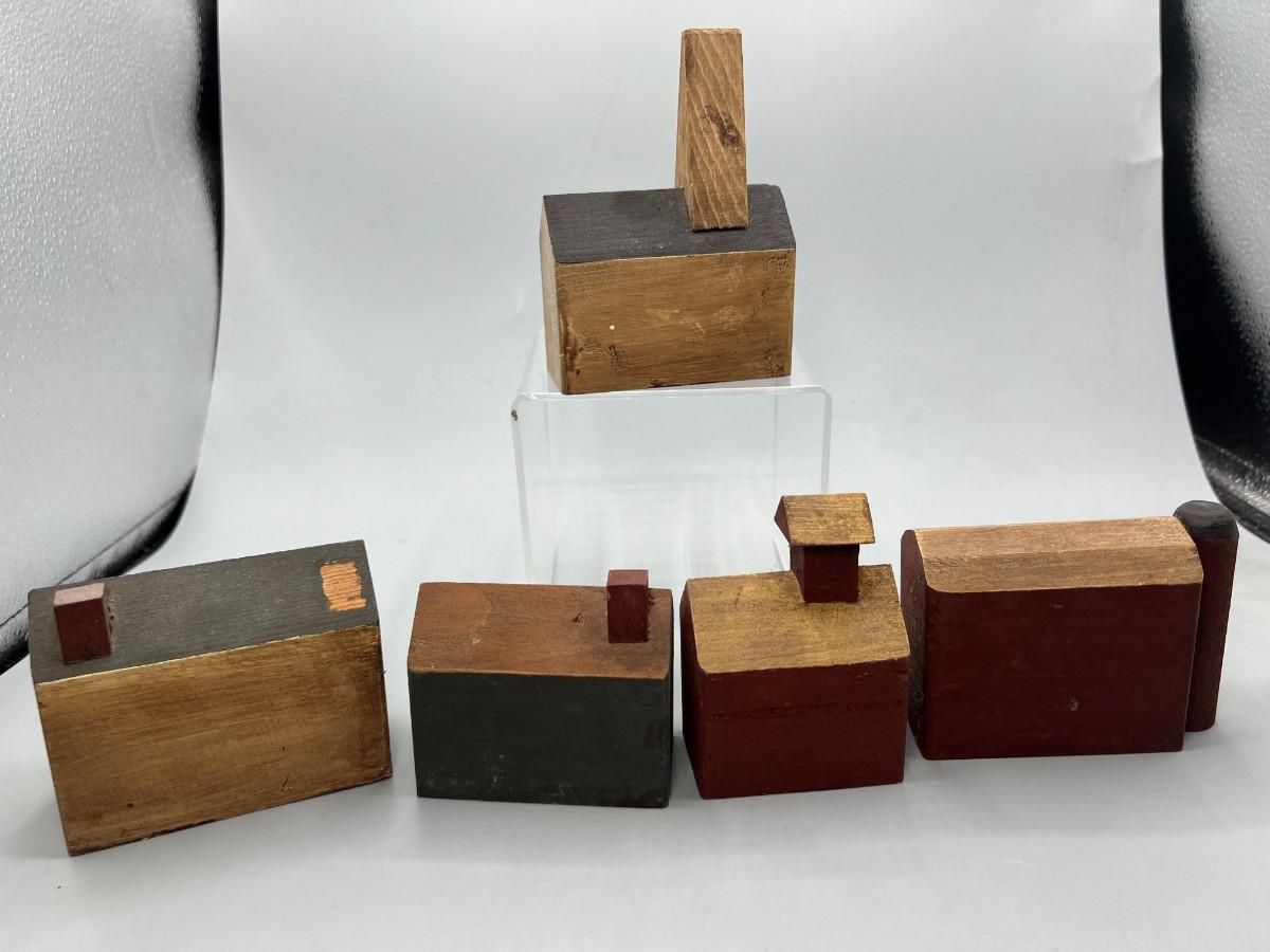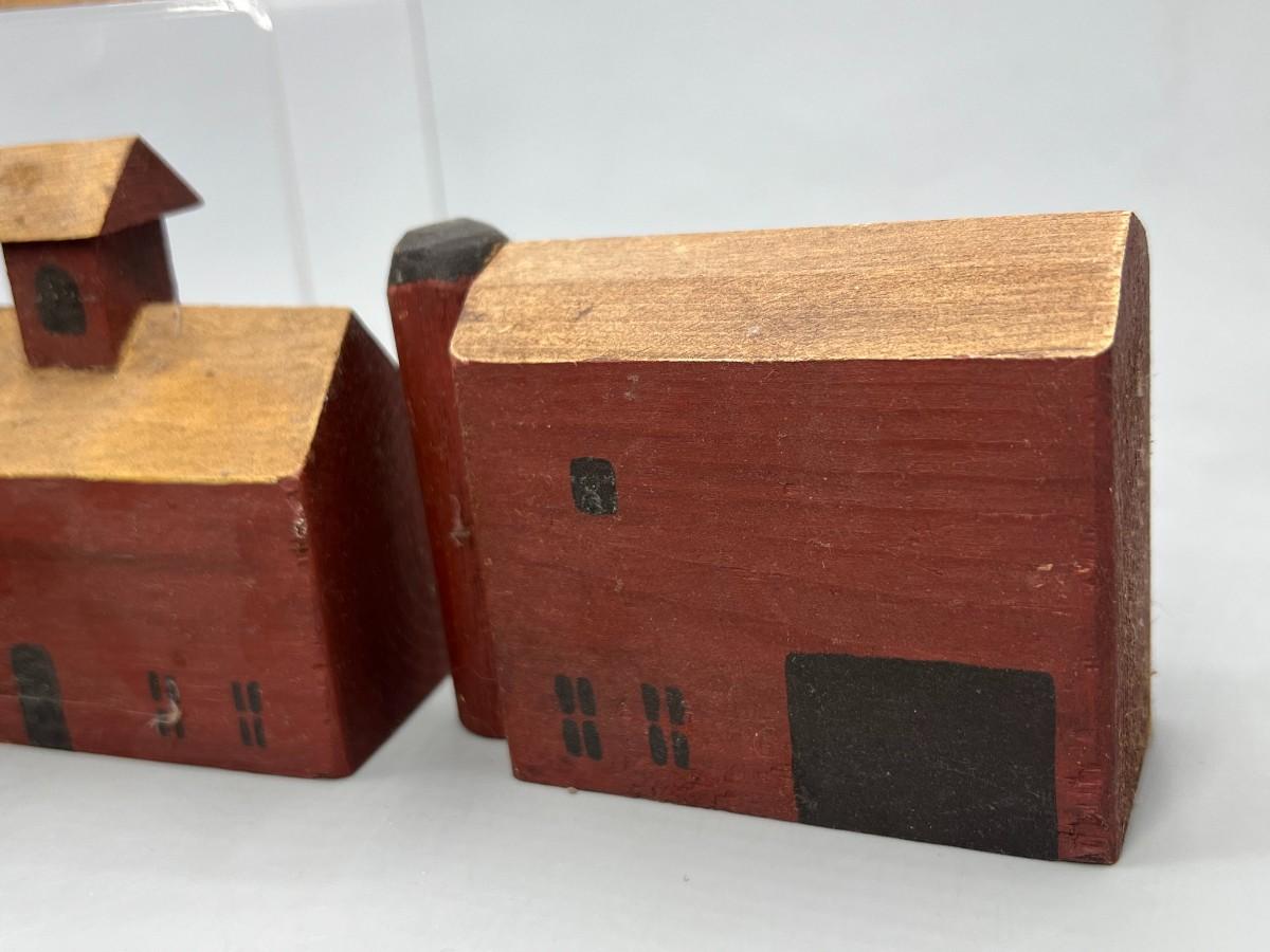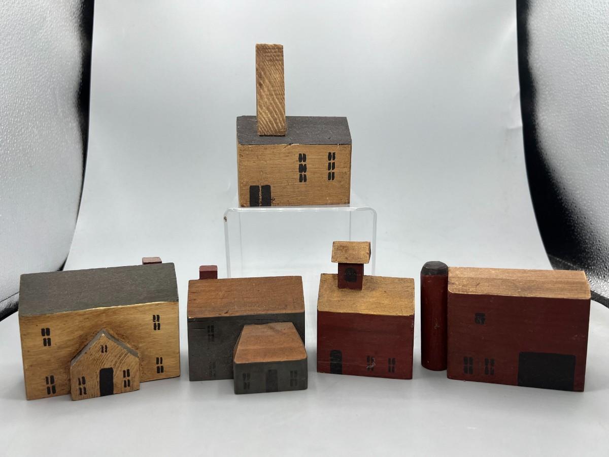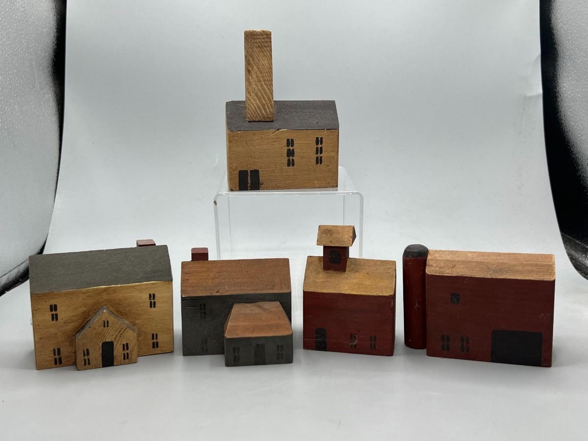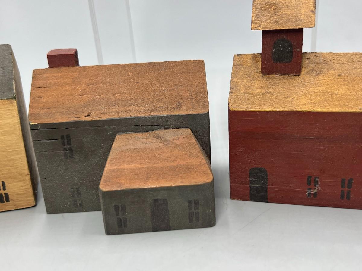 Vintage Wooden Houses Churches Buildings Scrap Block Wood Sculpture Figures