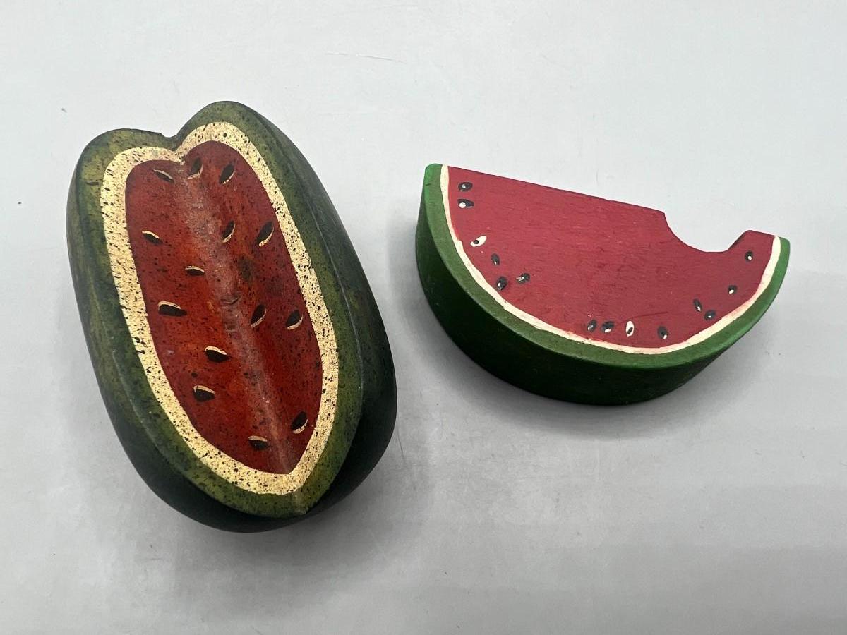 Vintage Decorative Fruit Decor Table Watermelon w/ Seeds and Rind Hand-Painted Faux