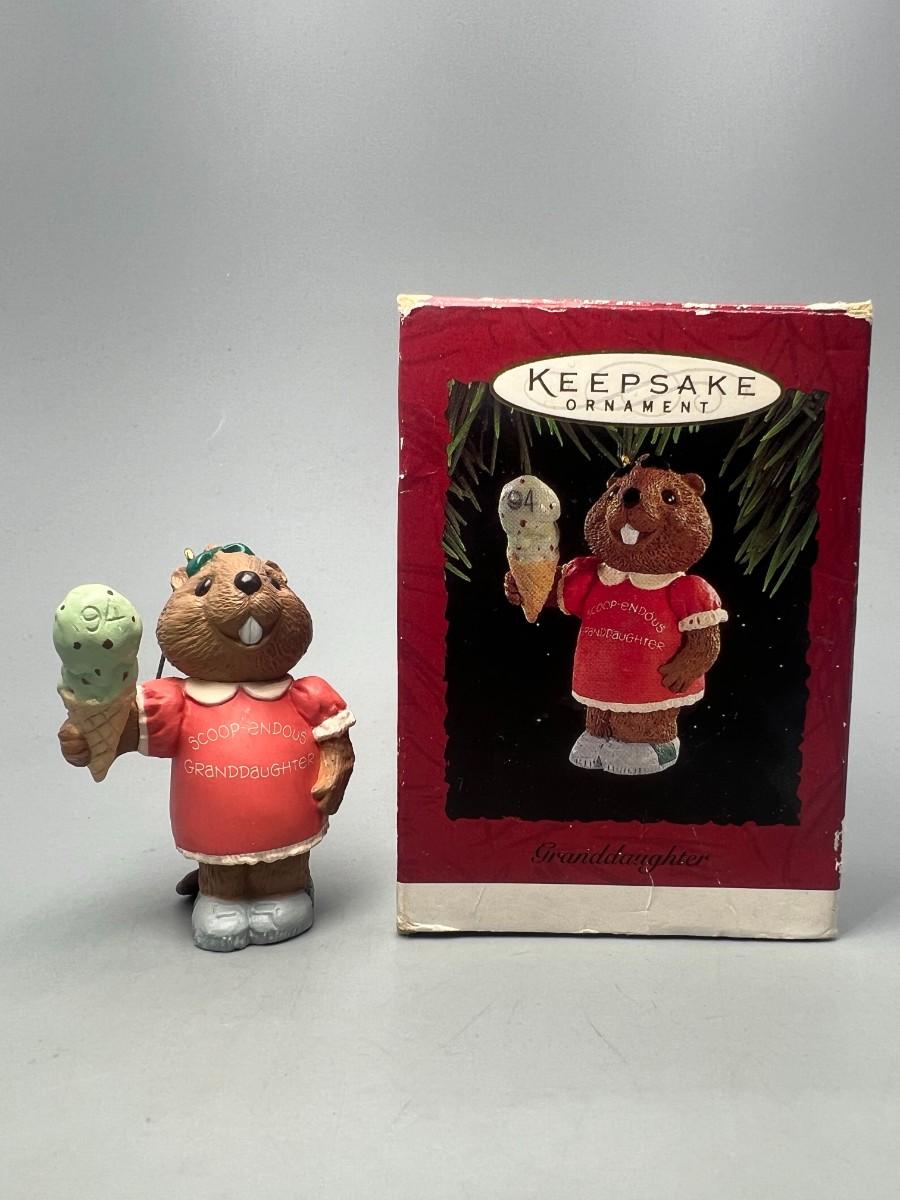 Hallmark Keepsake Ornament Beaver Granddaughter w/ Ice Cream Cone & T-Shirt Saying Scoopendous