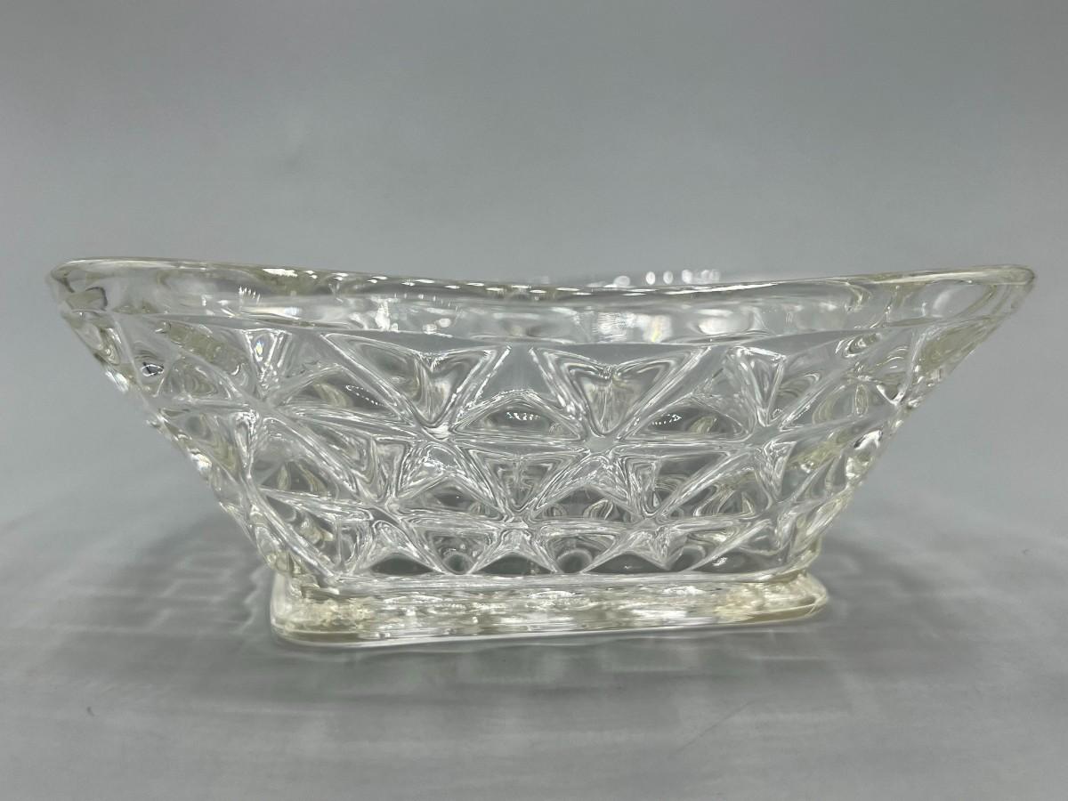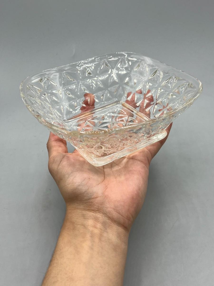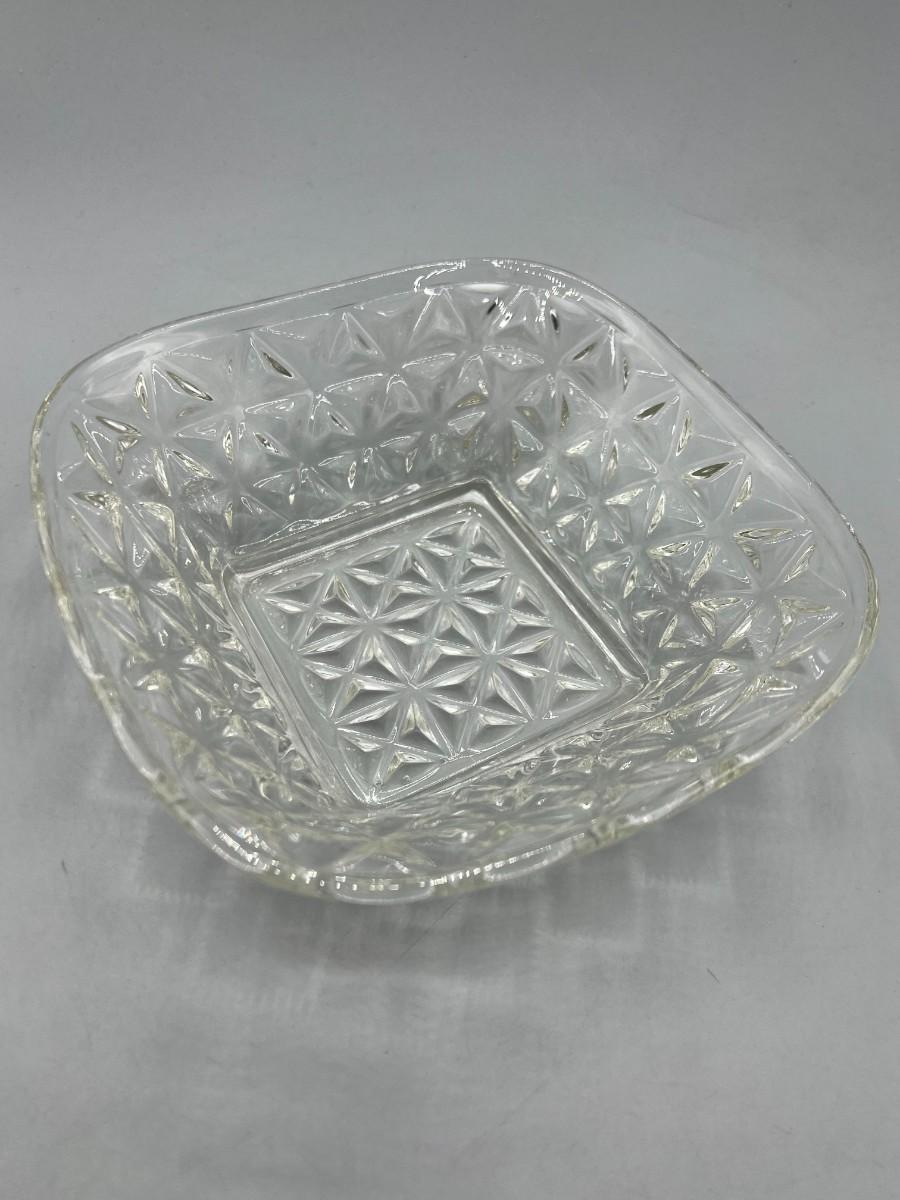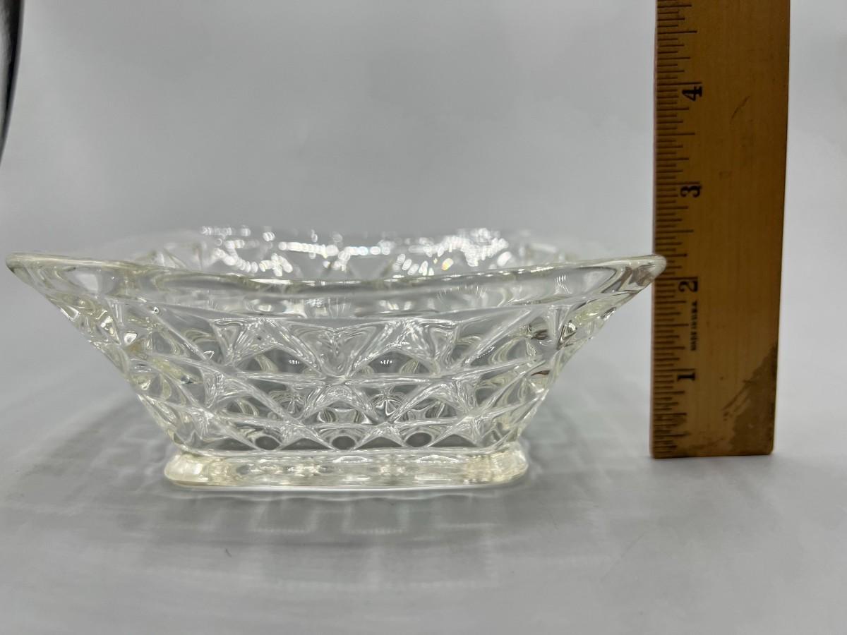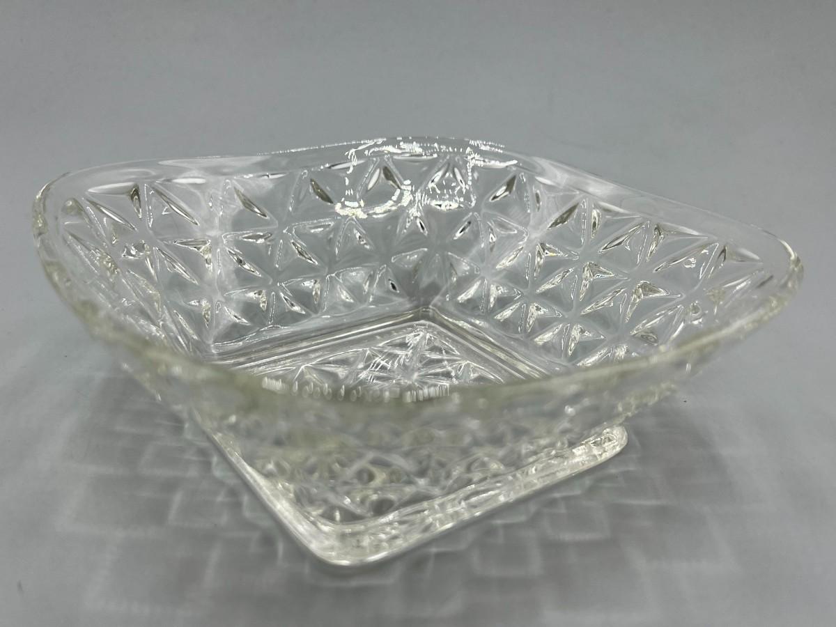 Vintage Imperial Glass MCM Ohio Clear Mt. Vernon Square Sauce Plate Criss Cross Diamond Pattern