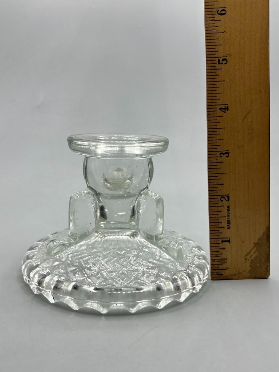 There is no damage to the candlestick holder and is in good useable or displayable condition. Check pictures for more details and for sizing.