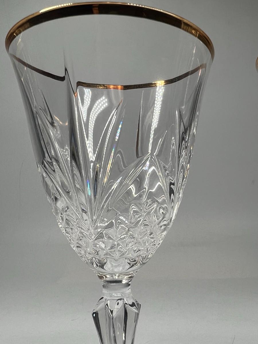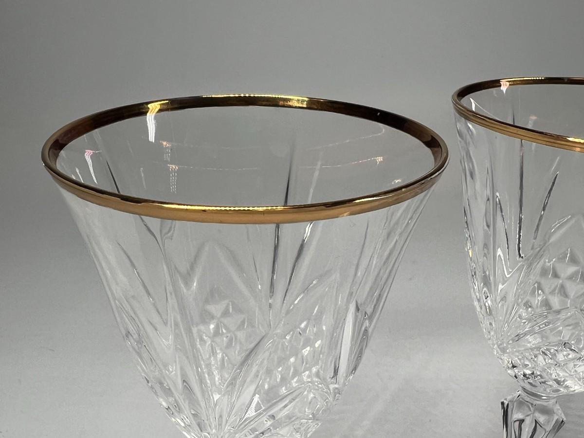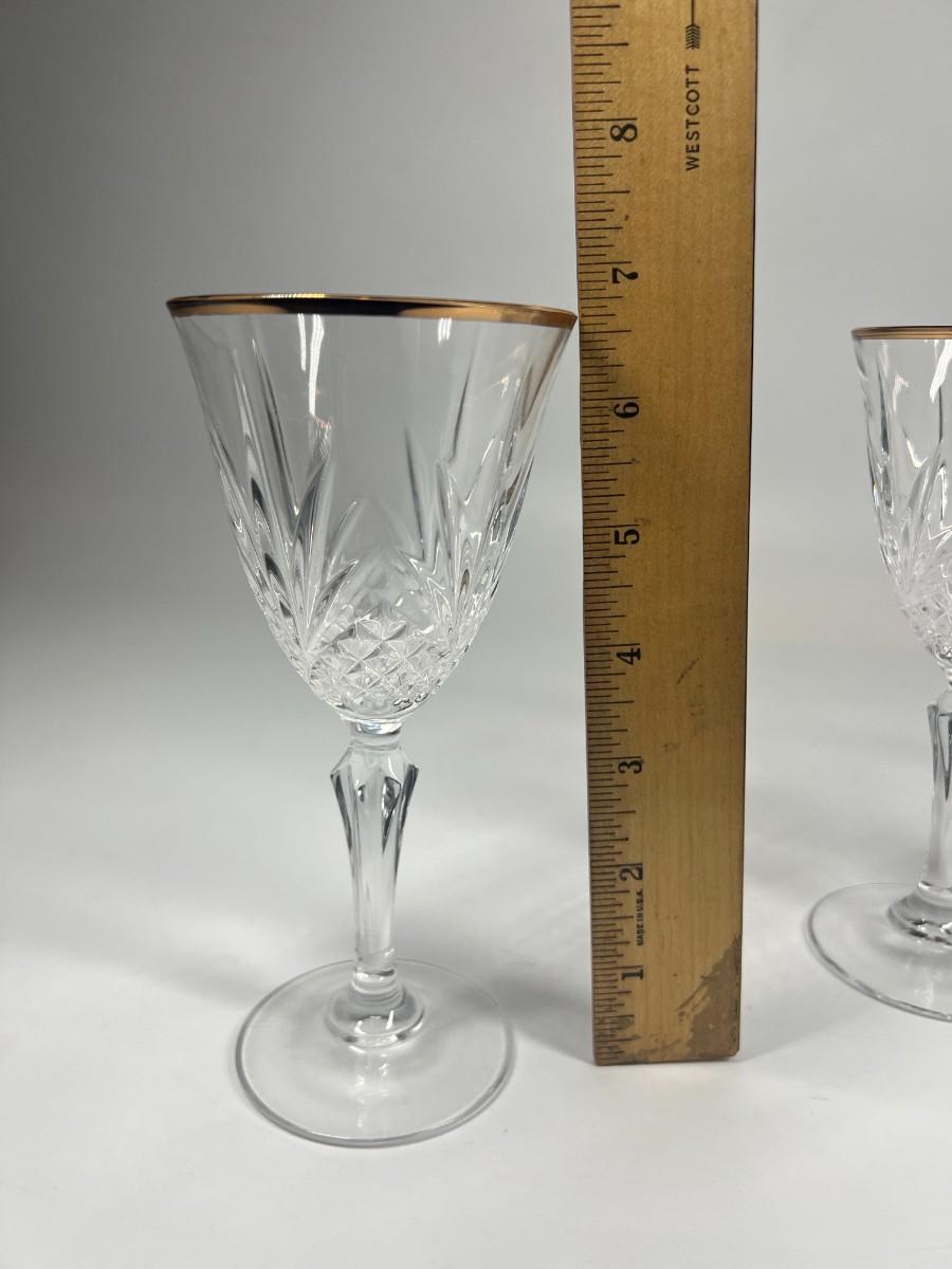Vintage Cristal de Flandre Saltzburg Crystal Glass Gold Rim Toasting Champagne Stemmed Drinking Glasses