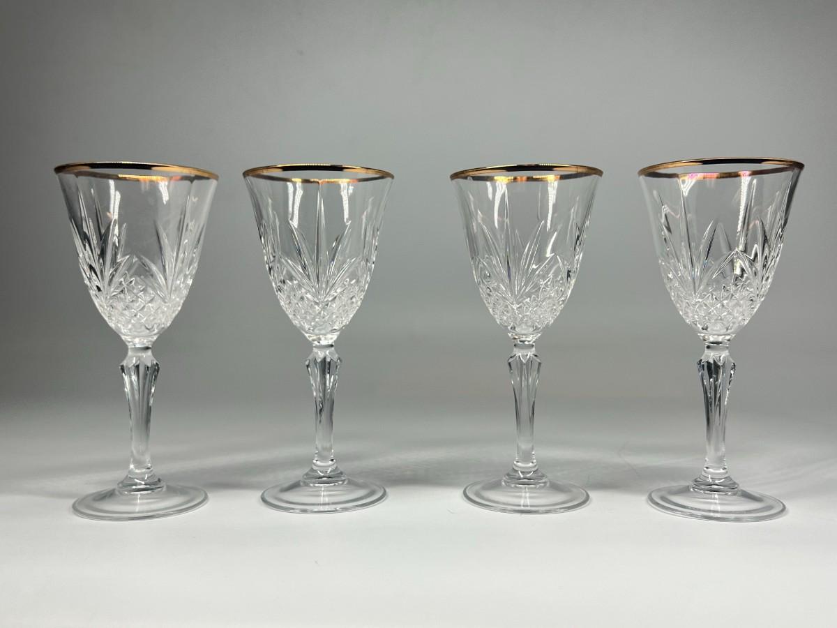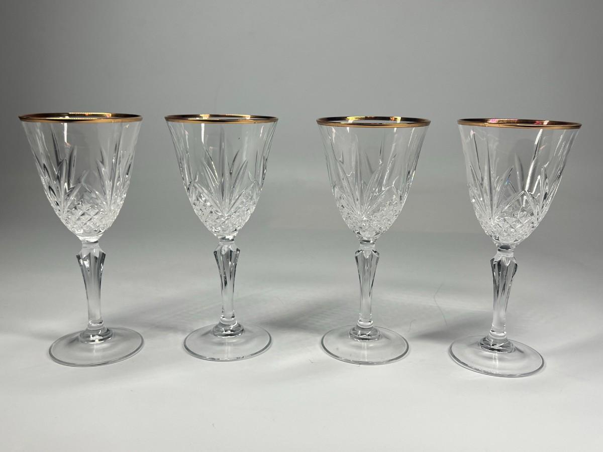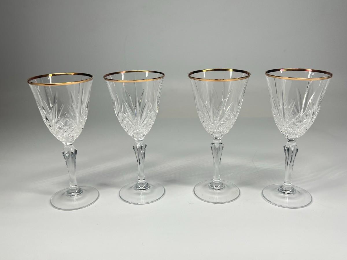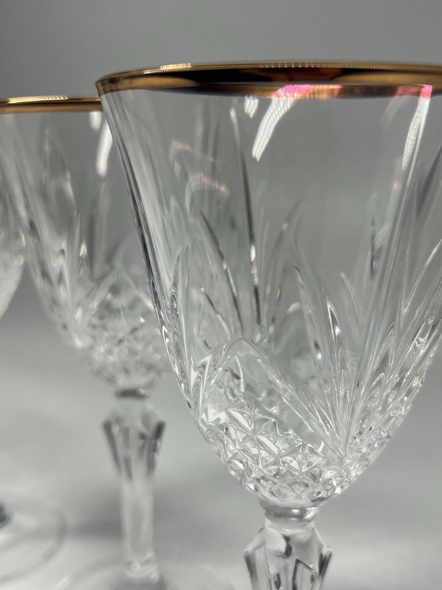 Vintage Cristal de Flandre Saltzburg Crystal Glass Gold Rim Toasting Champagne Stemmed Drinking Glasses