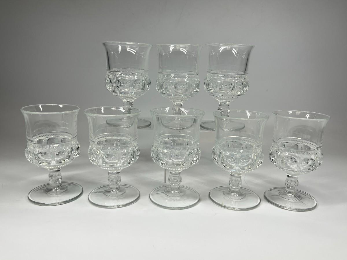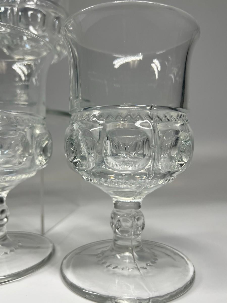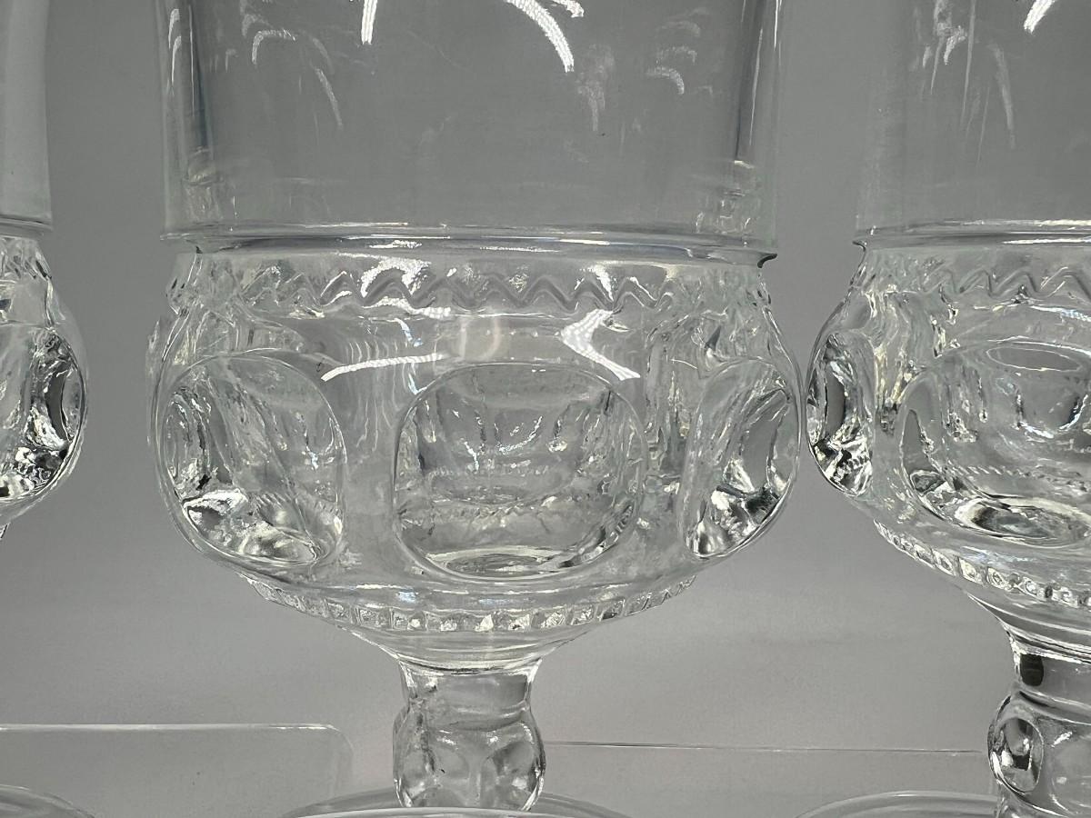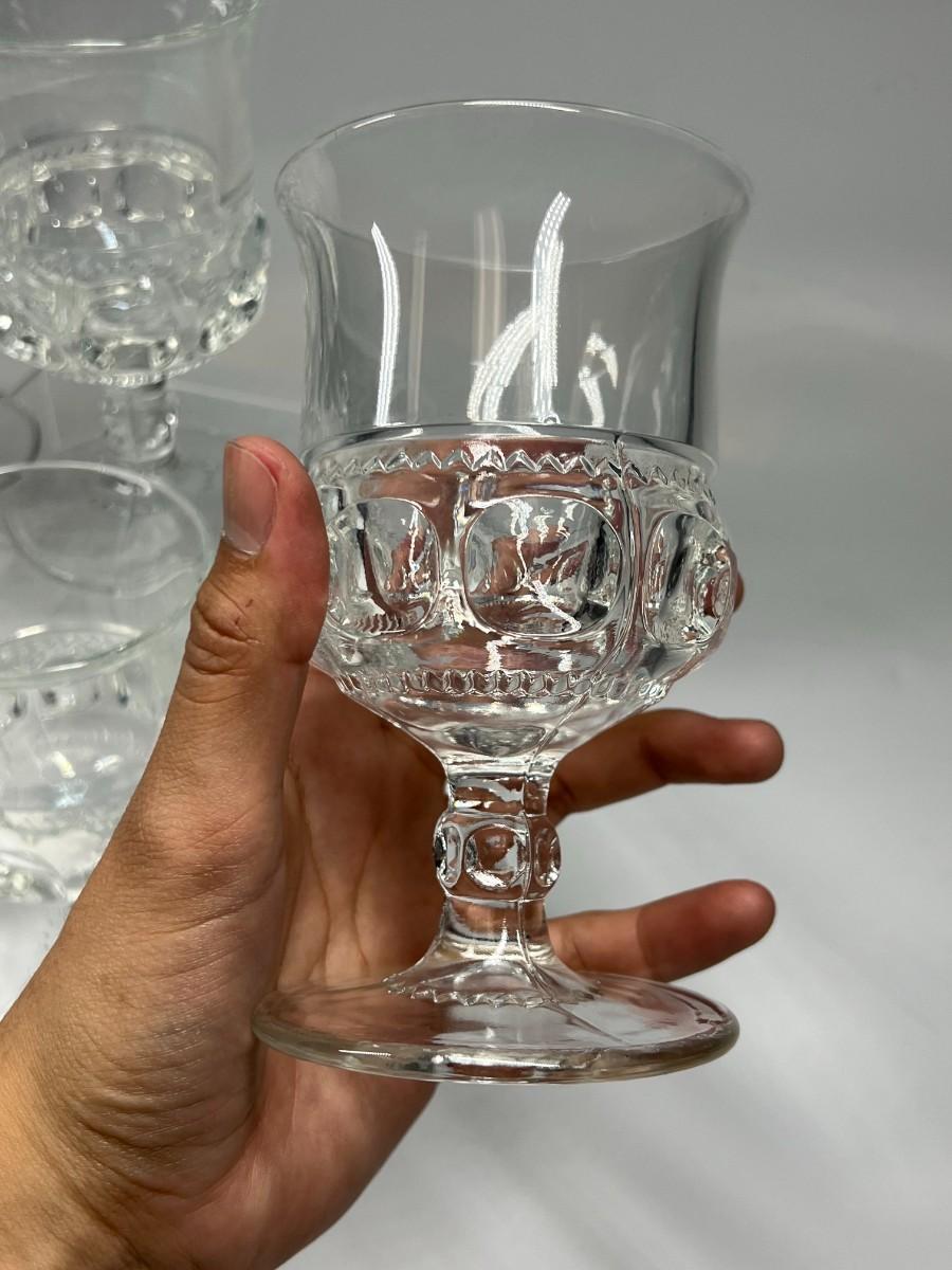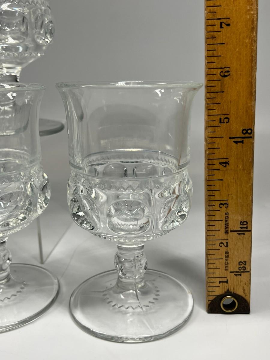 Vintage Clear Glass Kings Crown Thumbprint Wine Stemmed Drinking Goblets