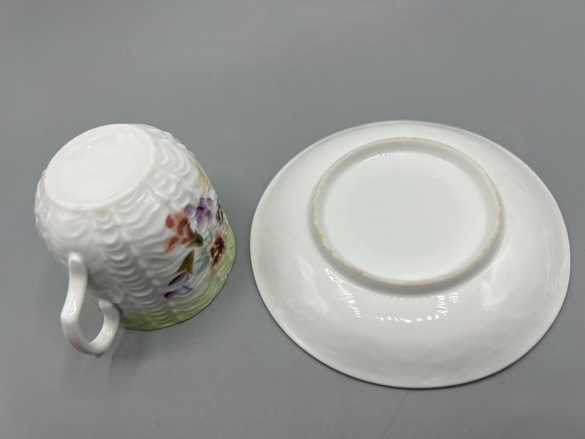 There are no makers mark on either the cup or saucer, there is also a small color scuff pictured above.