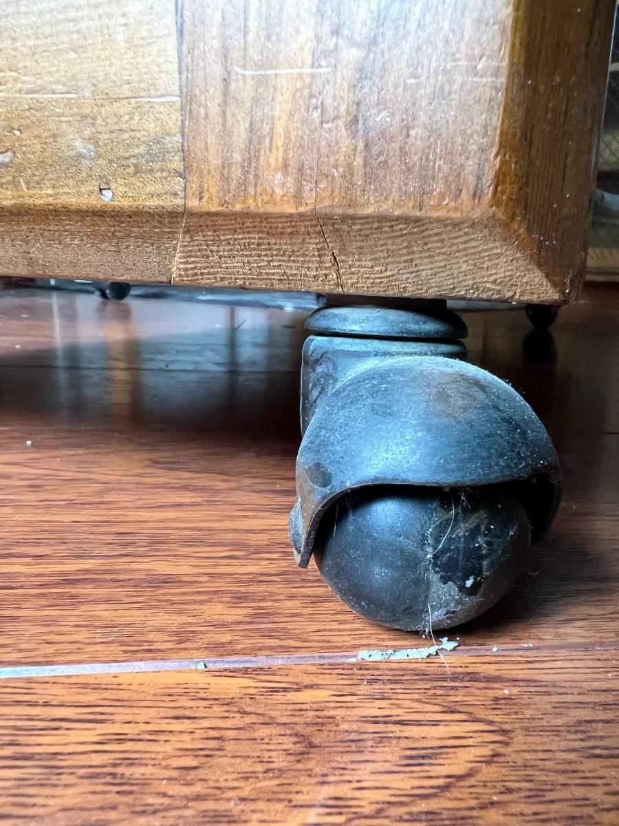 There are some light signs of use, needs to be cleaned a little, but overall in good useable condition. Wheels revolve and the whole trolley moves nicely.
