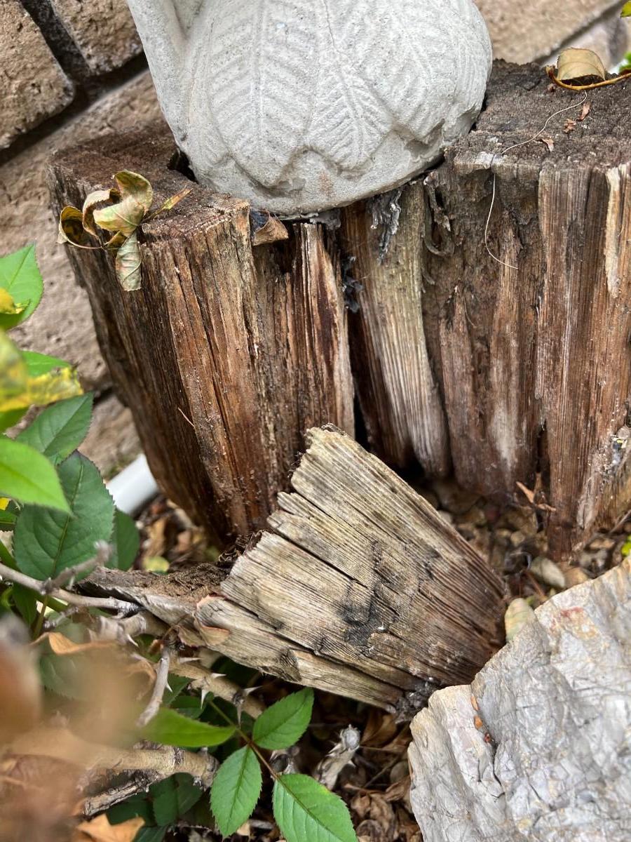 The figurine is on top of a wooden stump that is splitting and cracking. It looks like it can be removed and refitted to another base. Check pictures for more details and for sizing.