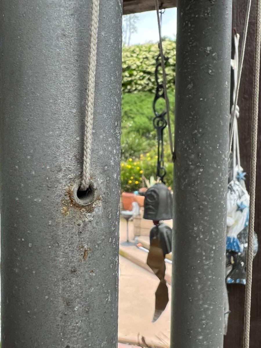 There are signs of use from being outdoors, but there is no significant damage and produces a nice sound.