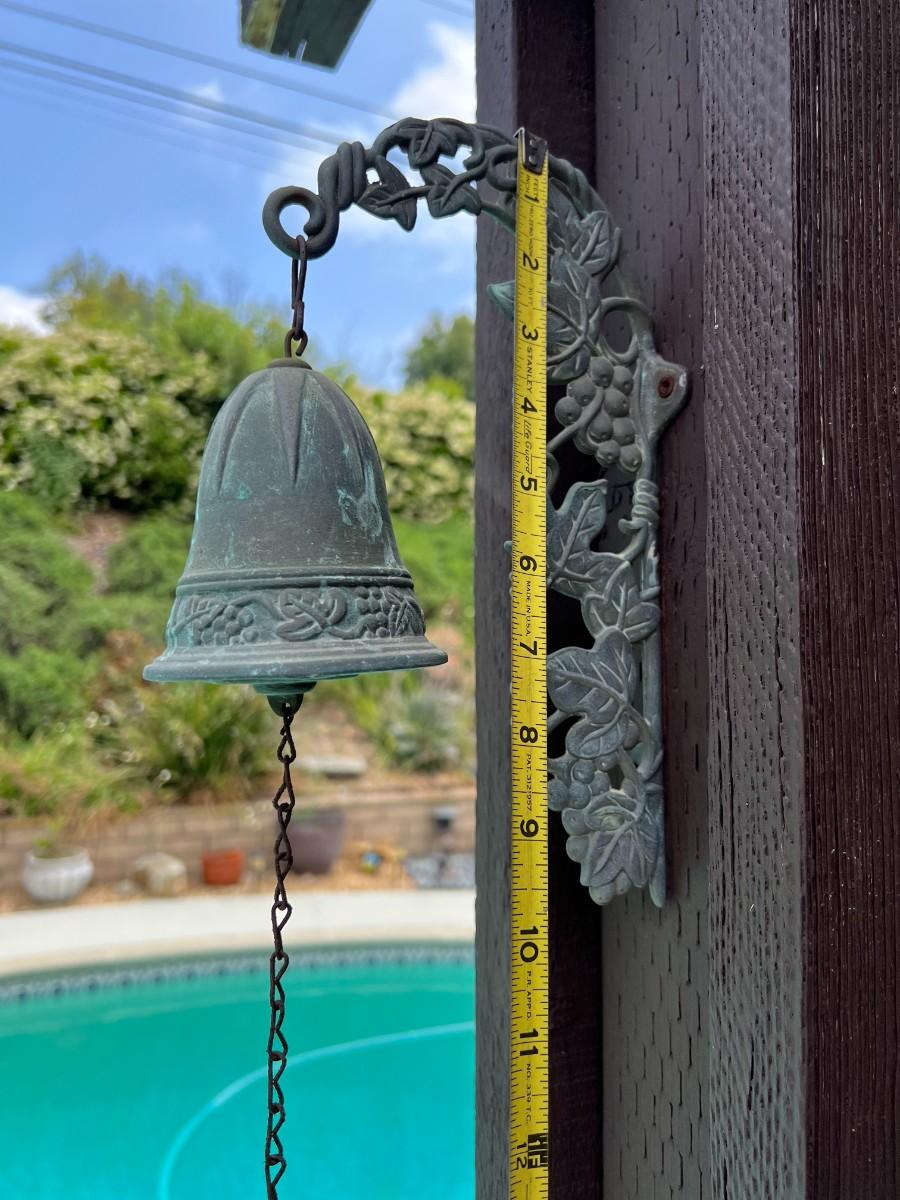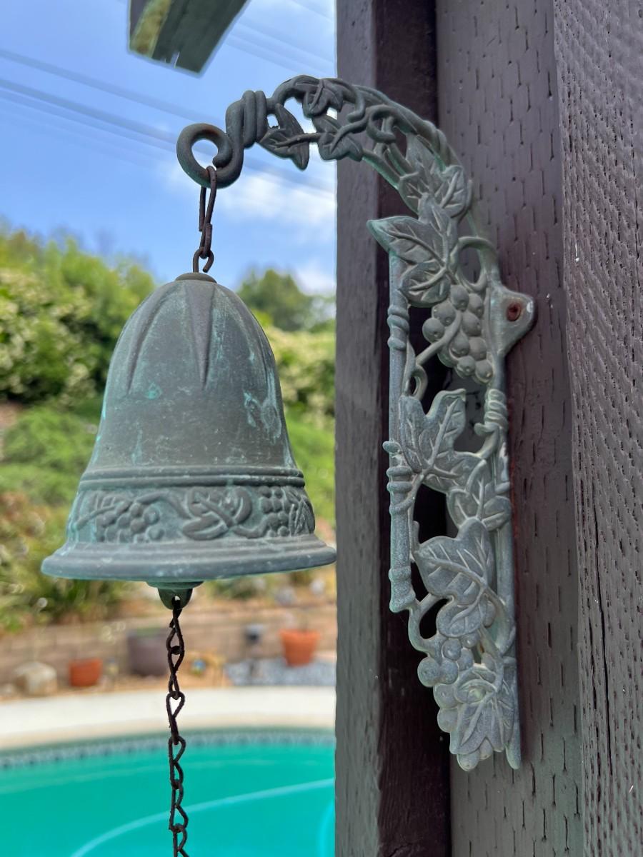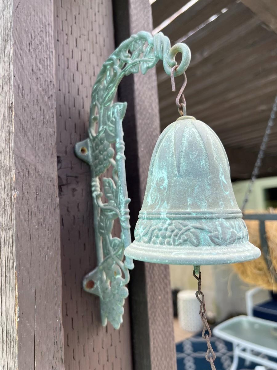 Weathered Patina'd Brass Wall Hanging Bell Grapevine Grapes Motif