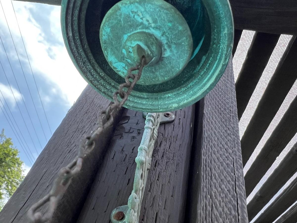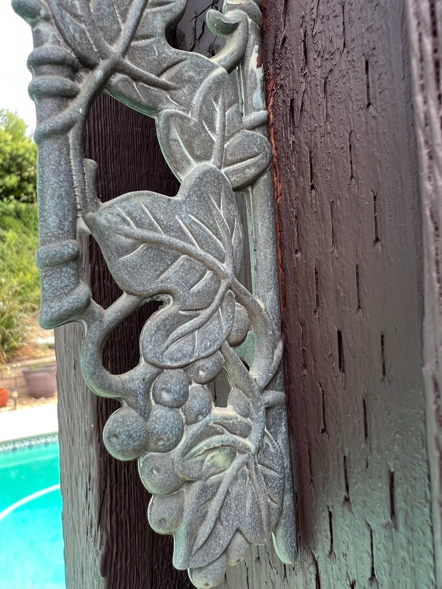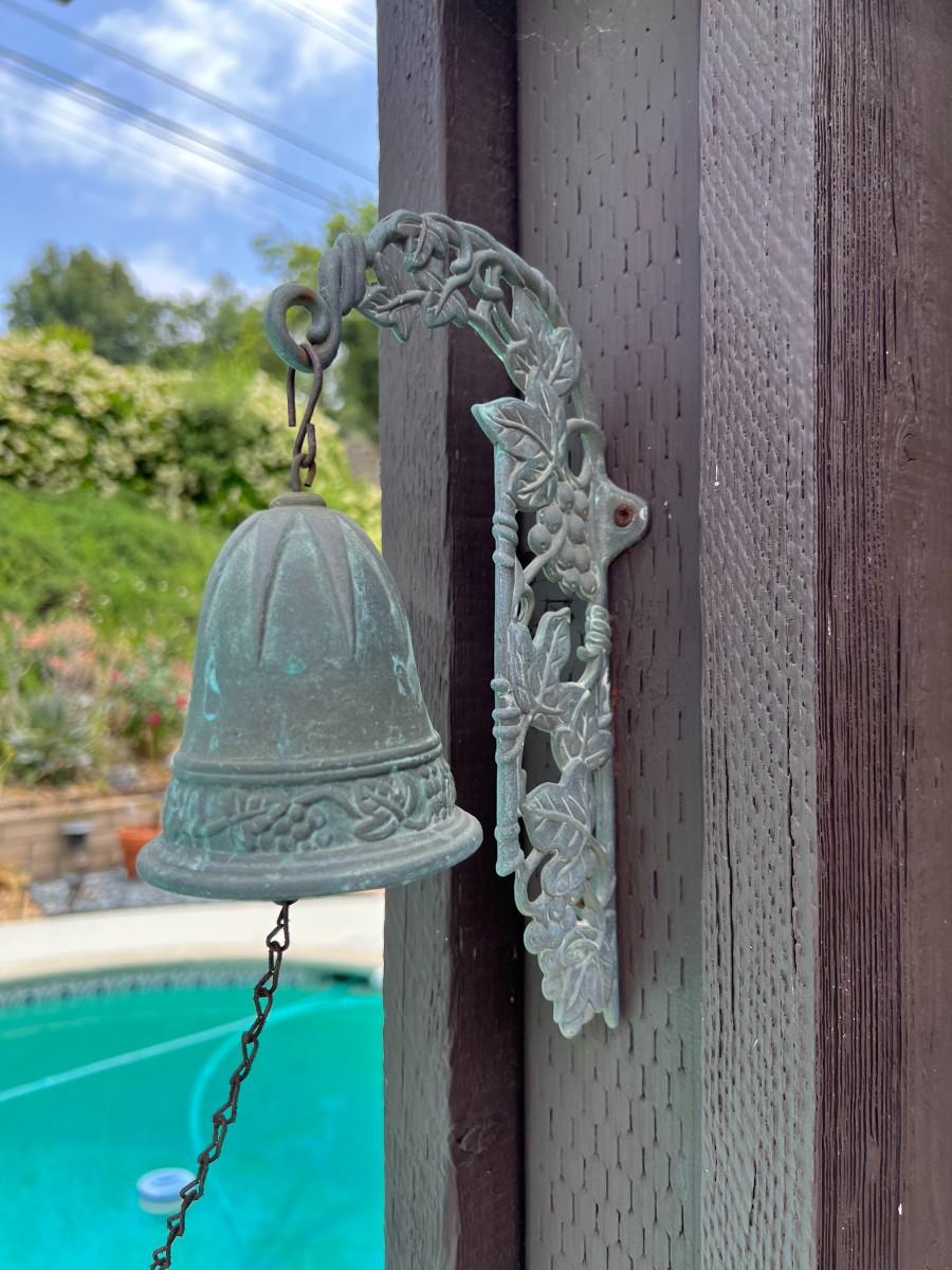 Weathered Patina'd Brass Wall Hanging Bell Grapevine Grapes Motif