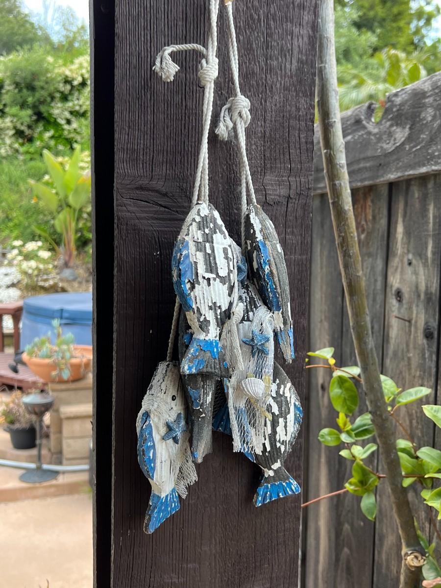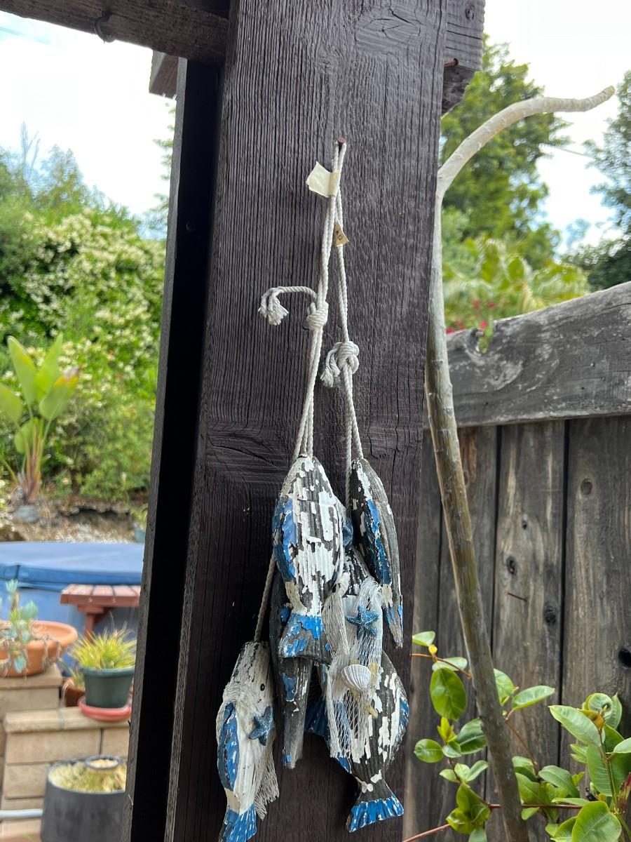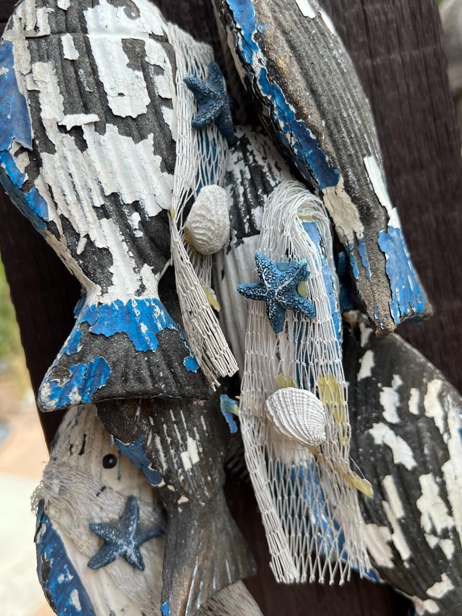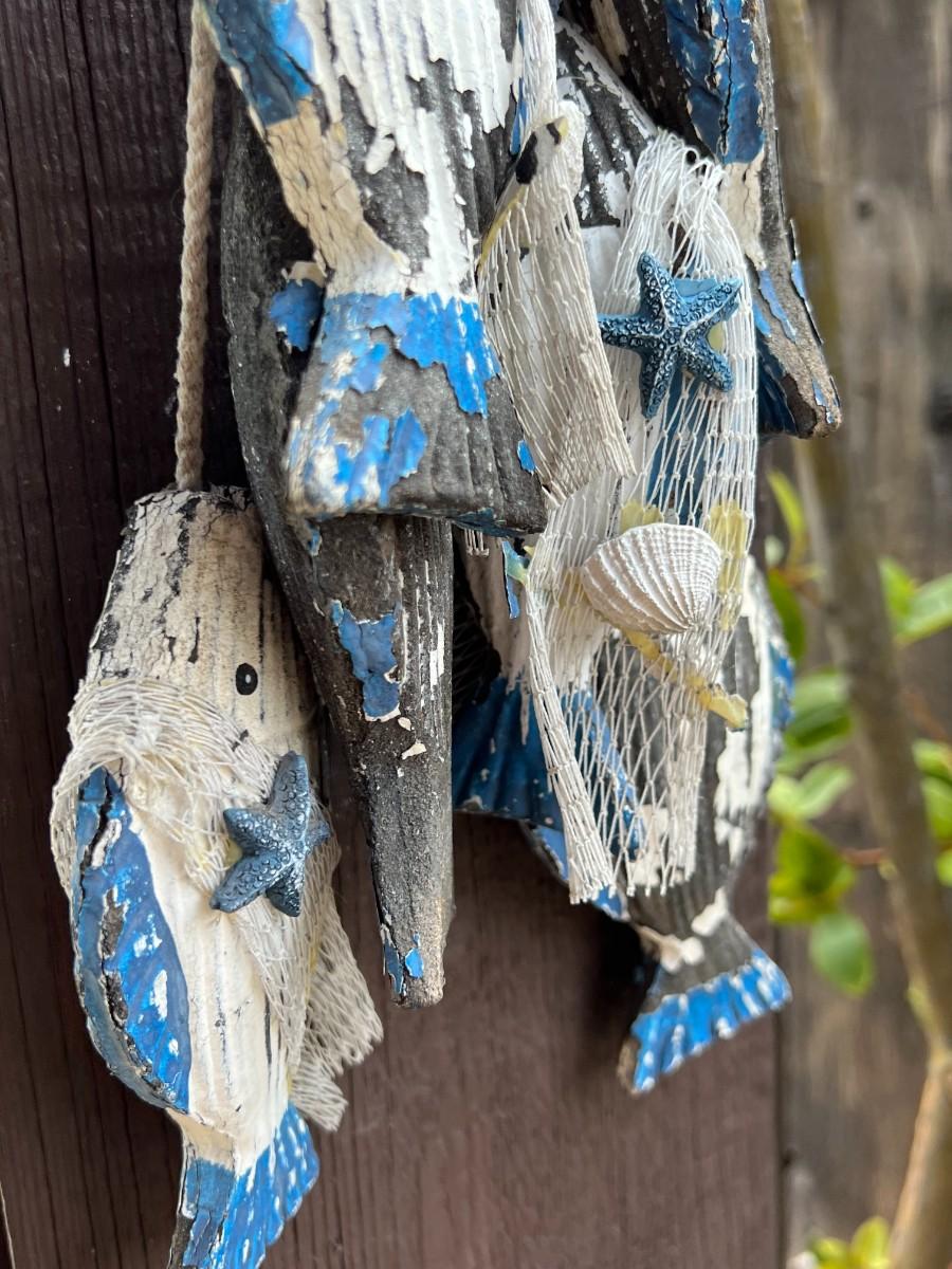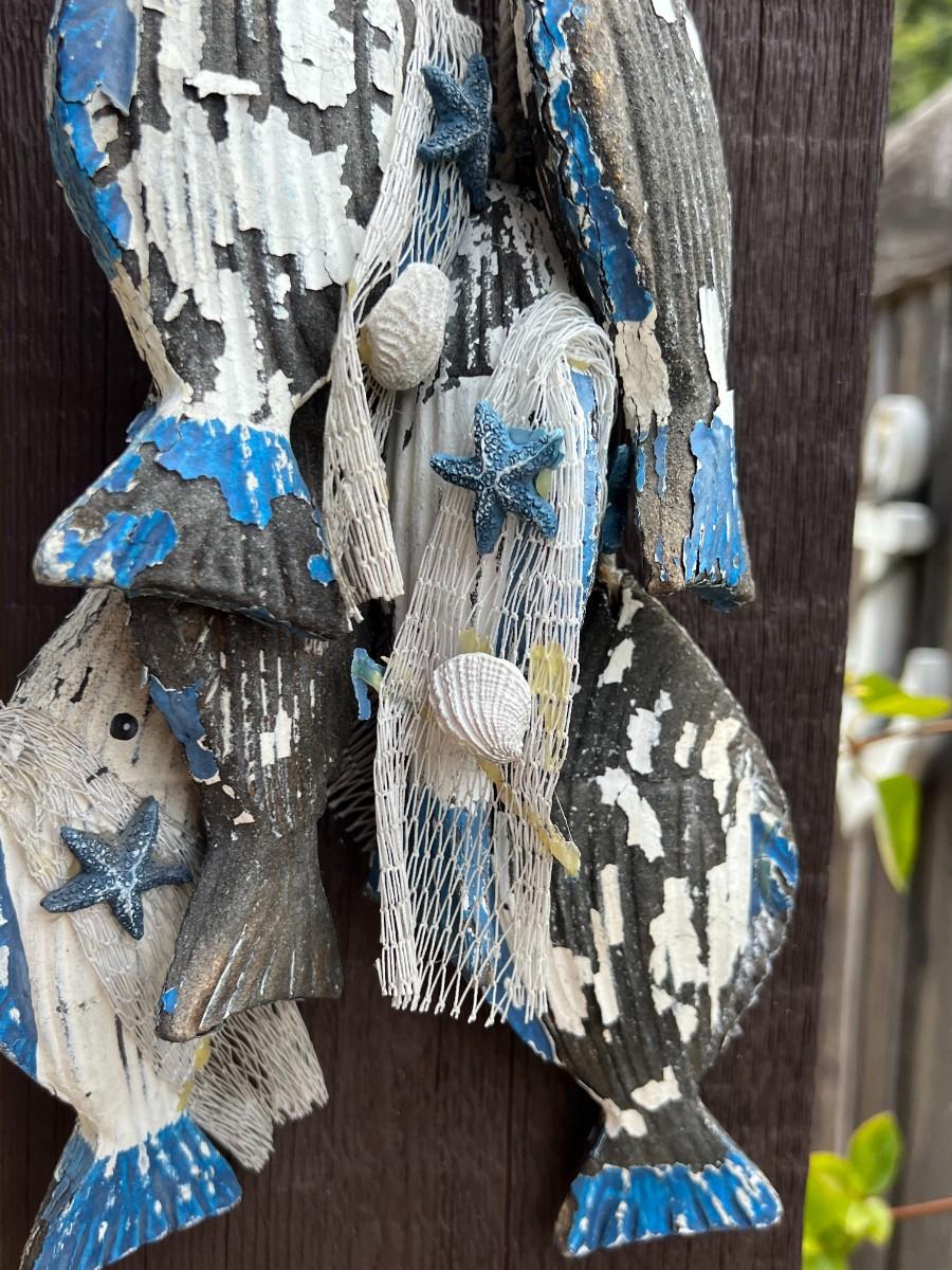 Vintage Blue & White Withered Hanging Nautical Catch of the Day Fish Decor