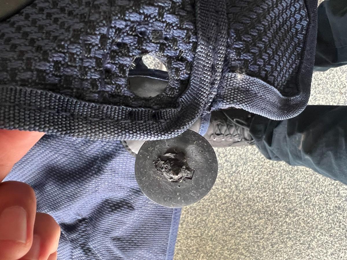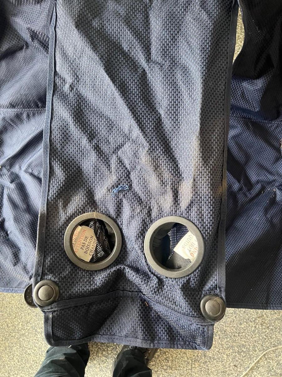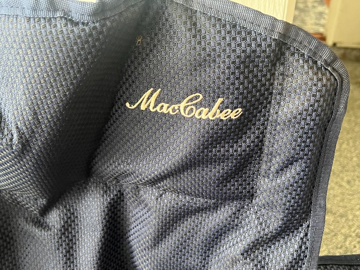MacCabee Two-Seater Collapsible Camp Beach Chair with Cup Holders and Small Table Between. In previously used condition.